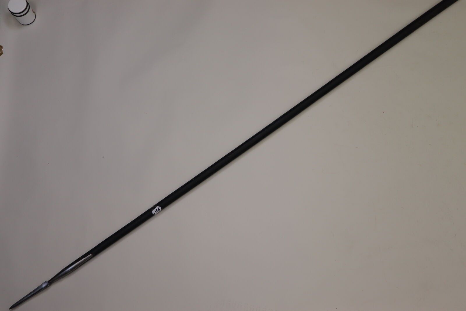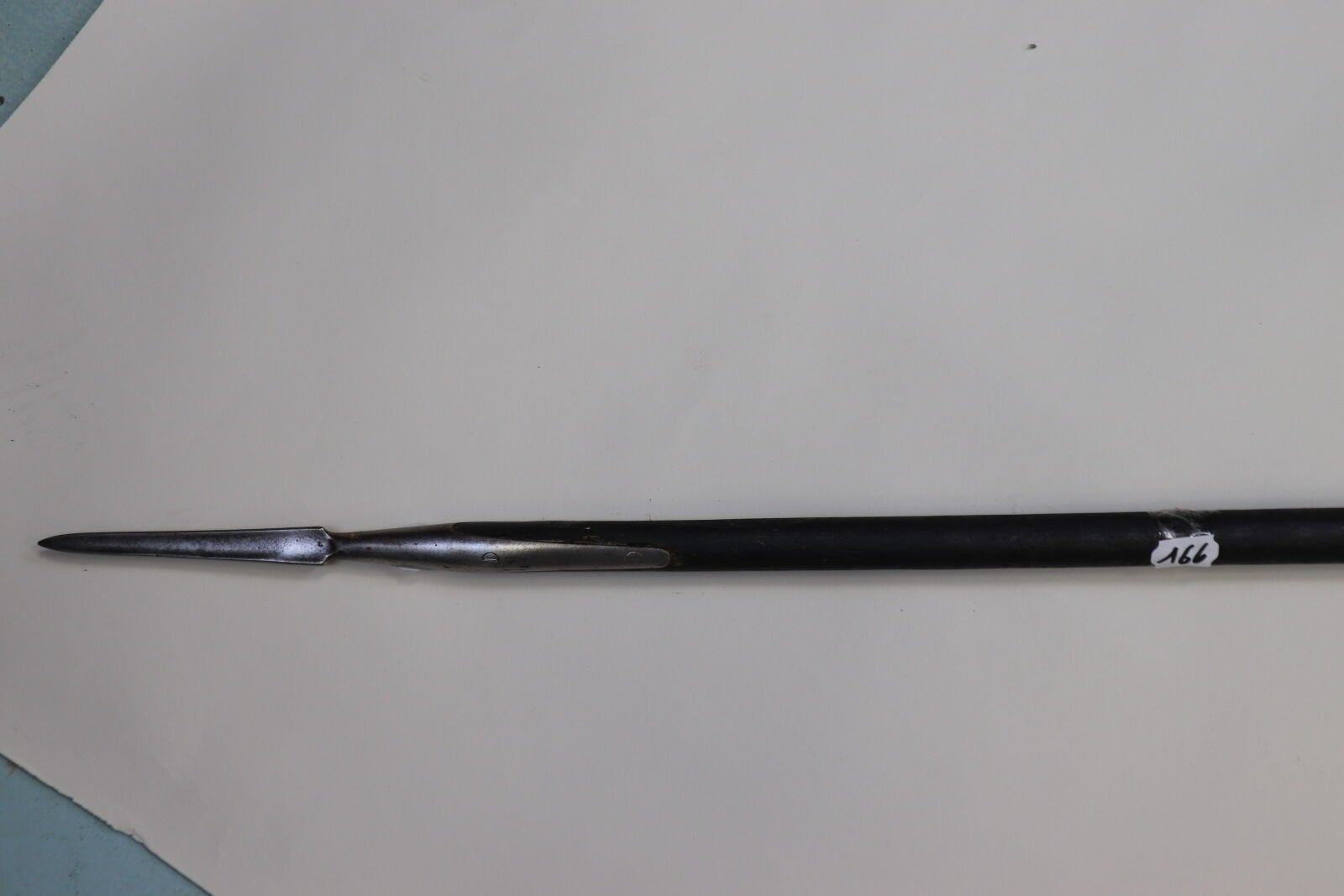 Cavalry lance, model 1816. Triangular iron with two asymmetrical braces, stamped with the anchor. Shortened shaft in blackened wood (oxidation).