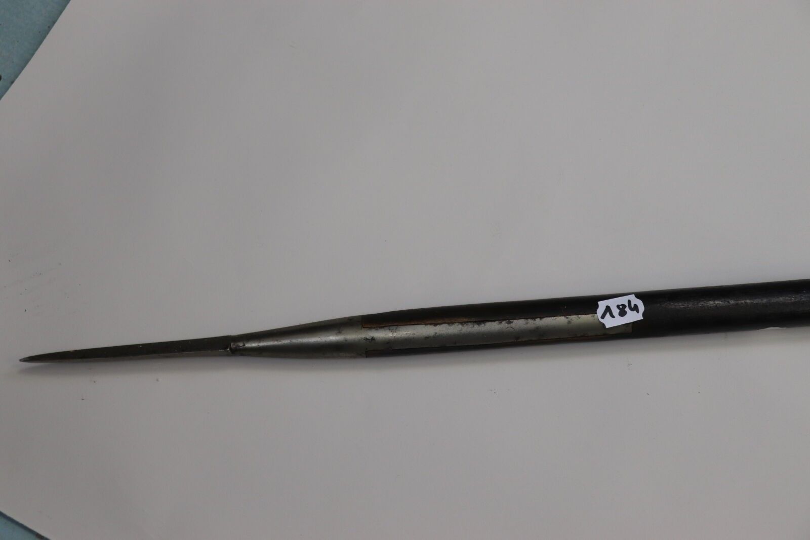Board pick, model 1833. Diamond-shaped shaft with two symmetrical braces, stamped with the anchor. Blackened wooden shaft.