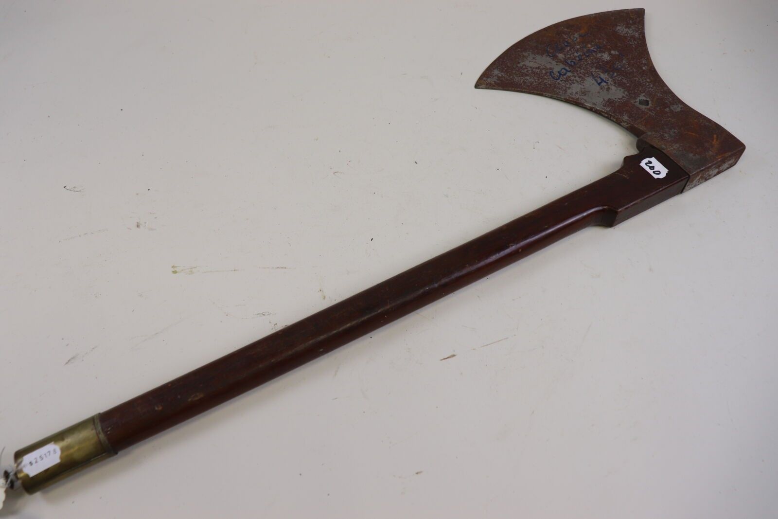 Sapper's axe. Crescent-shaped, wrought iron, hallmarked.