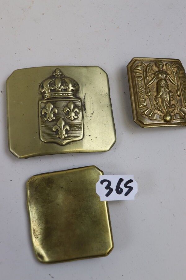 Set of 3 brass belt buckles: Royal Guard dragoons (wear, bar…