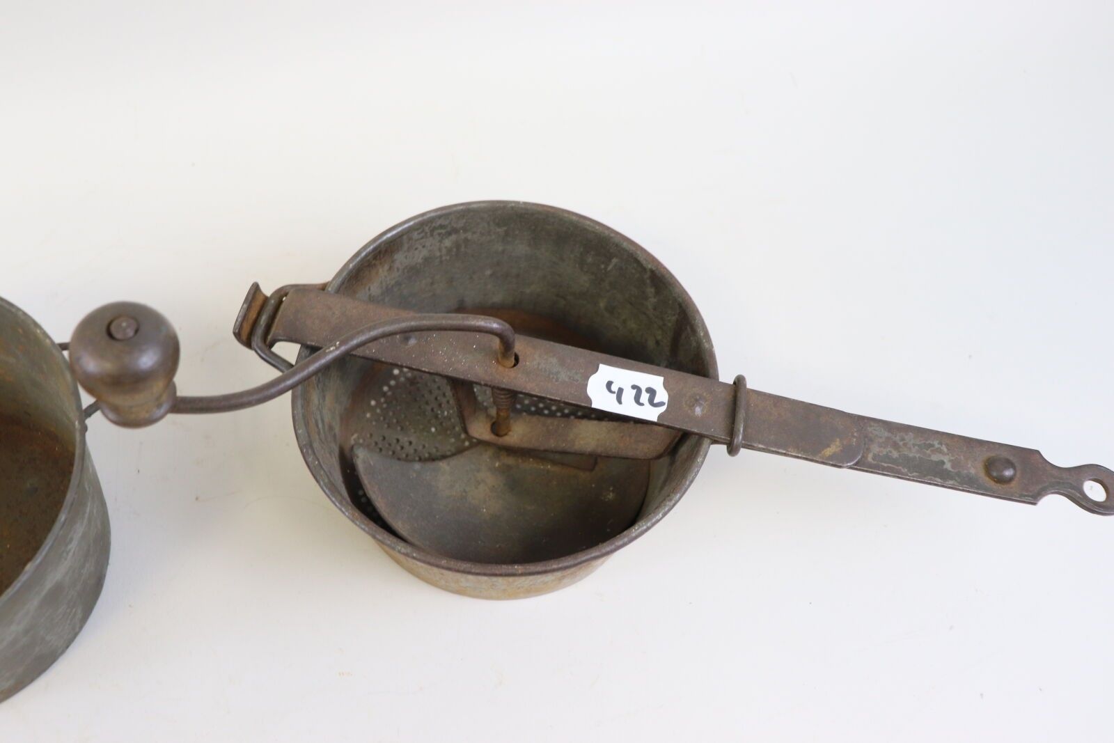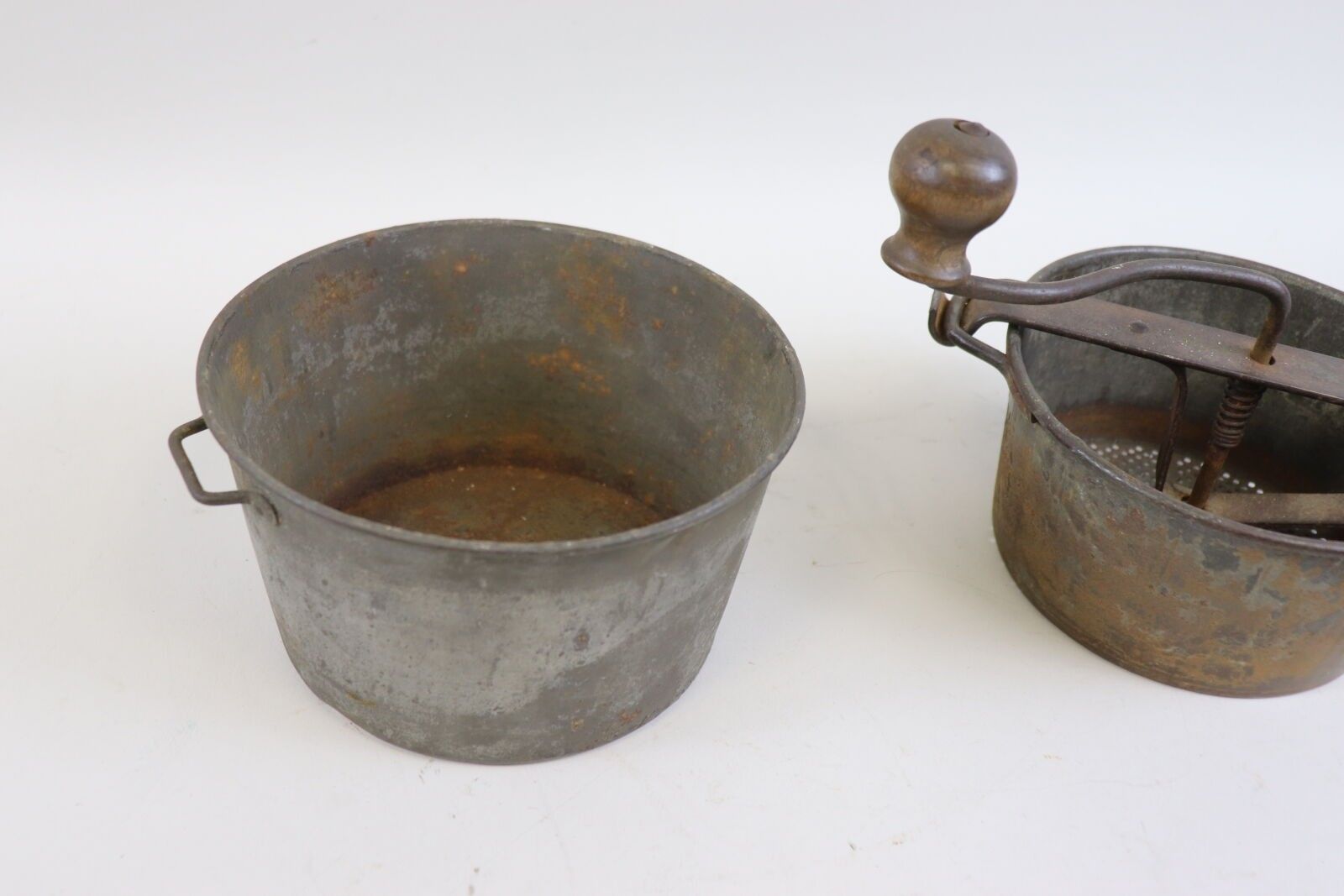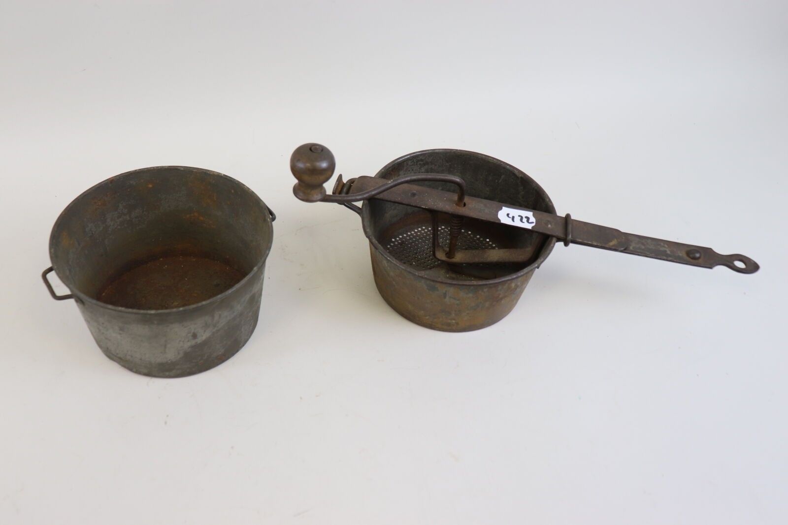 Country potato masher with tin-plated tin bowl. EM (oxidation)