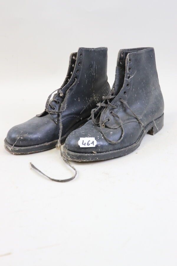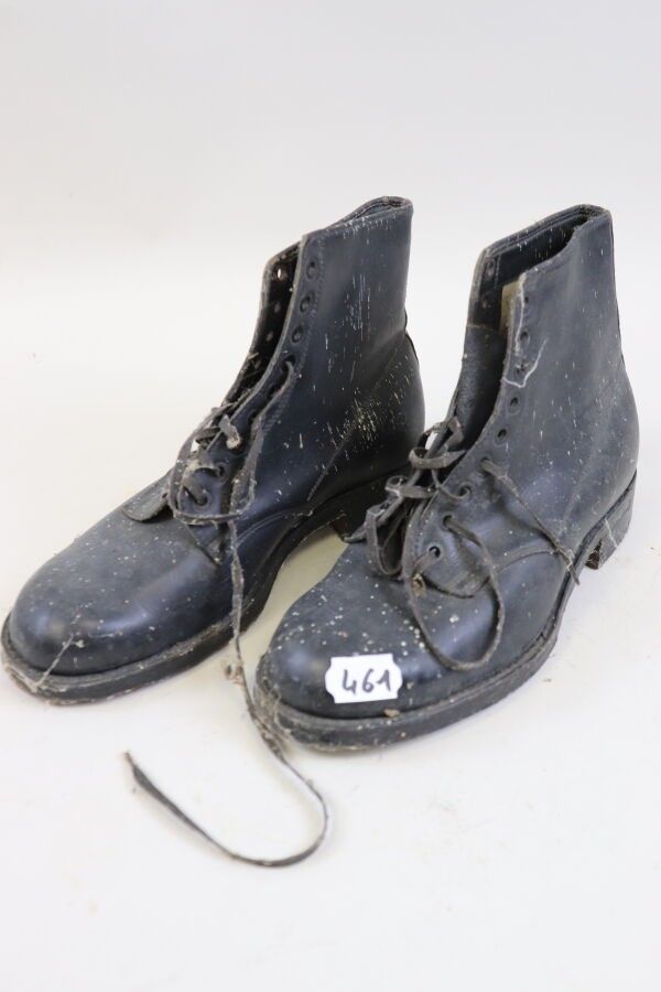 Pair of black leather brodequins with 9 pairs of eyelets, li…