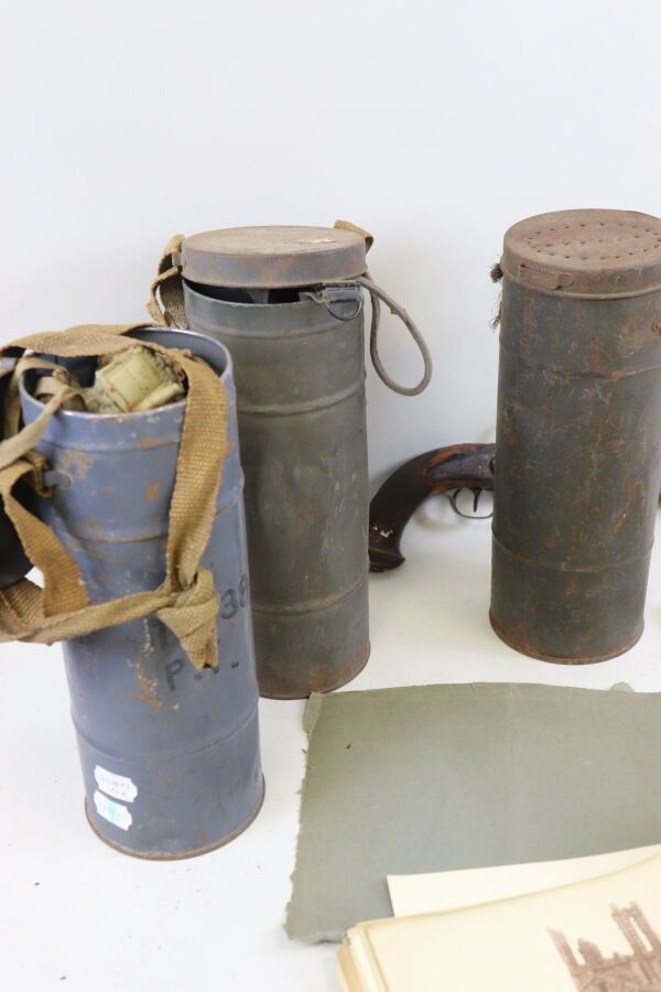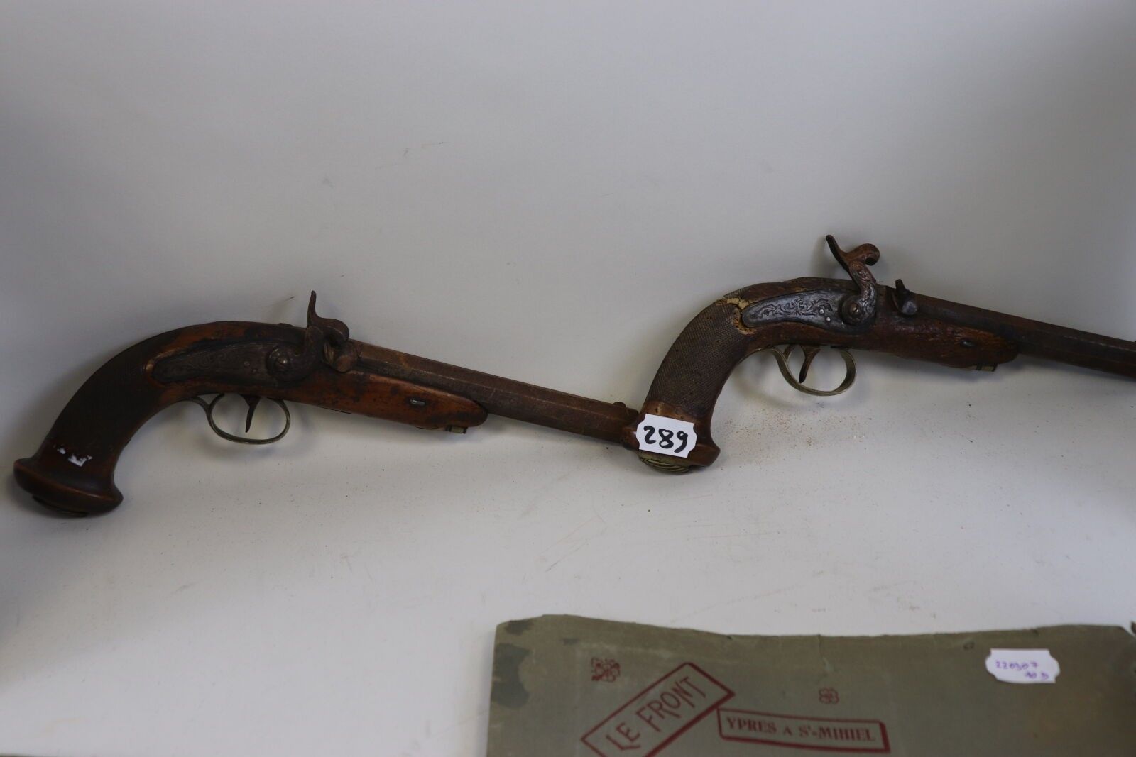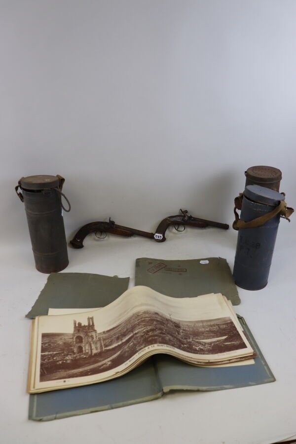 Pair of percussion pistols. In the state (accidents, missing) 3 gas masks and prints of photos of the front are attached.