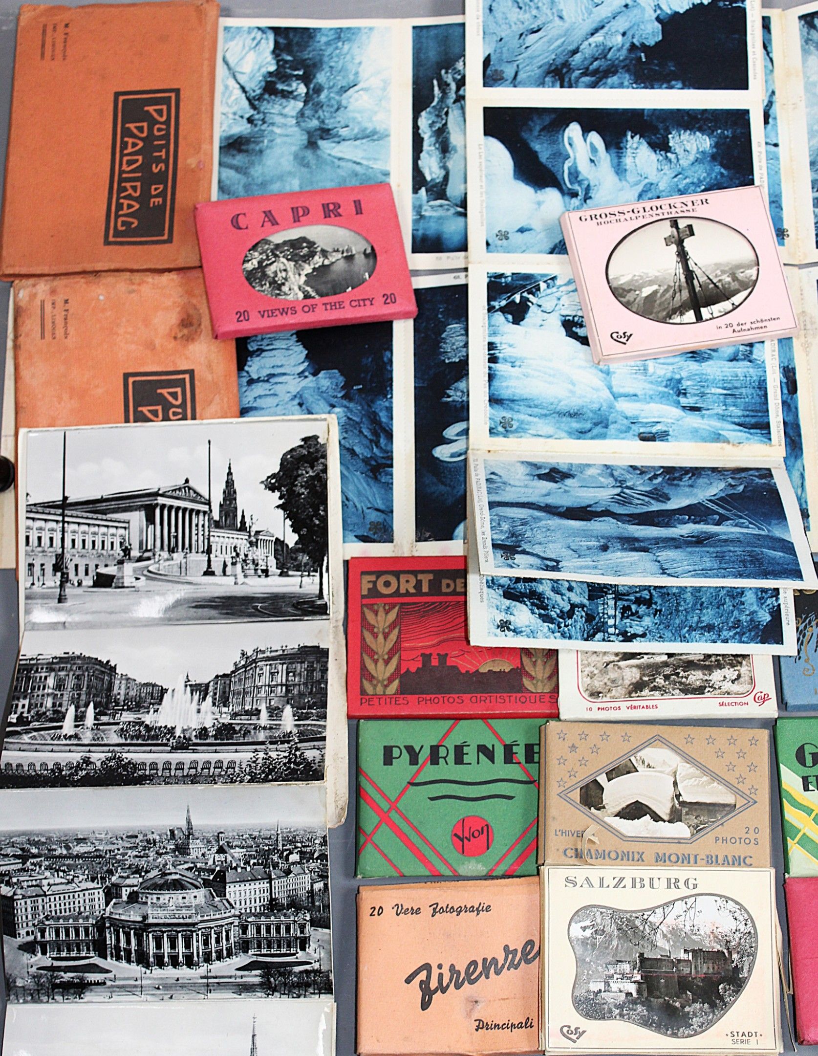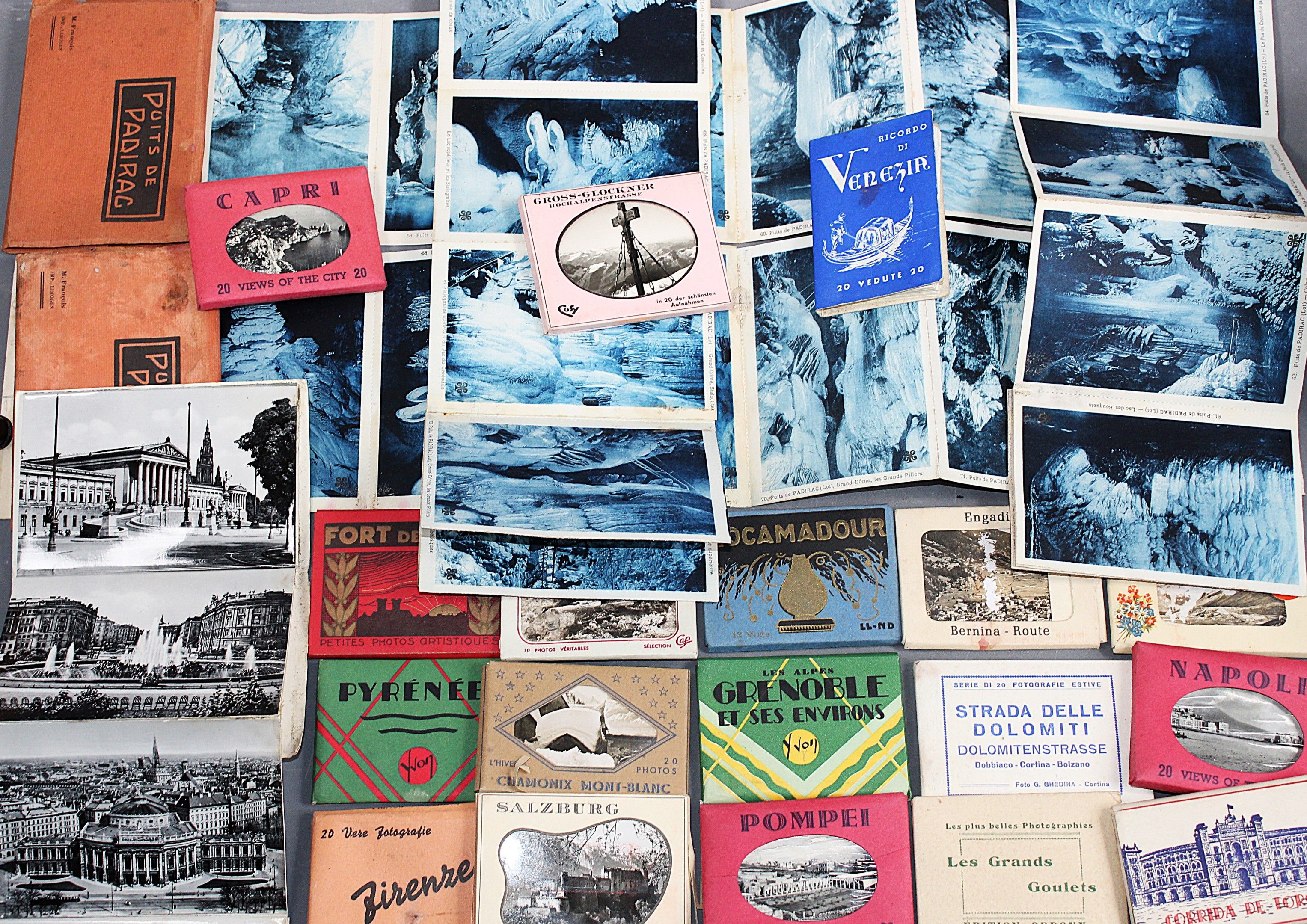 Set of DRAWERS OF TOURIST LOCATIONS including PYRENEES, CORRIDA DE LOROS, VENICE, GRENOBLE, ROCAMADOUR, CAPRI, POMPEI, NAPOLI, LES GRANDS GOULETS, CHAMONIX, FORT DE VAUX, BELLE-ILE-EN-MER, ROUTE JULIER, GROSS-GLOCKNER, FIRENZE, SALZBURG...