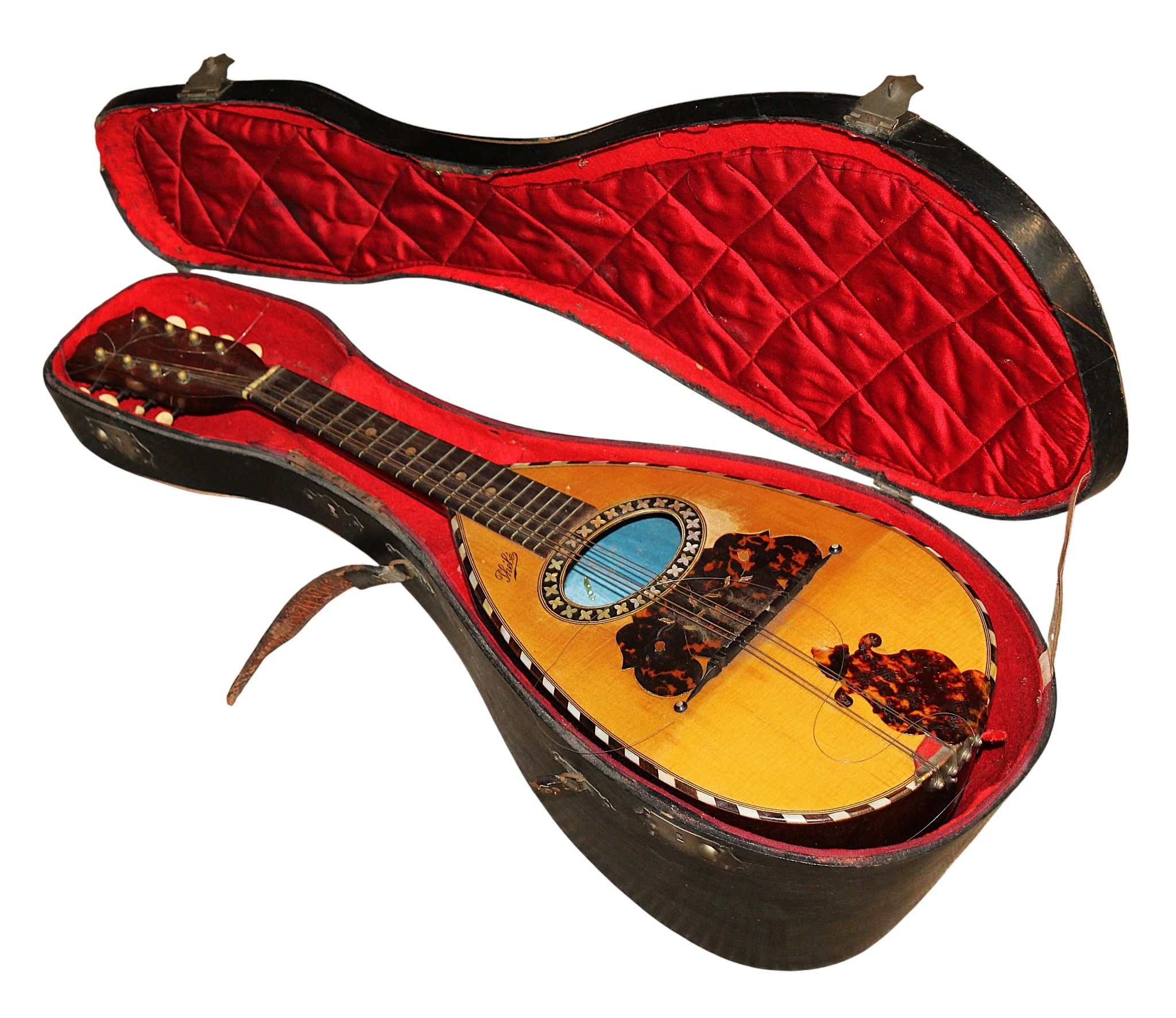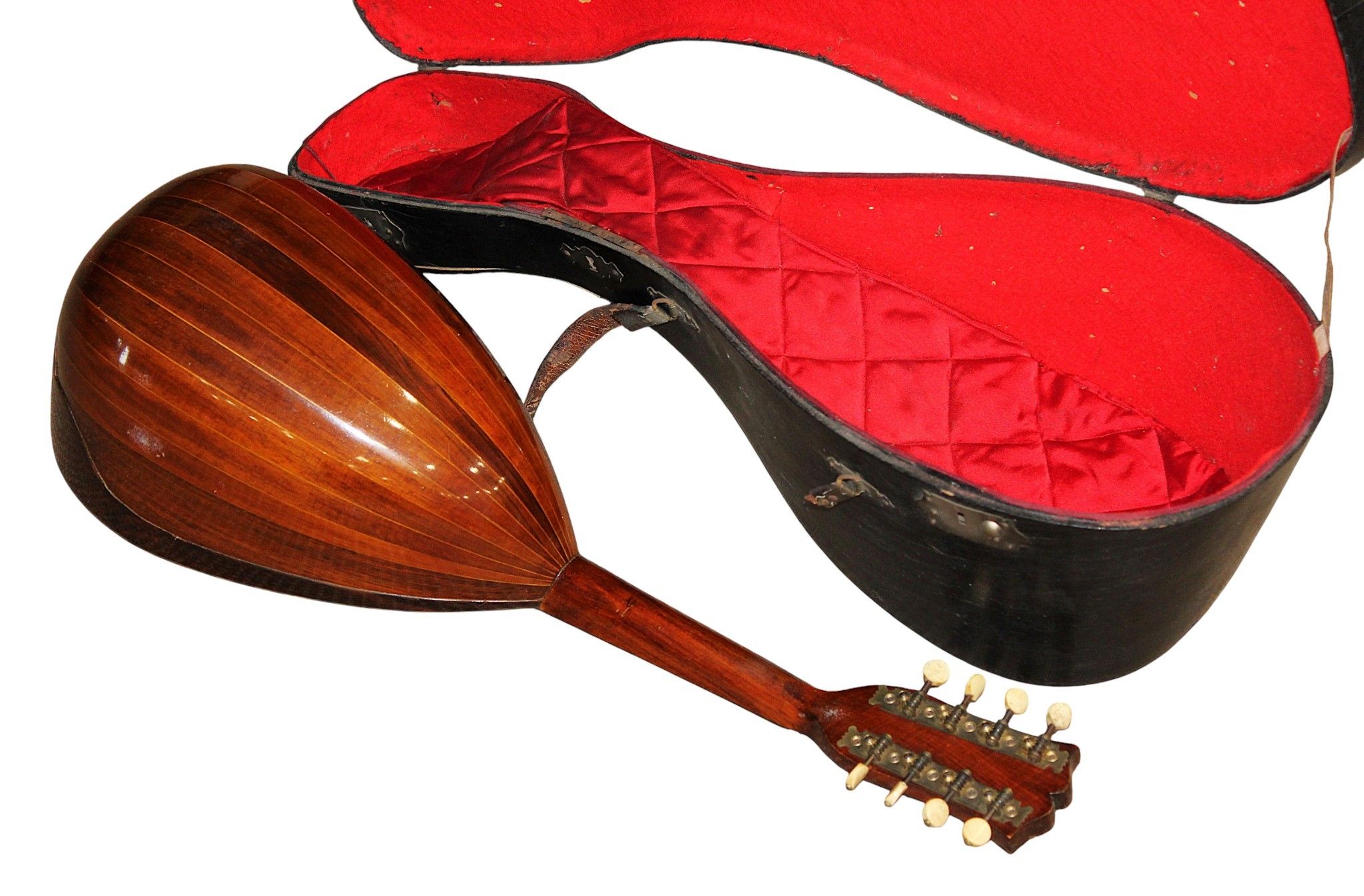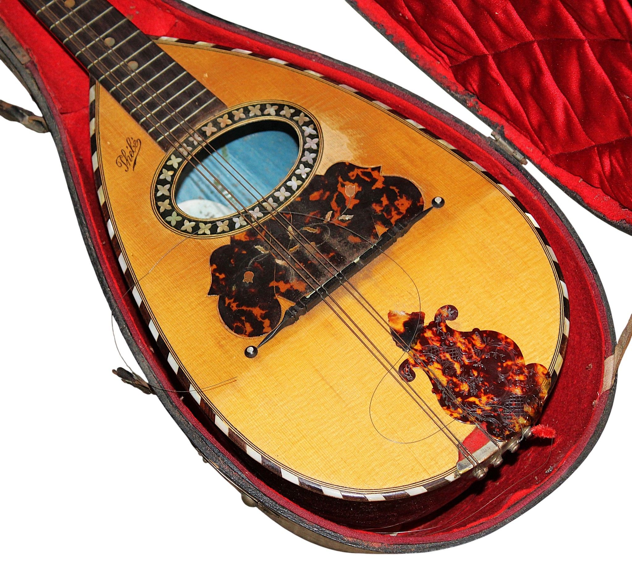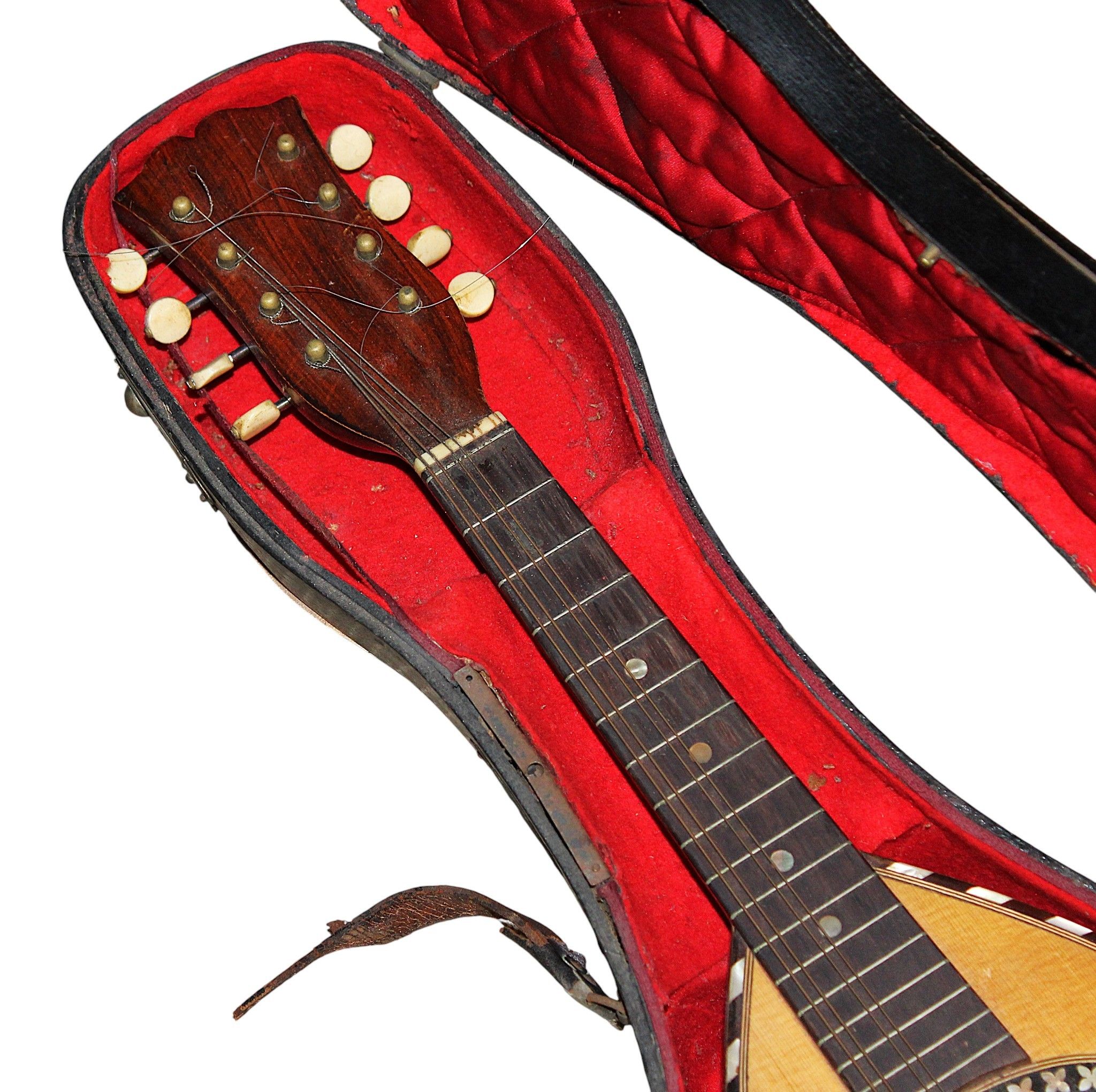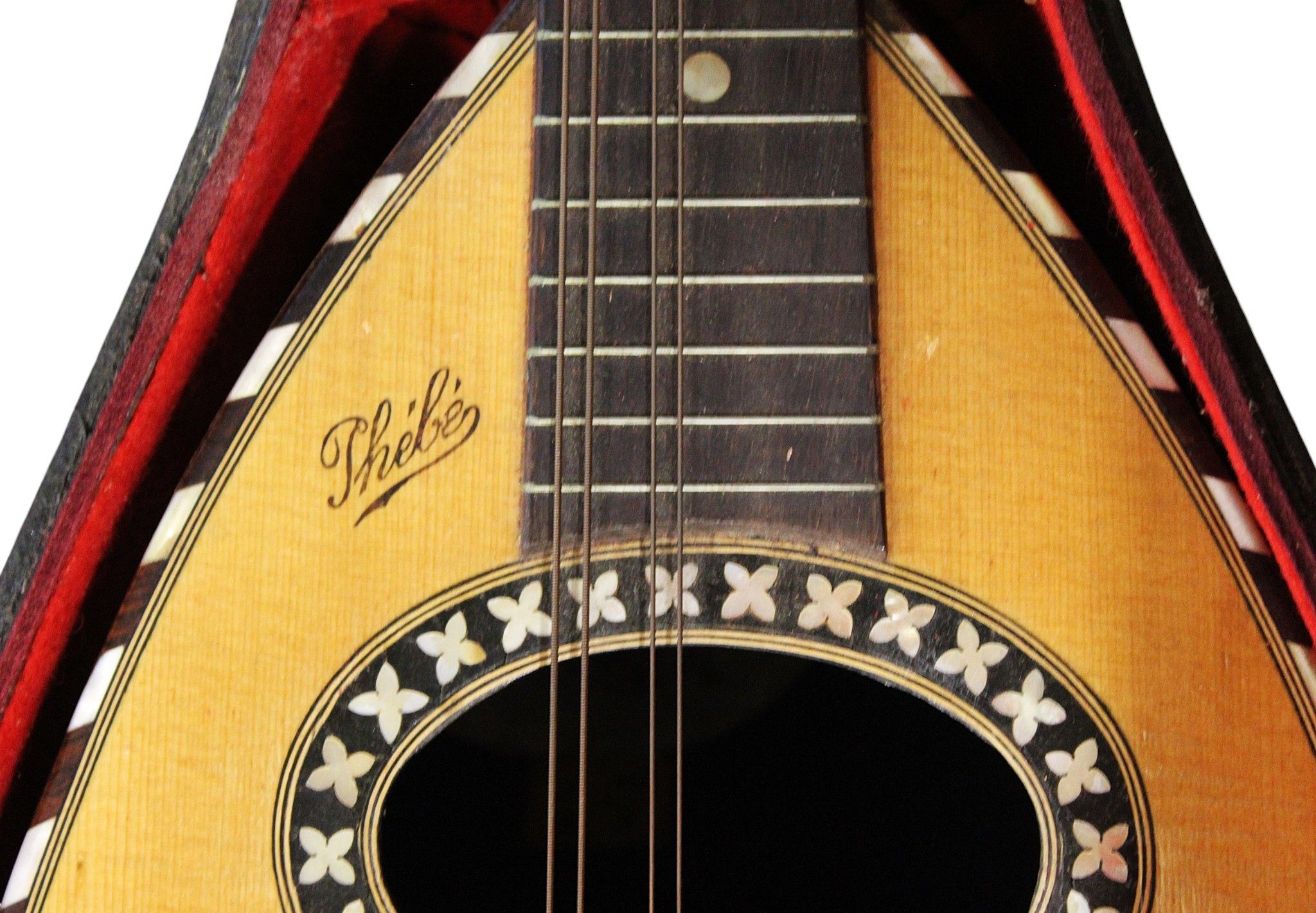 PHEBE - MANDOLIN with mother-of-pearl decoration, length : 60 cm. With wooden carrying case.