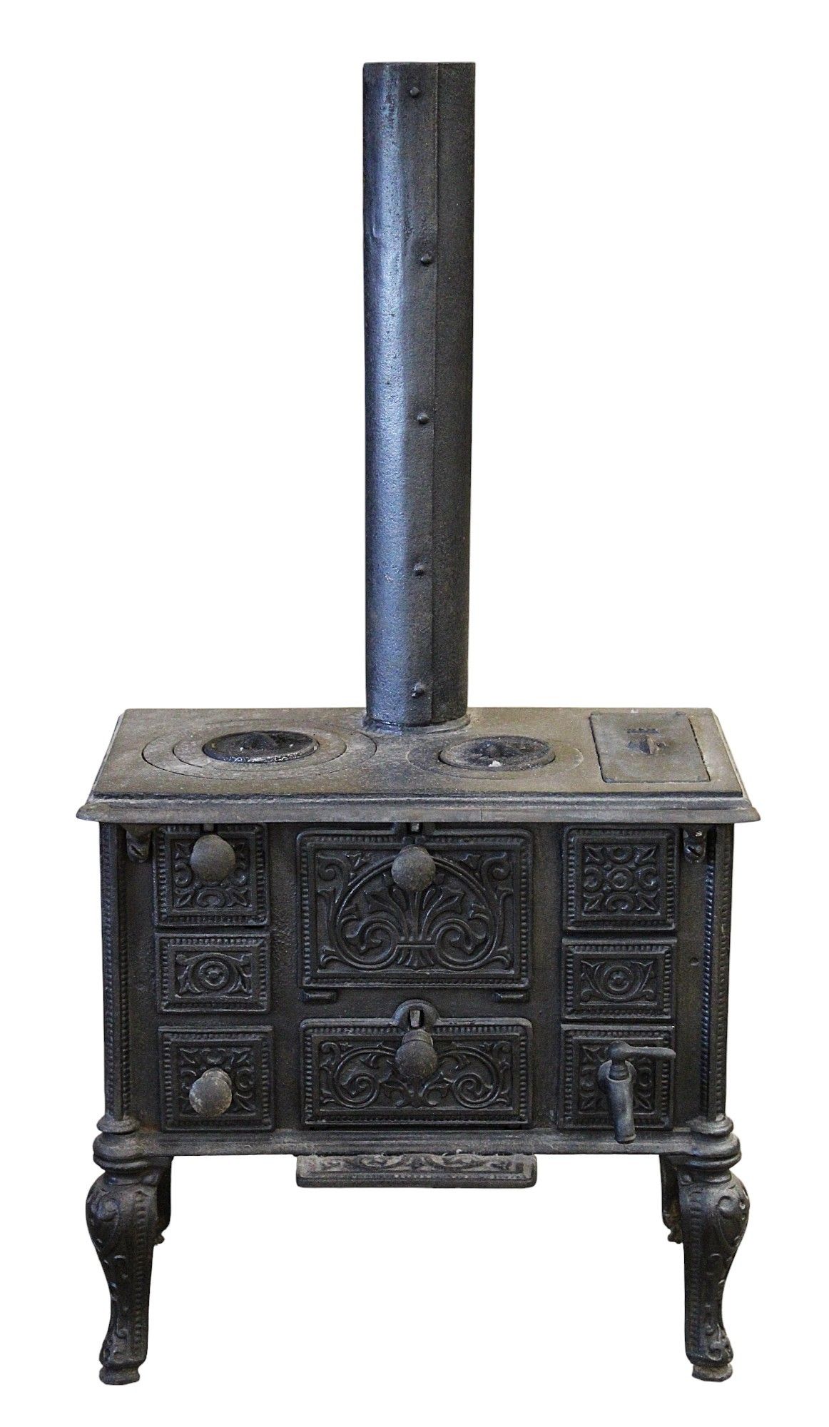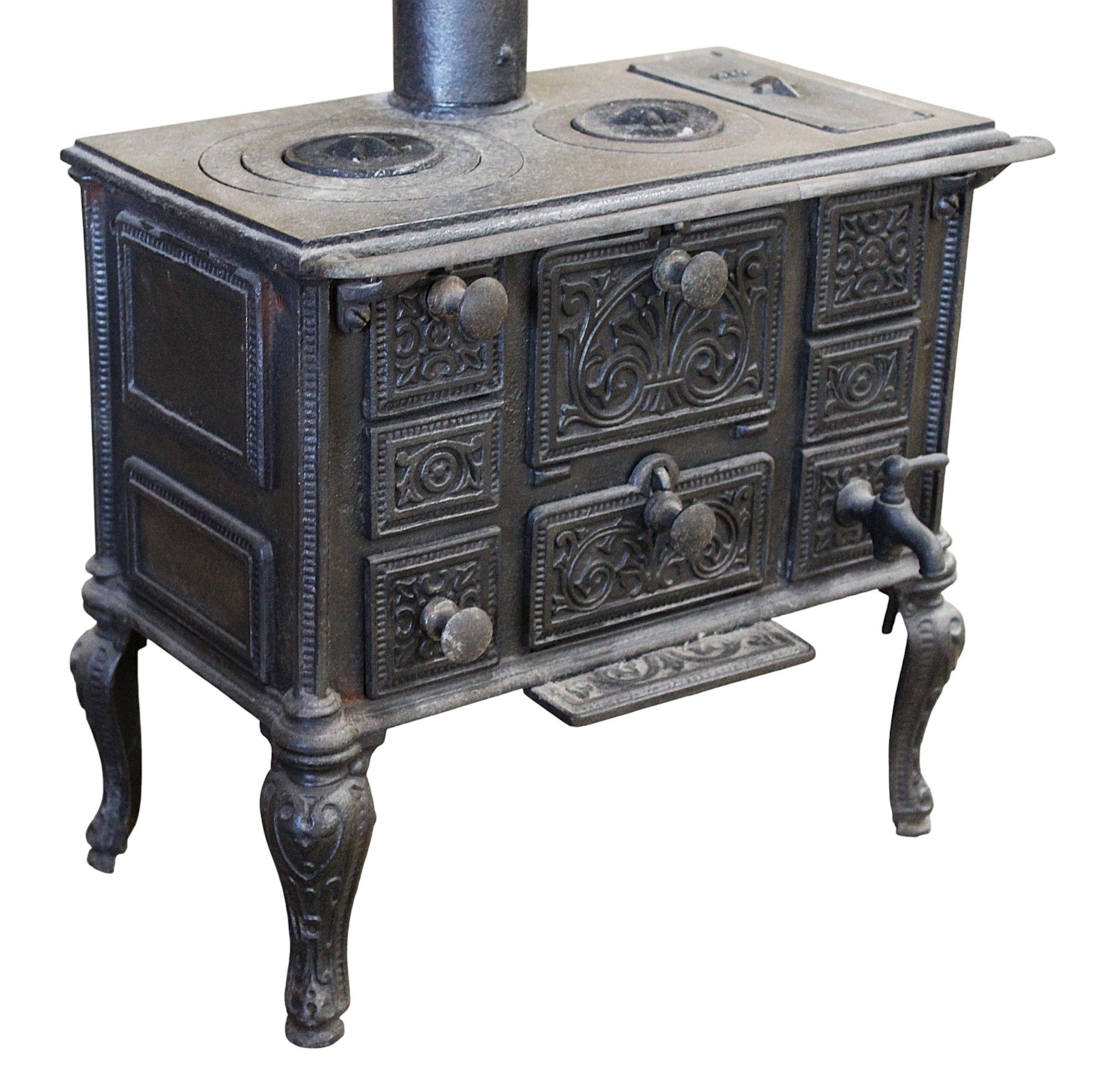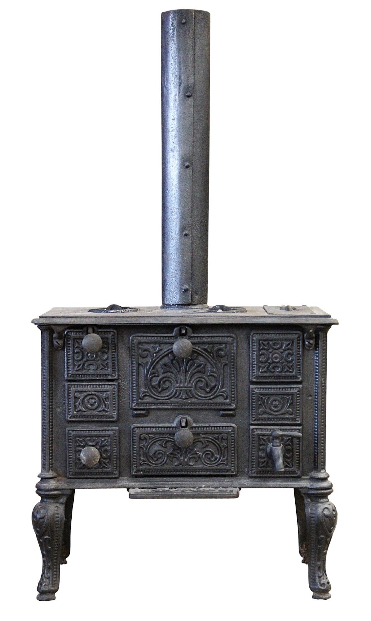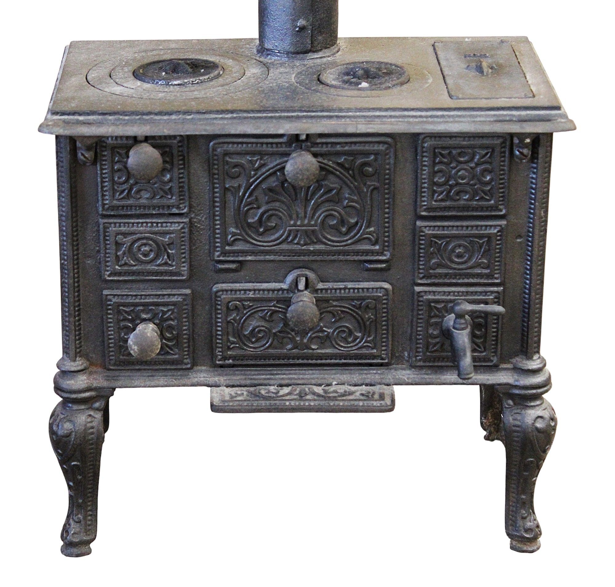 DOLL STOVE, cast iron, removable flue, 30 x 33 x 20 cm without flue, height with flue: 67 cm, early 20th century.