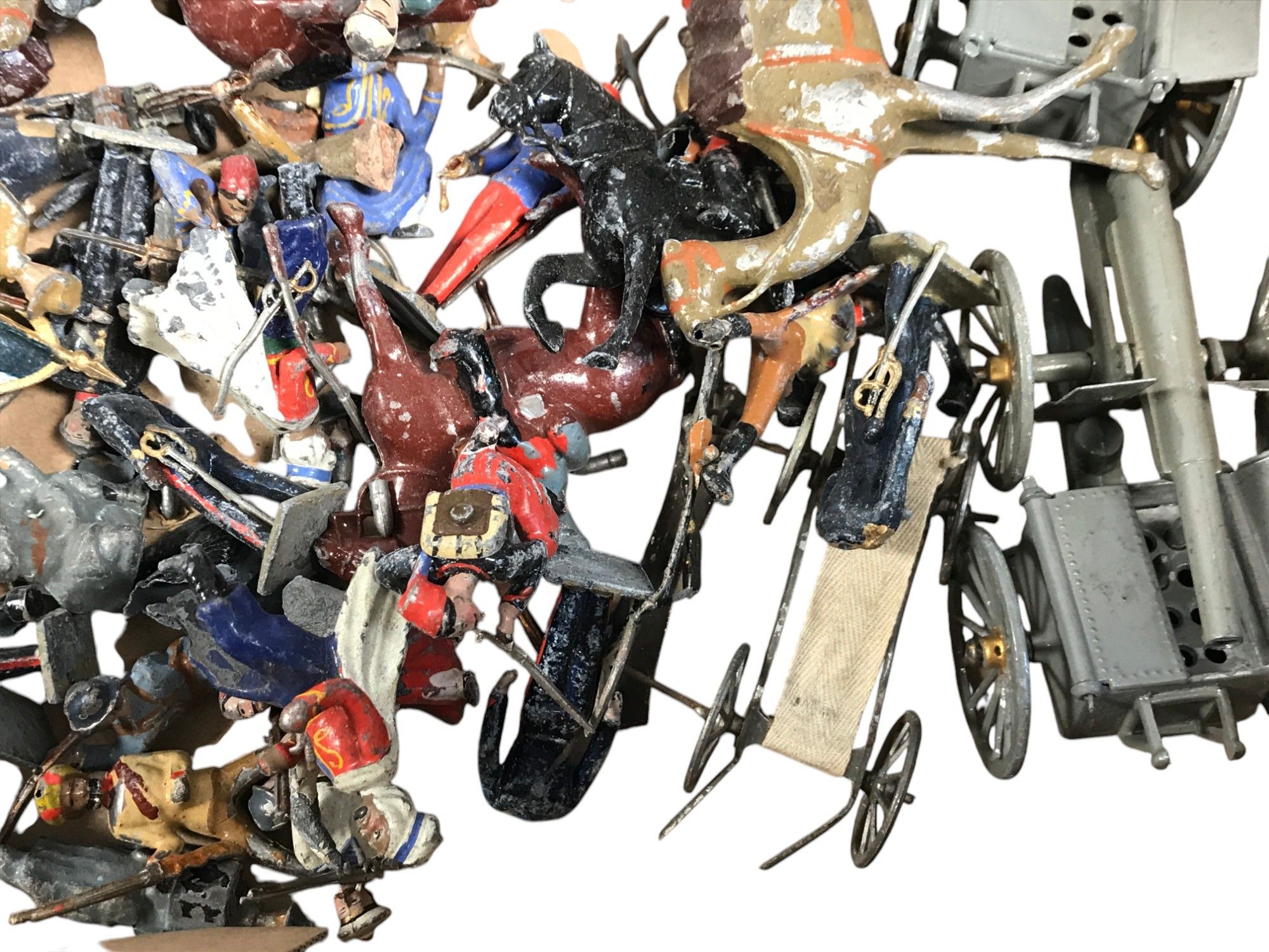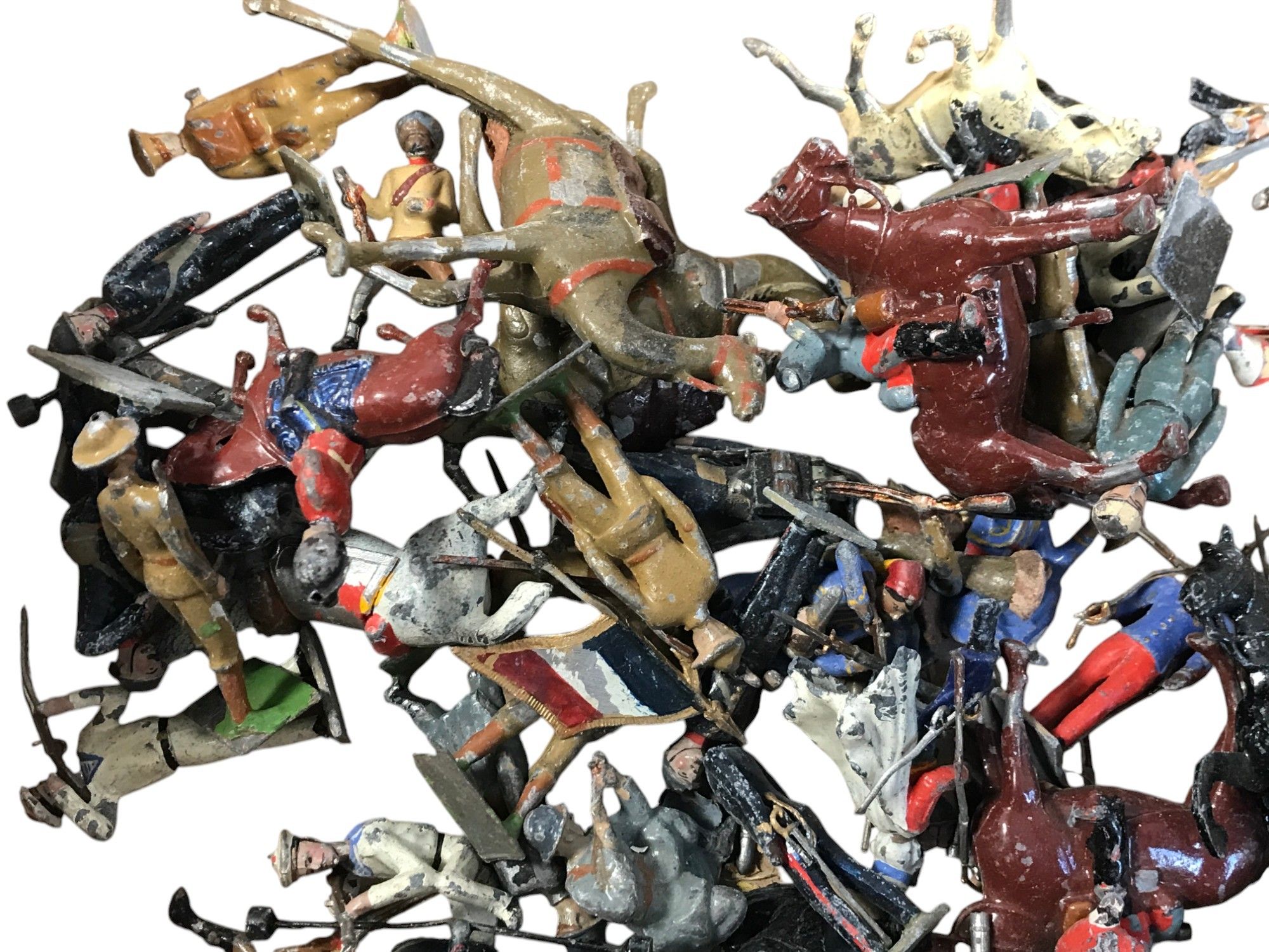 Set of LEAD SOLDIERS including horsemen and infantrymen, accidents and missing parts, as is.