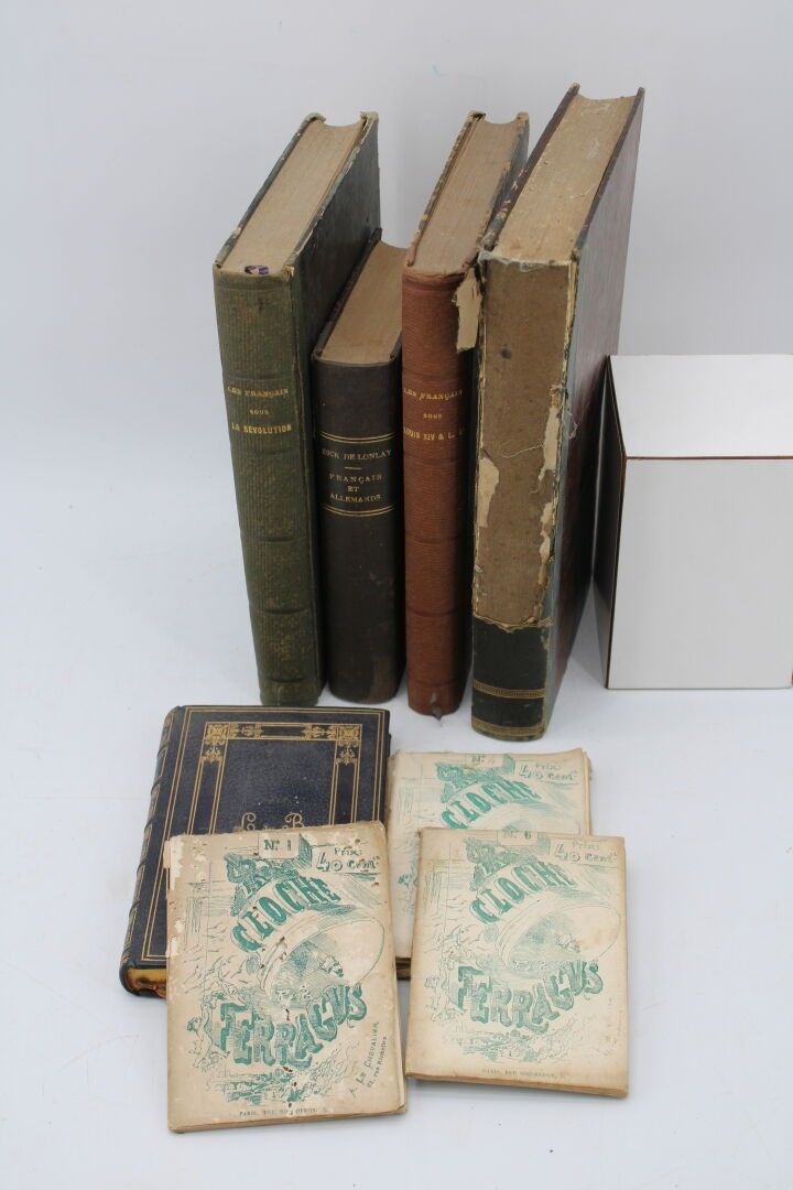 5 bound volumes XIX-XXth century including La Révolution, Dick de Lonlay Français et allemands, De La Gournerie, débris de Quiberon and miscellaneous + 5 "Cloche Ferragus" journals
