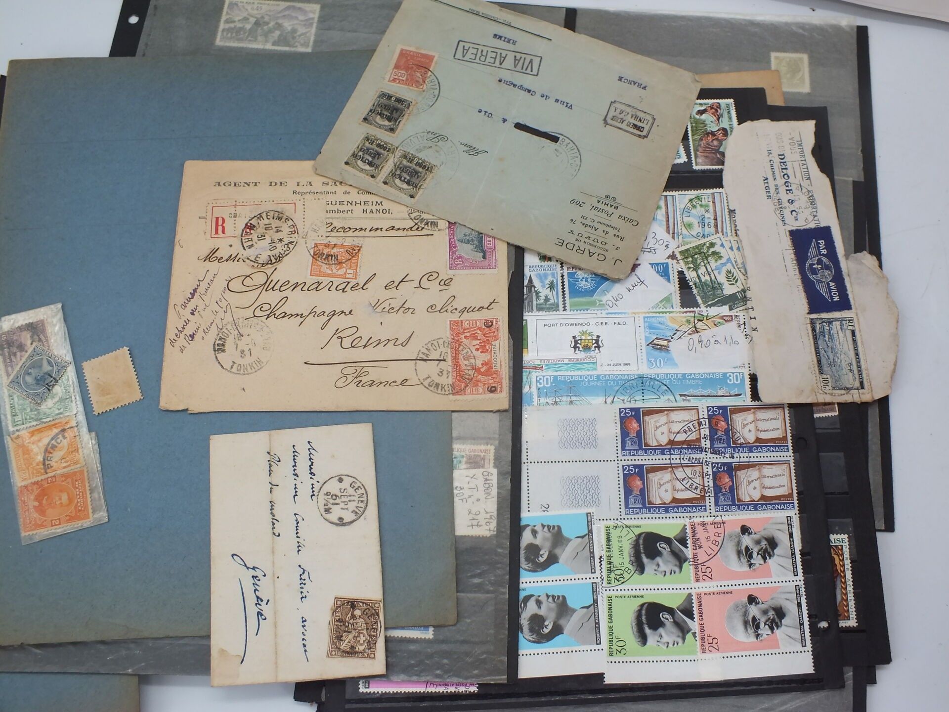 Stamp box including 1 black album, sheets, 1st day covers an…