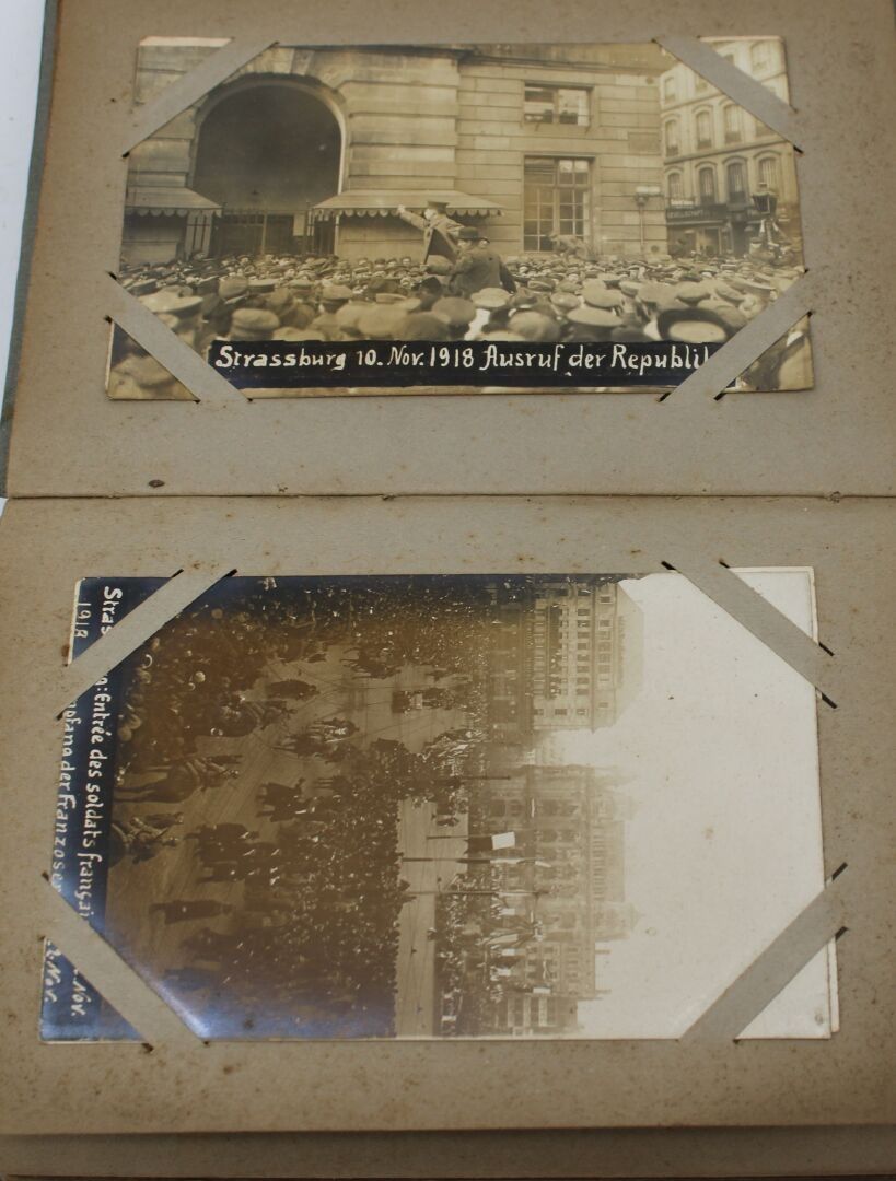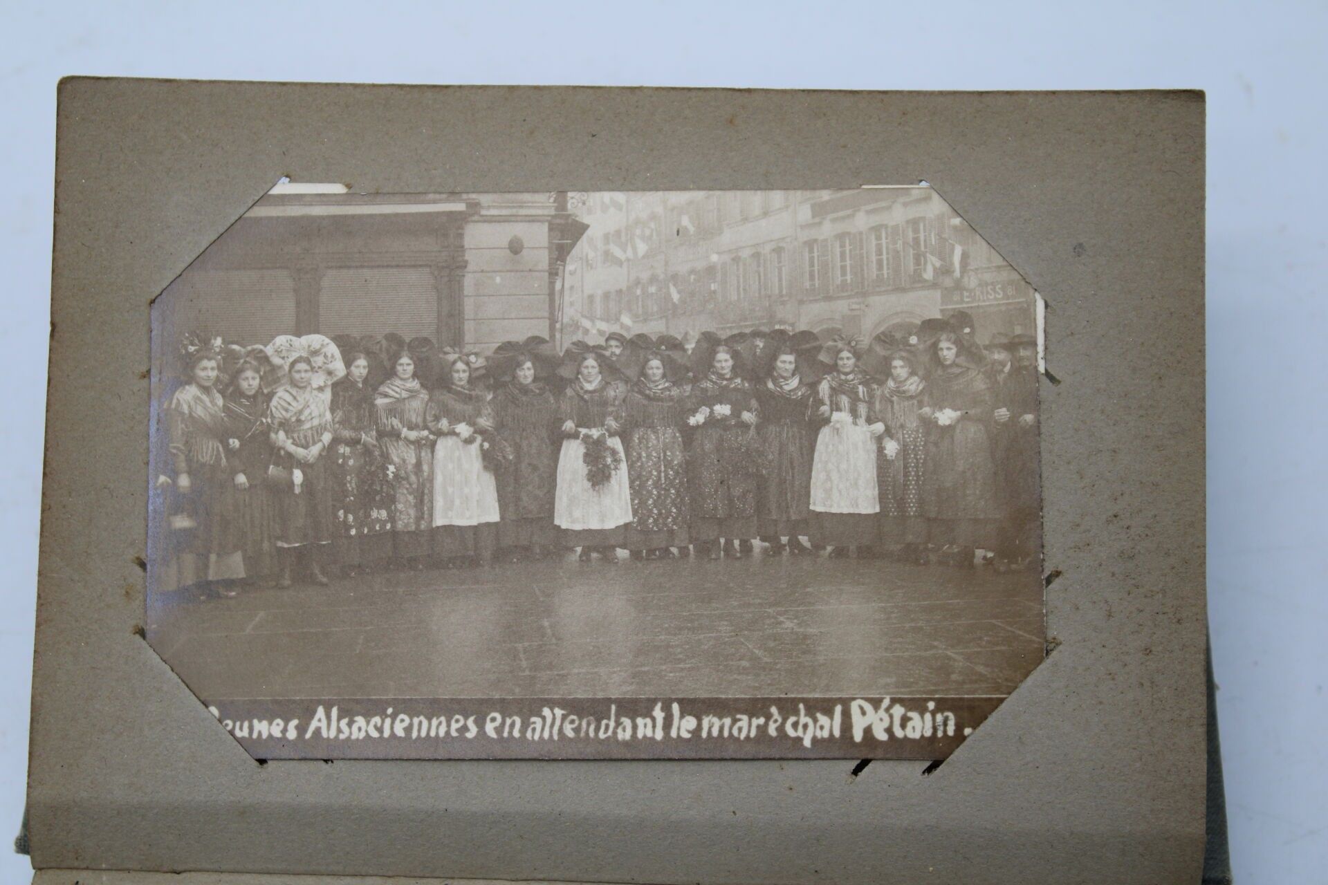 Small album of CPA mainly on the theme of Alsace including photo cards "Strasbourg after the armistice".