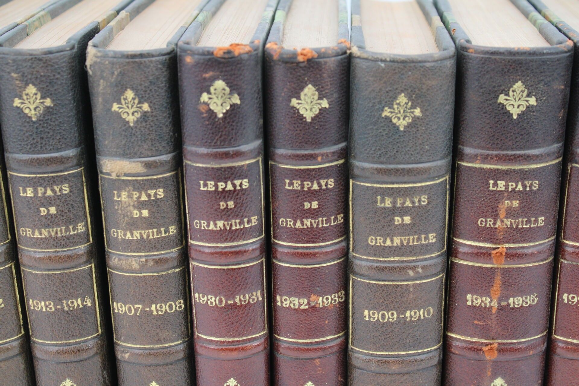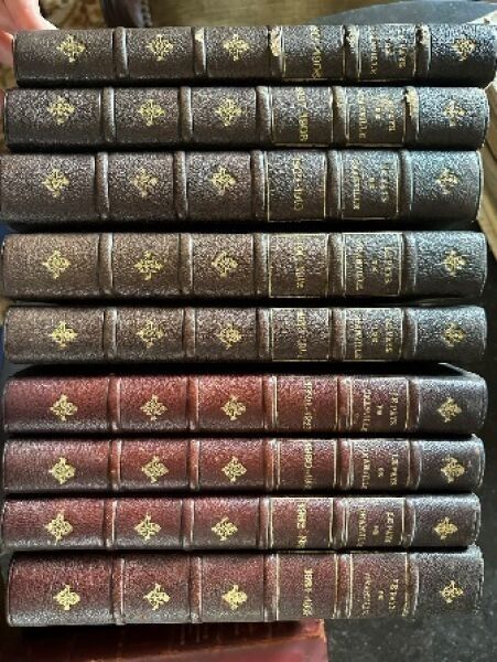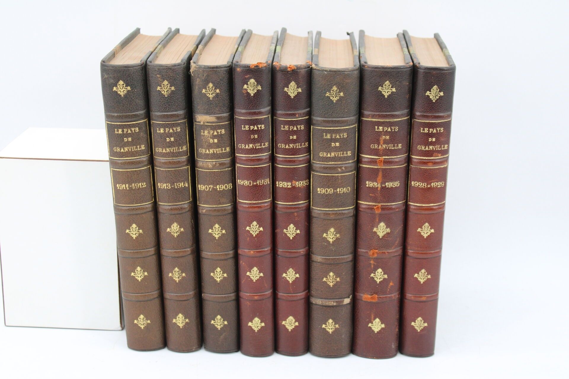 Nine bound volumes, spine ribbed, decorated with gilt iron and fillets, 1907-1935