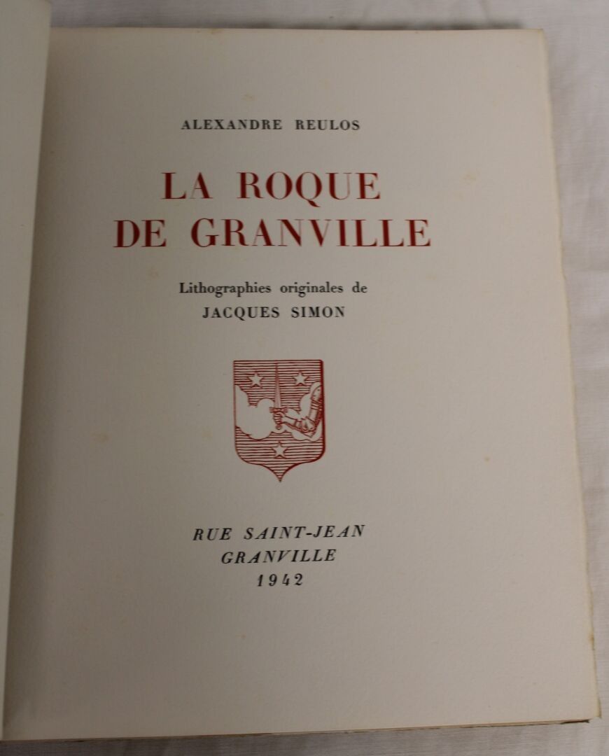 Alexandre REULOS, "La roque de Granville", 1942, copy numbered 123, print justification 123/200, dedicated to the author with original lithographs by Jacques SIMON in his hardback.