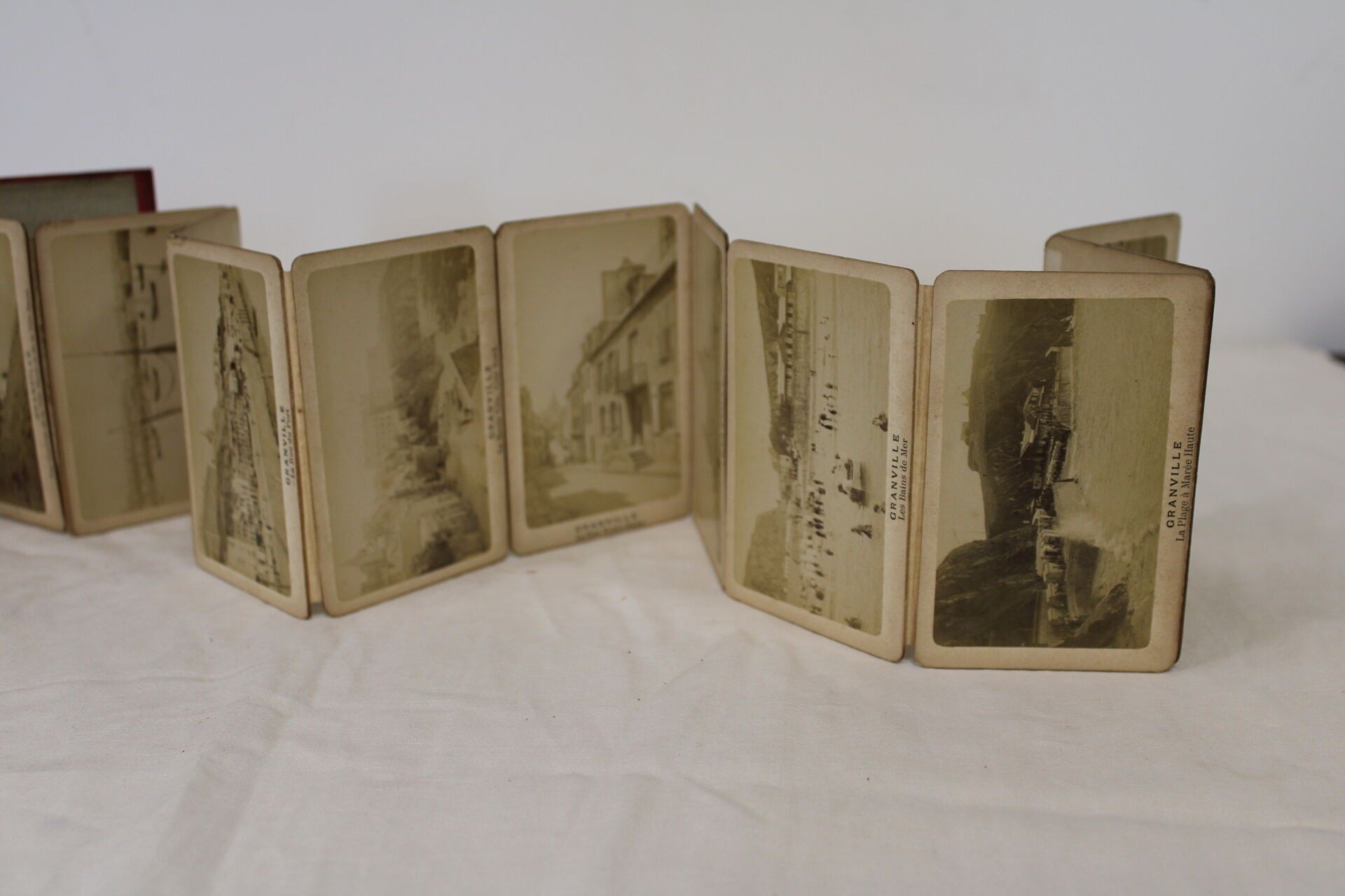 A small notebook of views of the town with a red percaline cover is included.