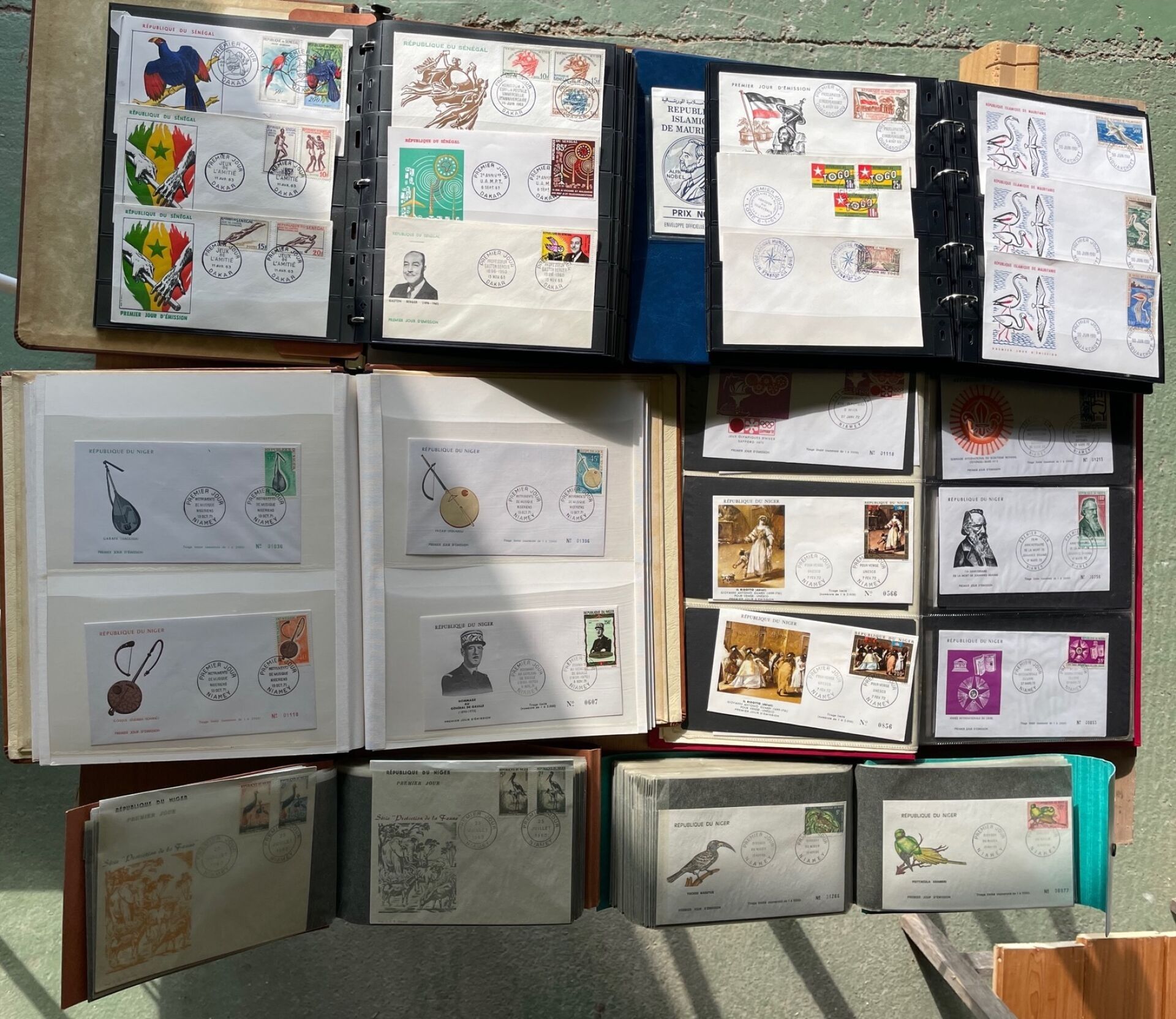 6 albums of 1st day FDC of Africa after independence. Niger and Senegal in number. Good values, especially in airmail. Large lot