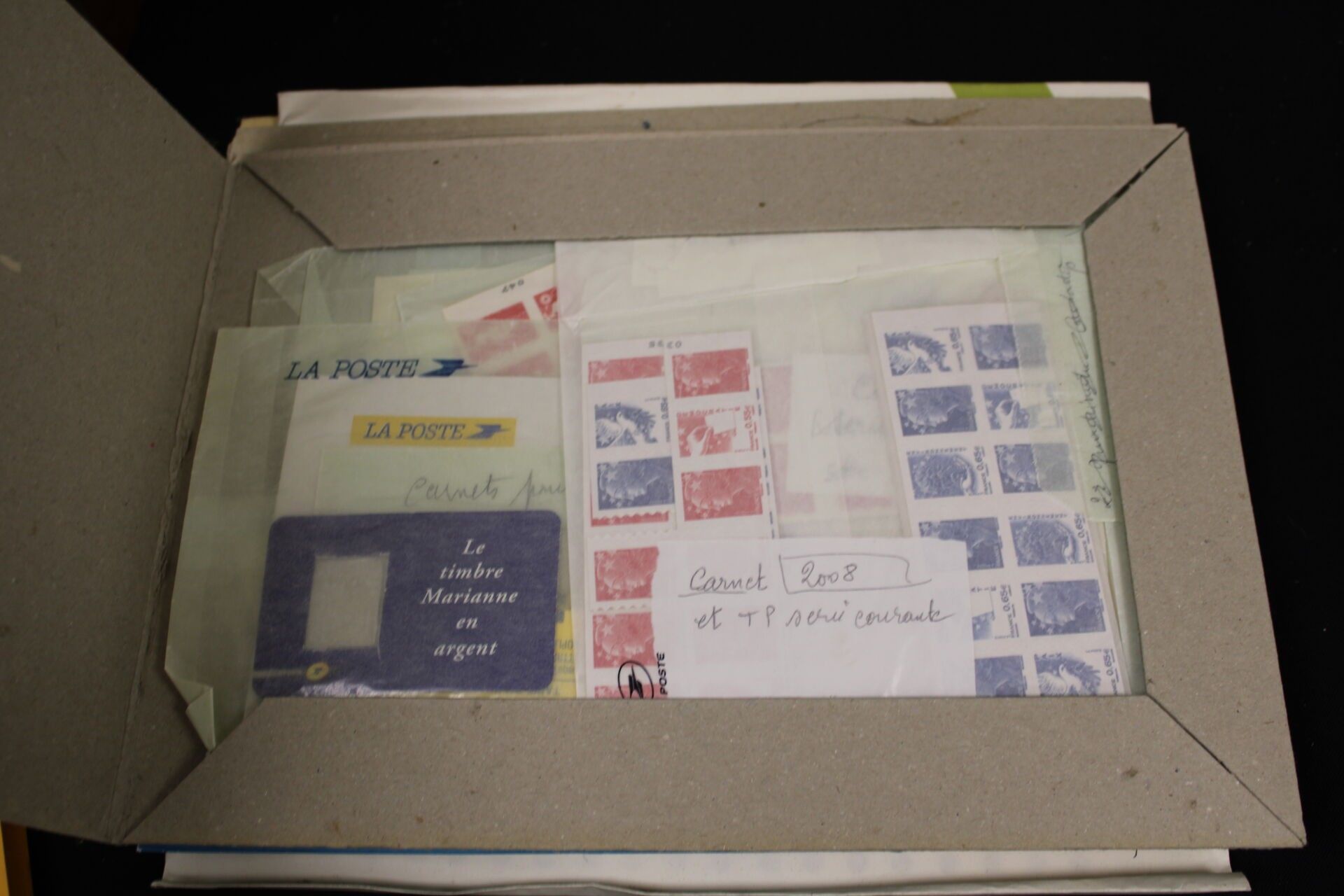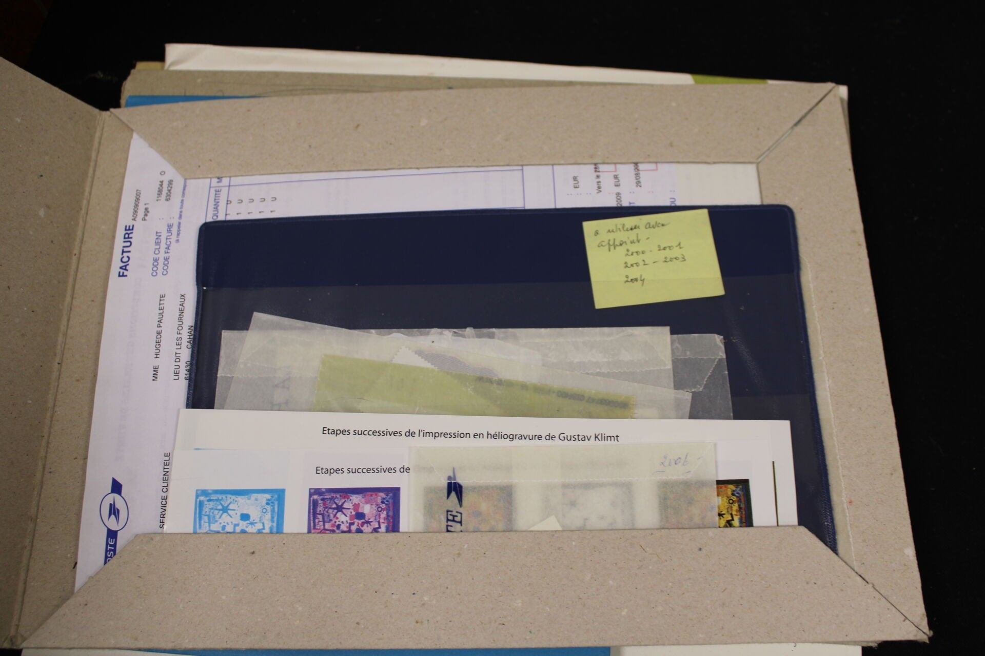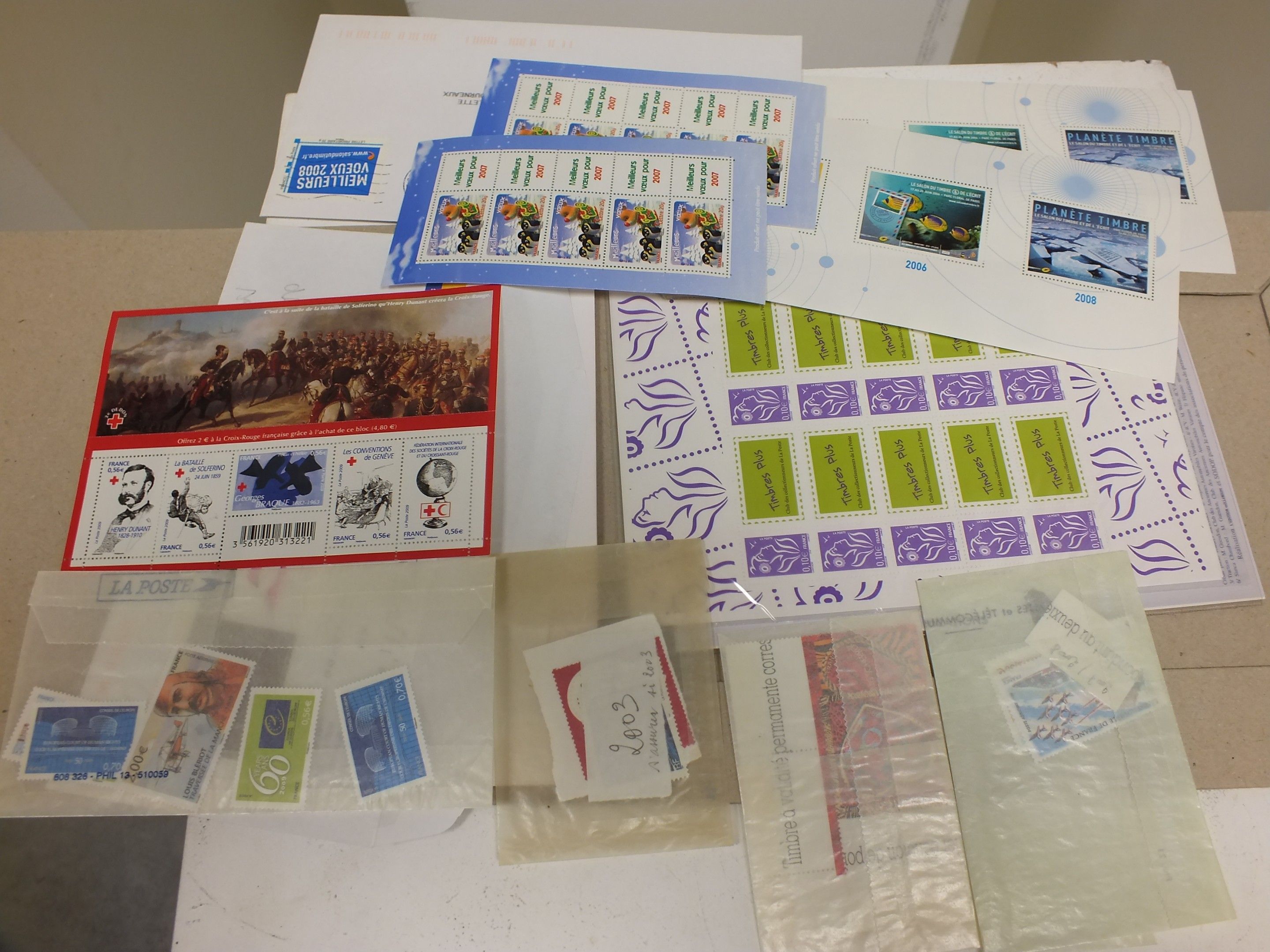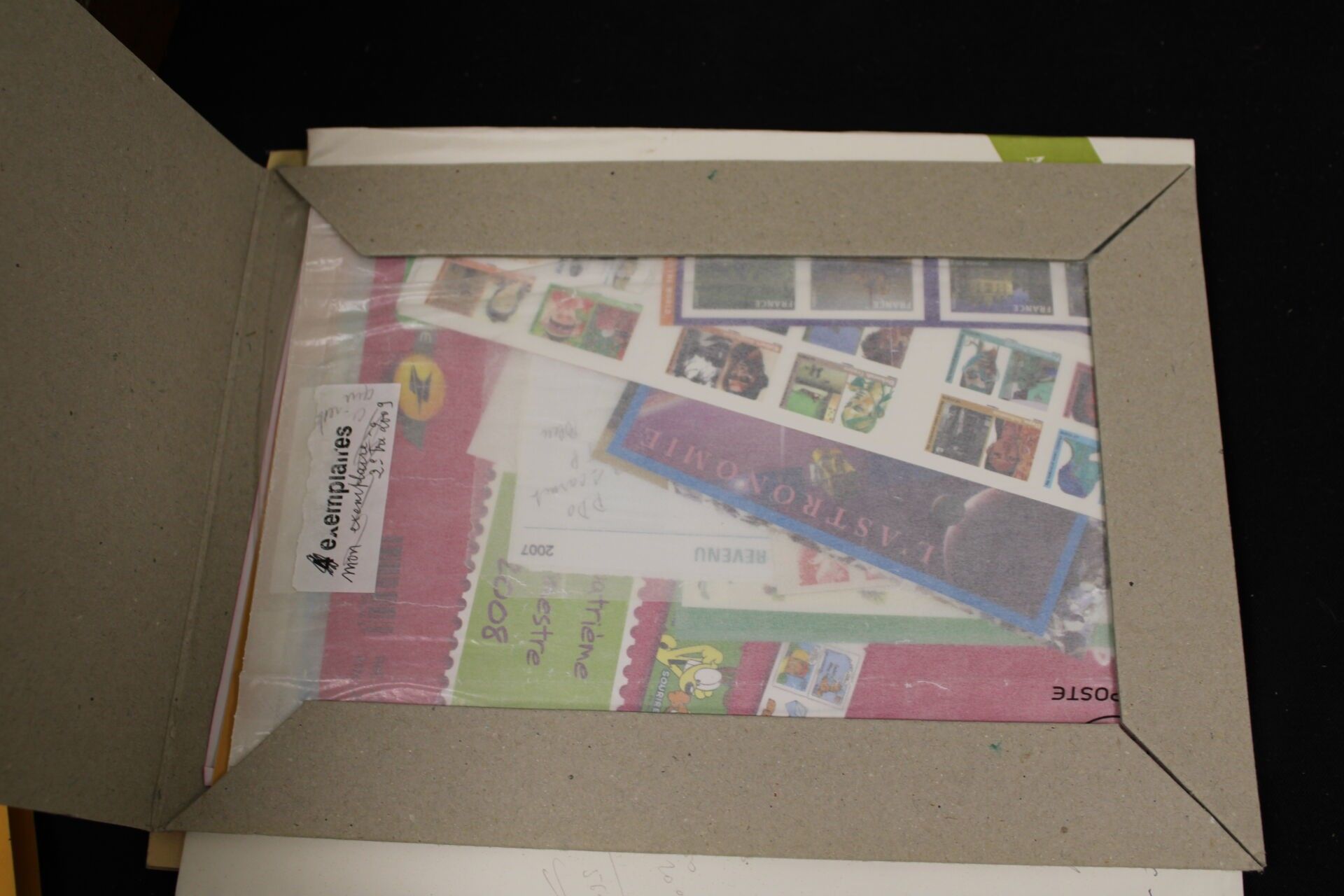 Lot of philatelic documents including mint stamps, 3 empty albums and 3 binders "stamps from all over the world".