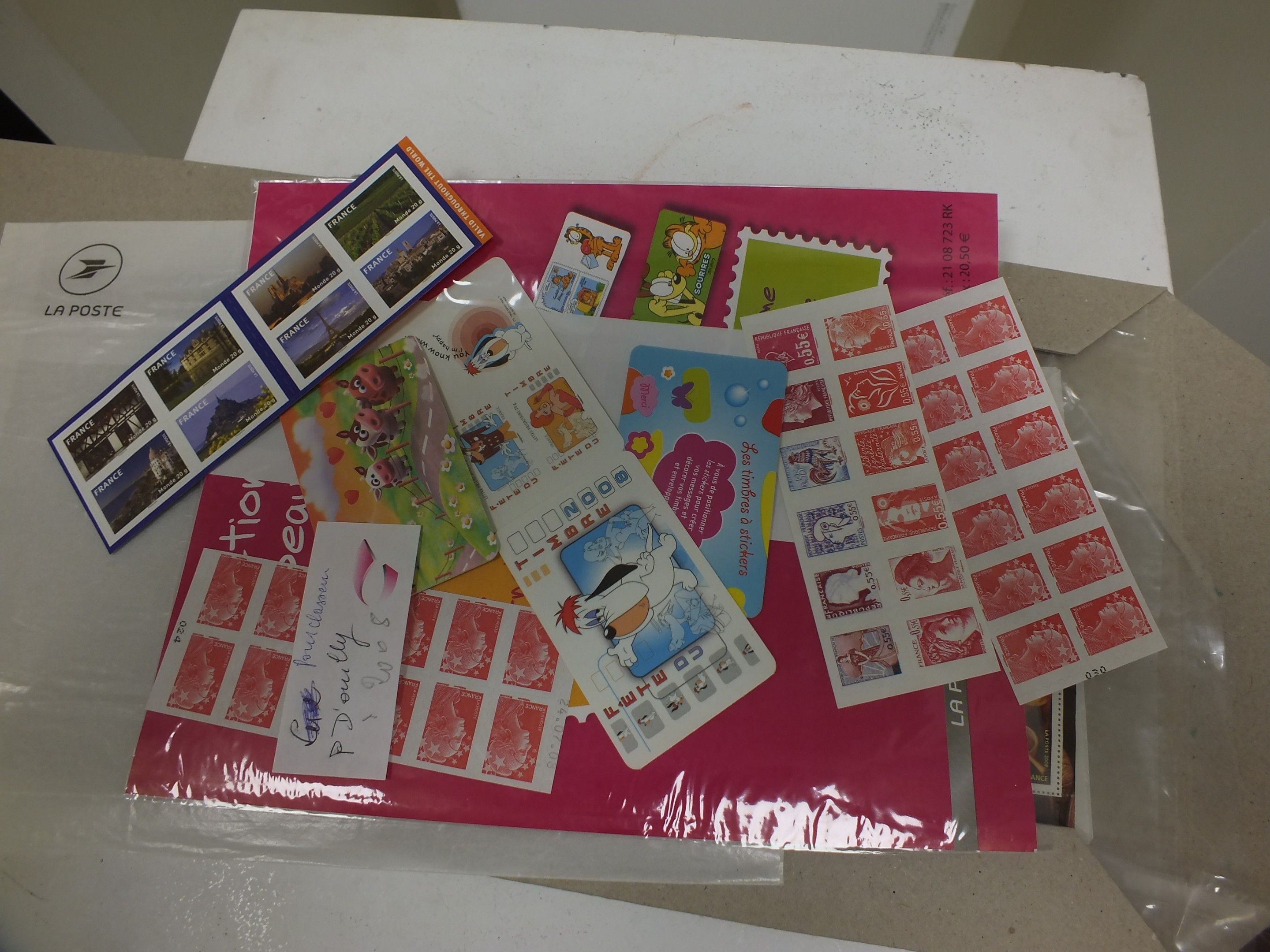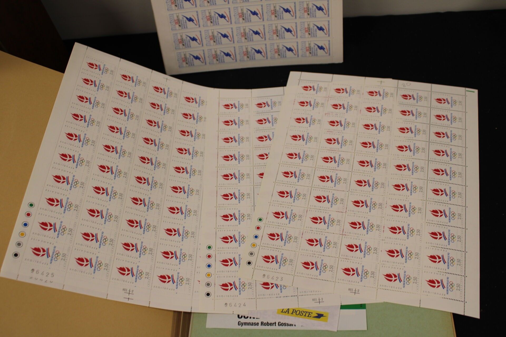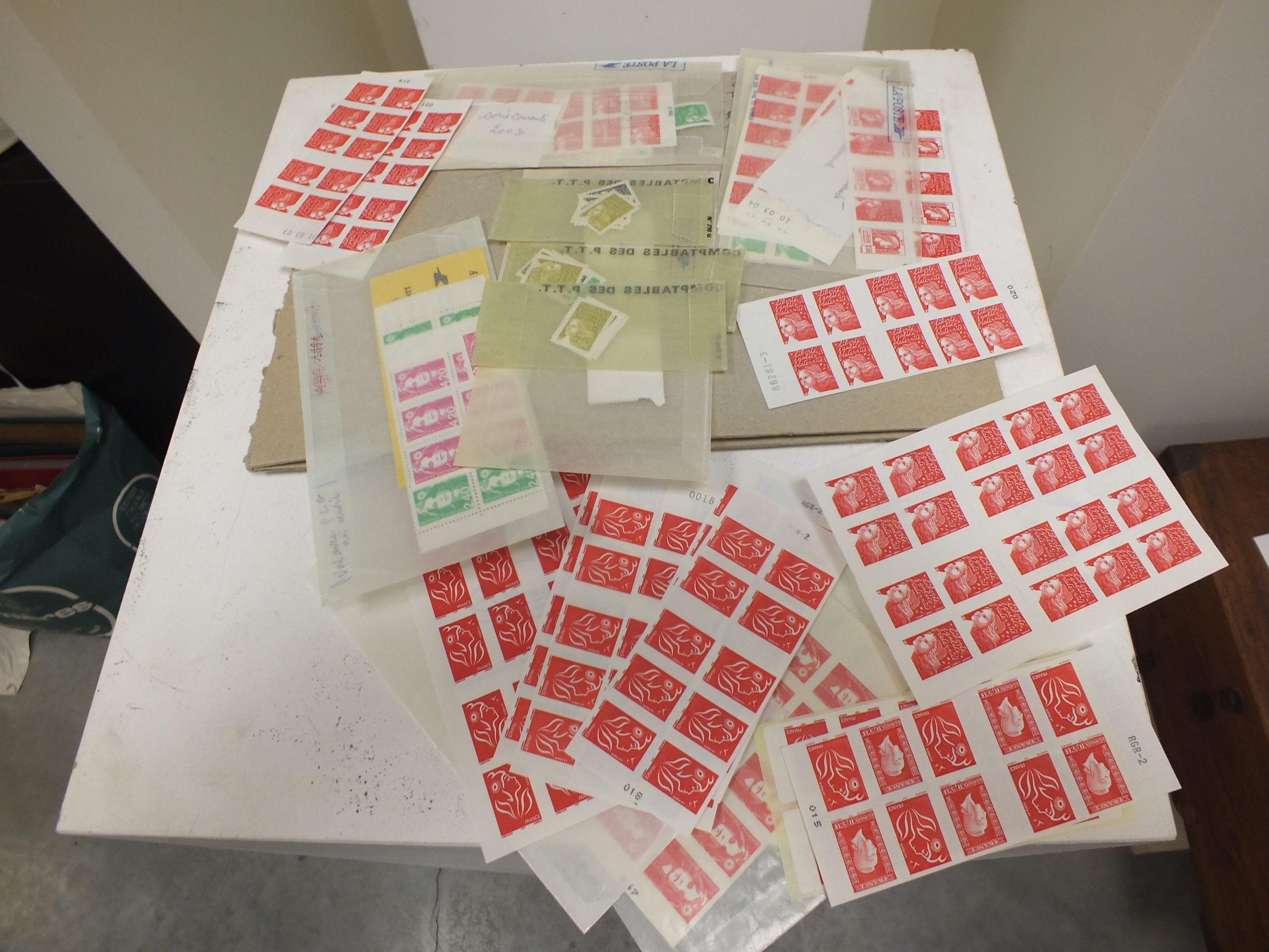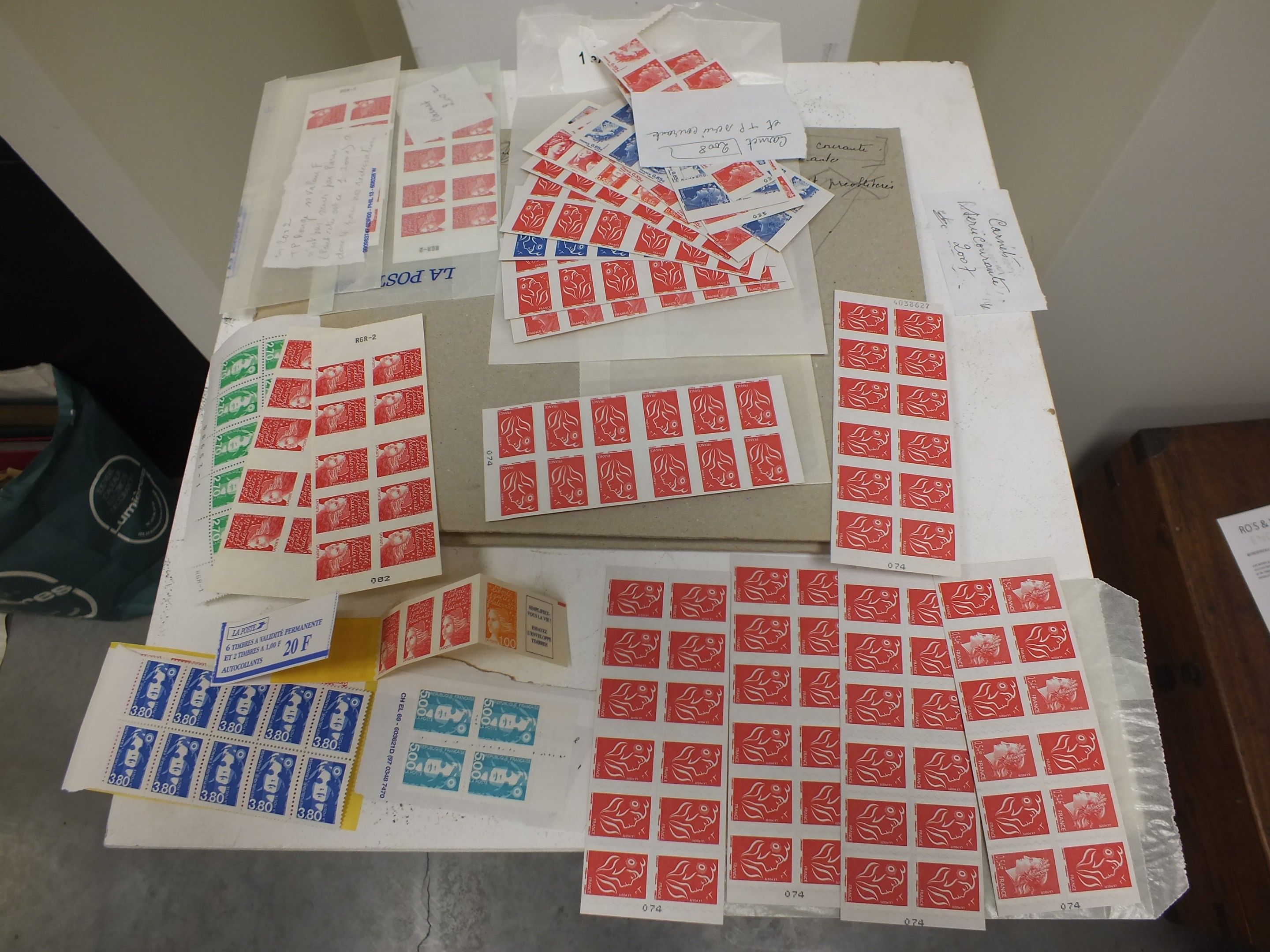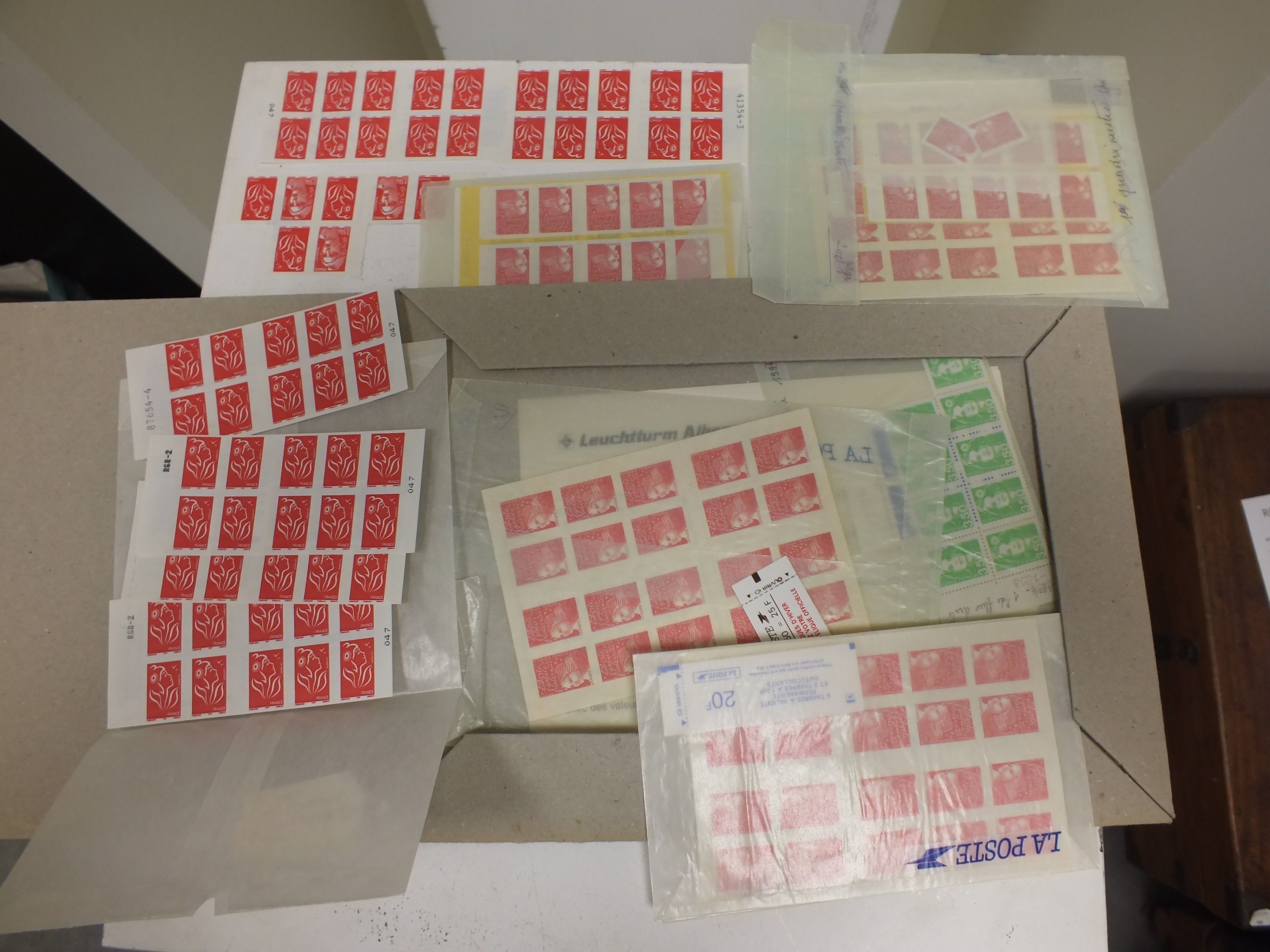Lot of philatelic documents including mint stamps, 3 empty albums and 3 binders "stamps from all over the world".