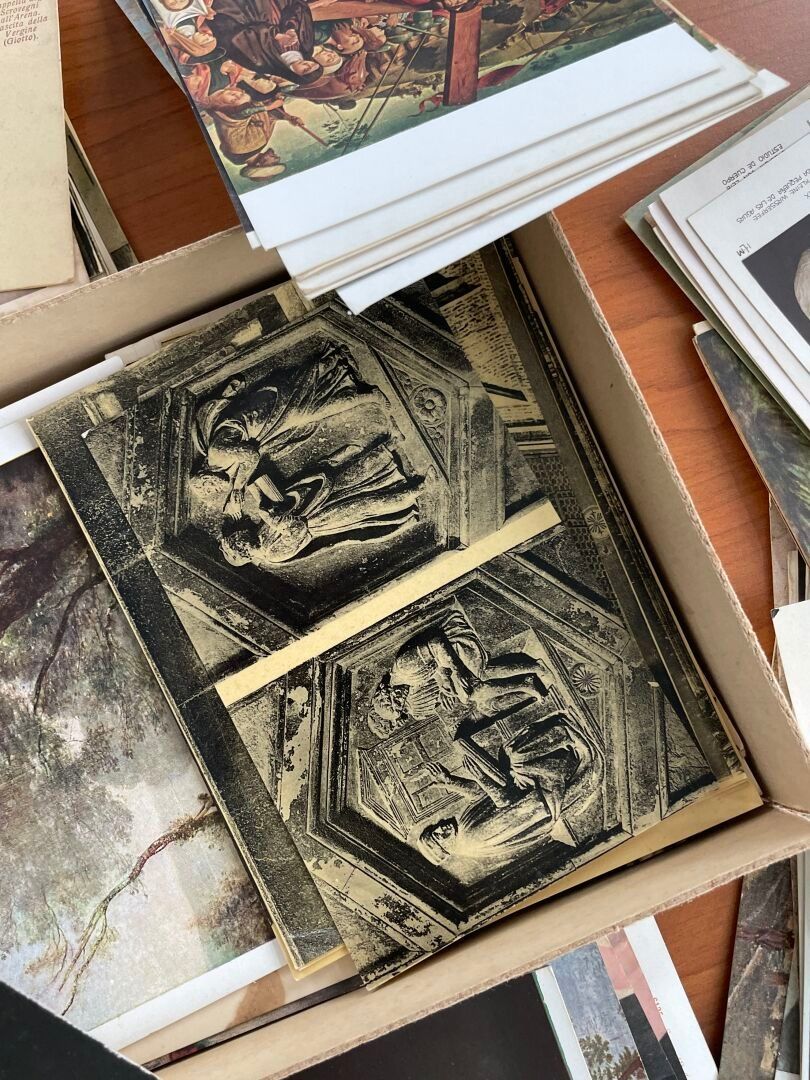 Small batch of semi-modern postcards, mostly decorated with religious sculptures