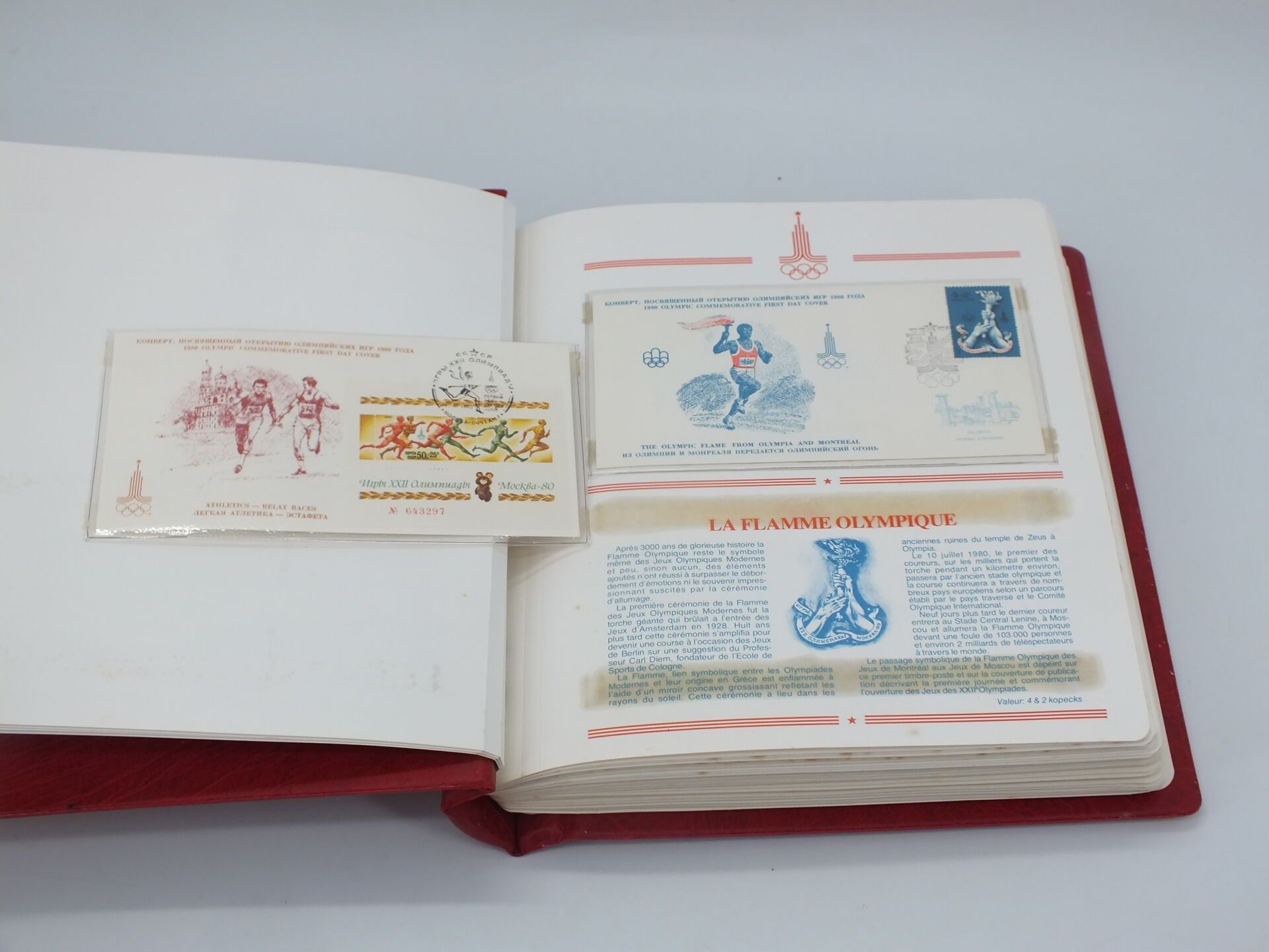 Set of two red albums of 1st day covers for the 1980 Moscow Olympic Games.