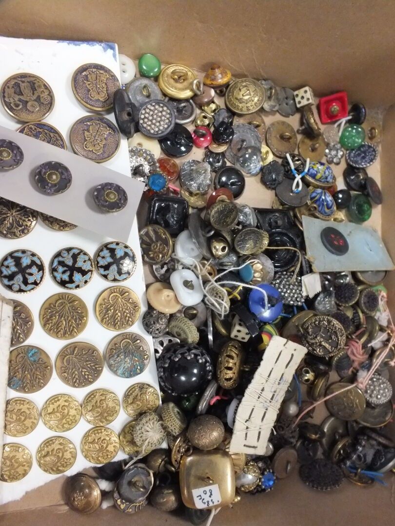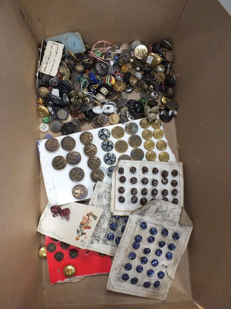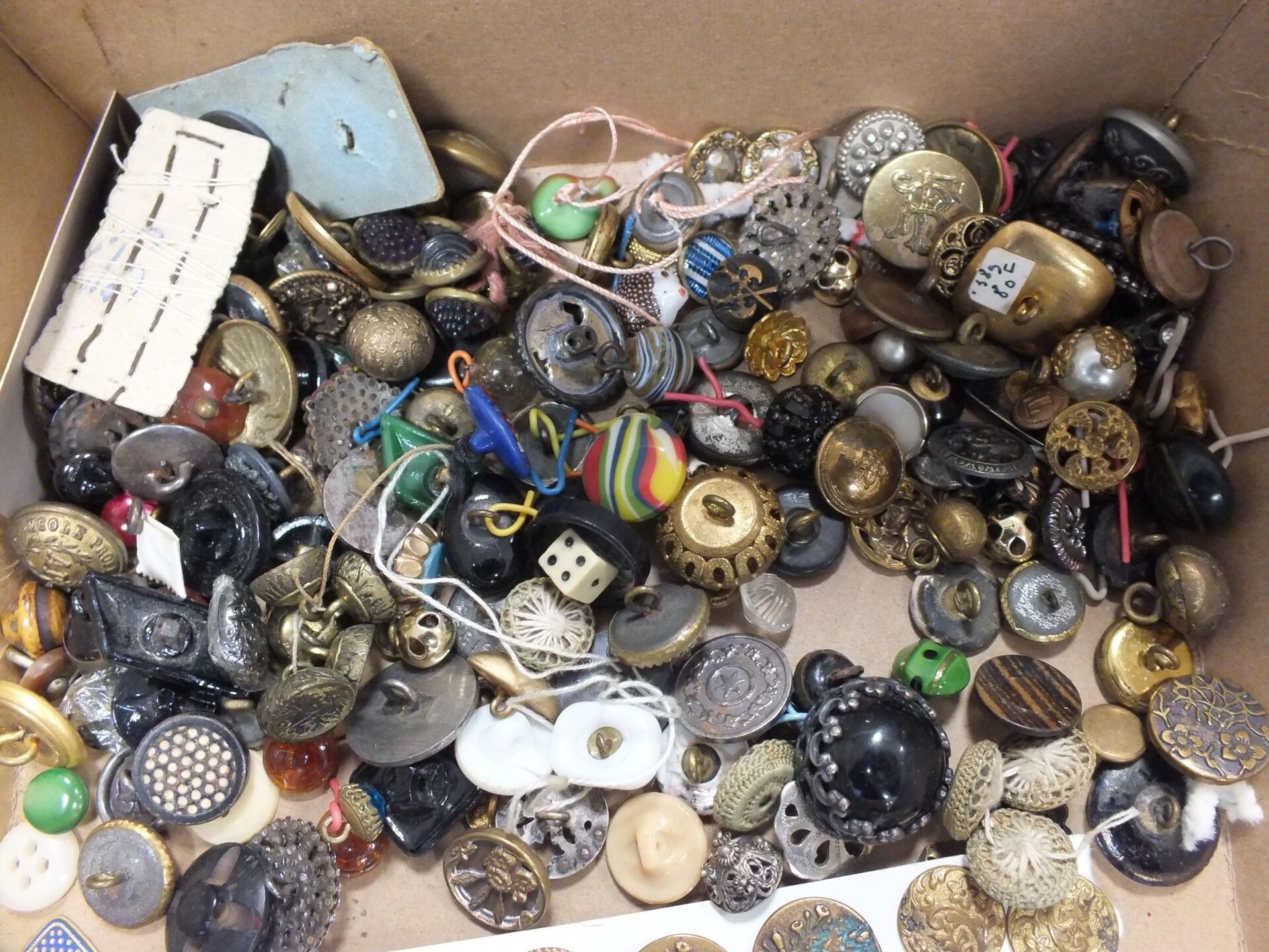 Lot of small ceramic and gilt metal buttons, including on bo…