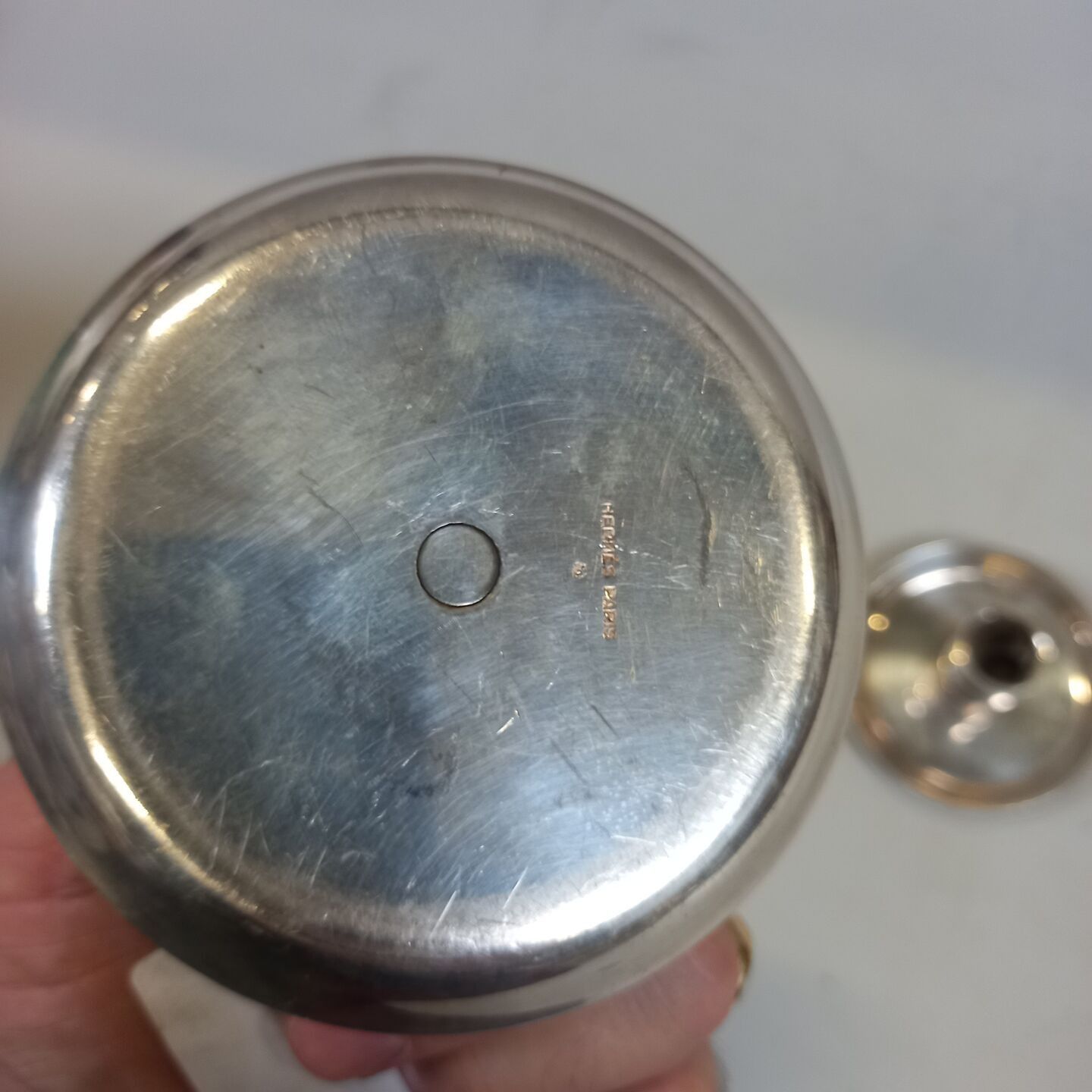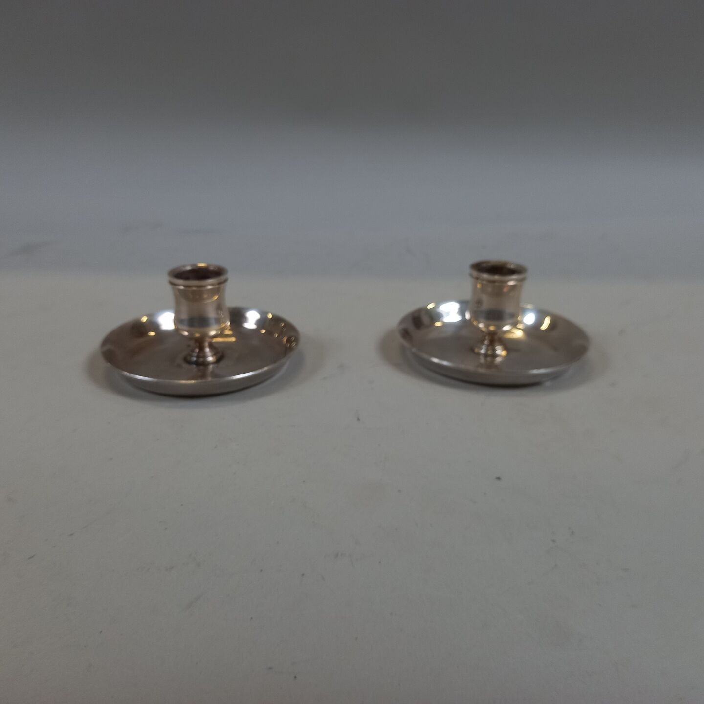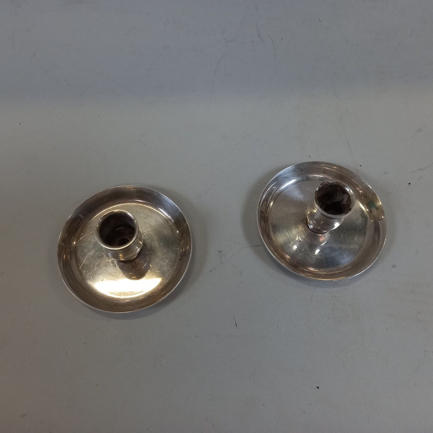 HERMES Paris. Pair of silver-plated candlesticks. Signed. Wear and scratches.
