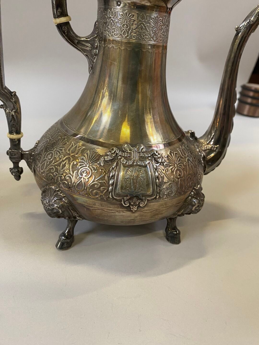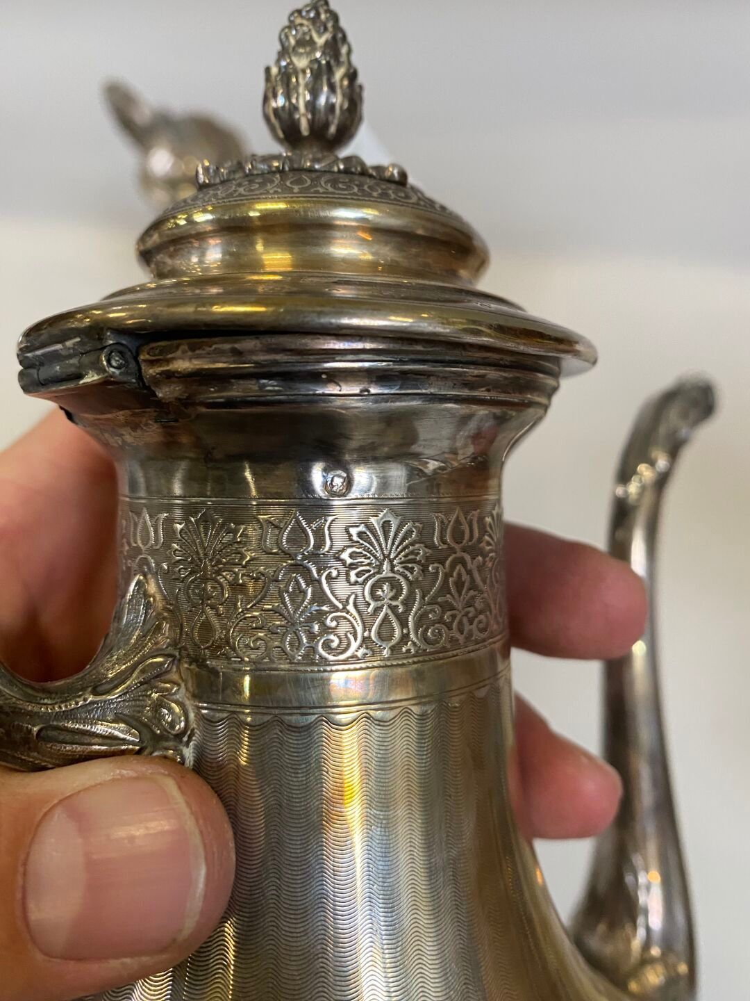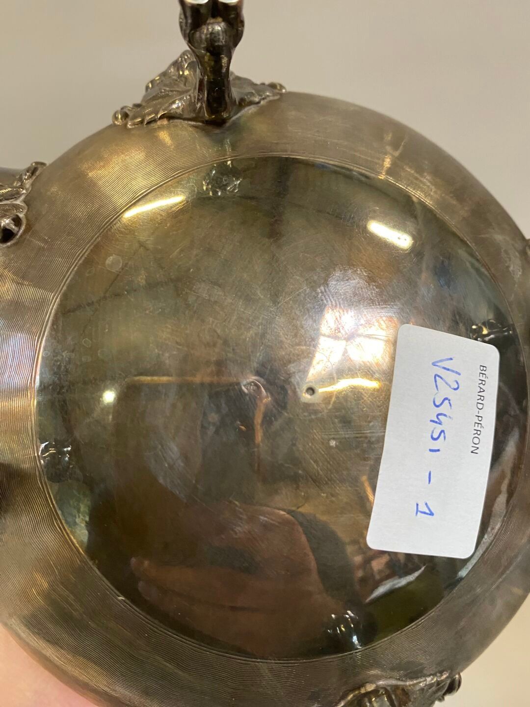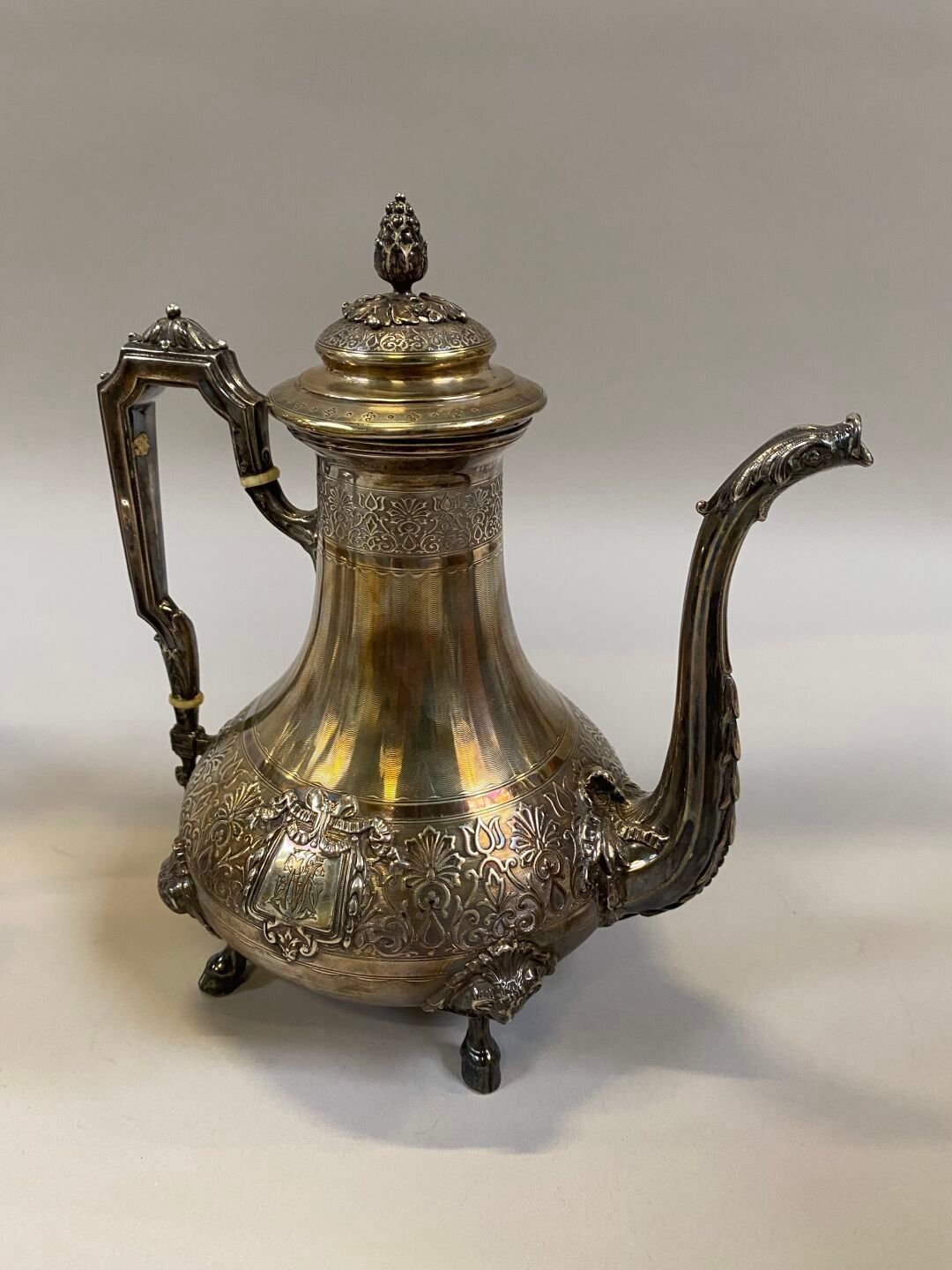 A silver teapot on sabot feet. Minerve hallmark. Gross weight: 570 g.