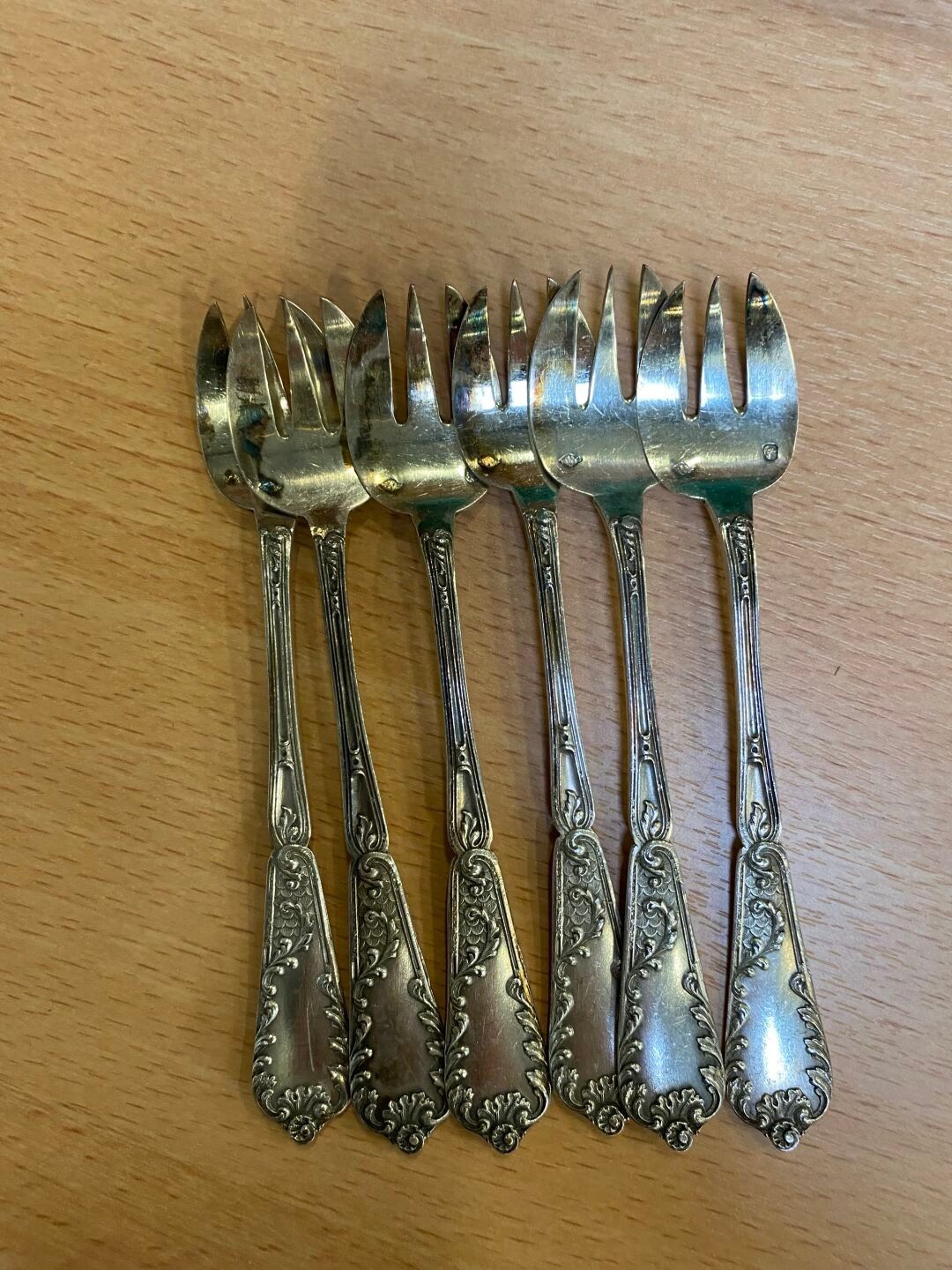 Silver set comprising six oyster forks with foliate decorati…