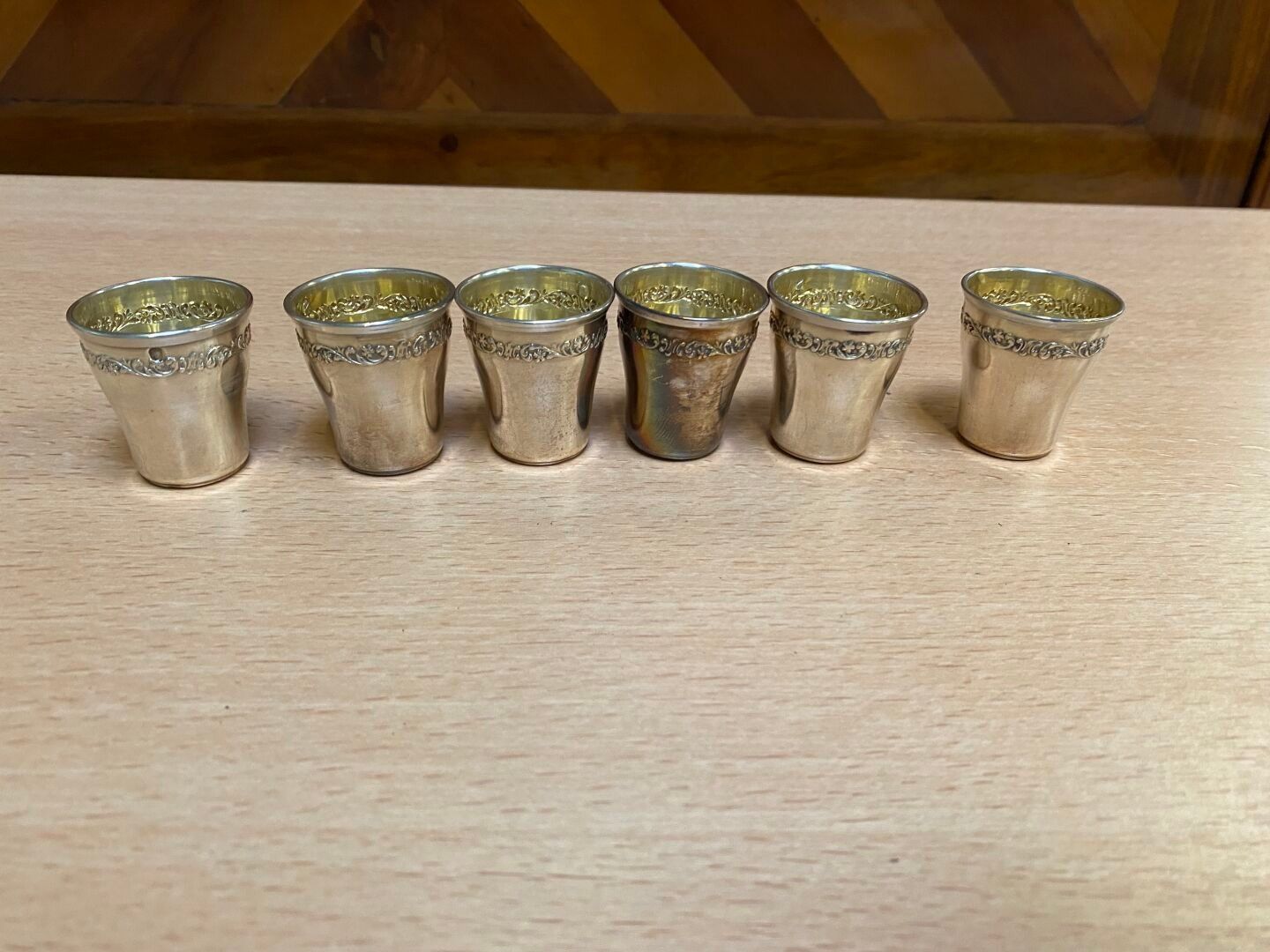Six silver liqueur GLASSES with vermeil inside. Weight : 50 g.