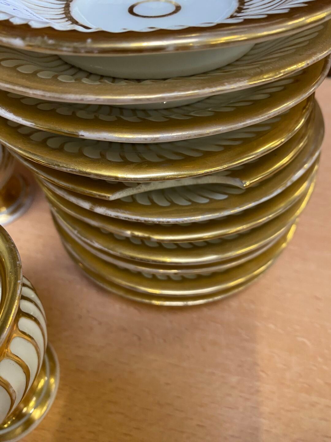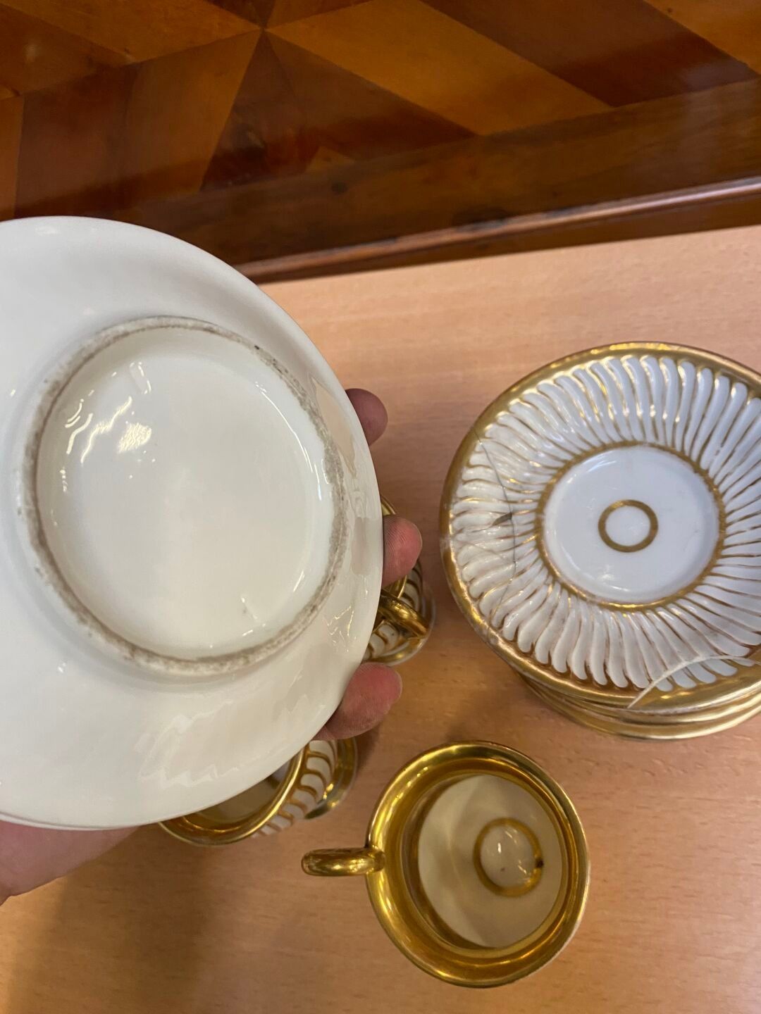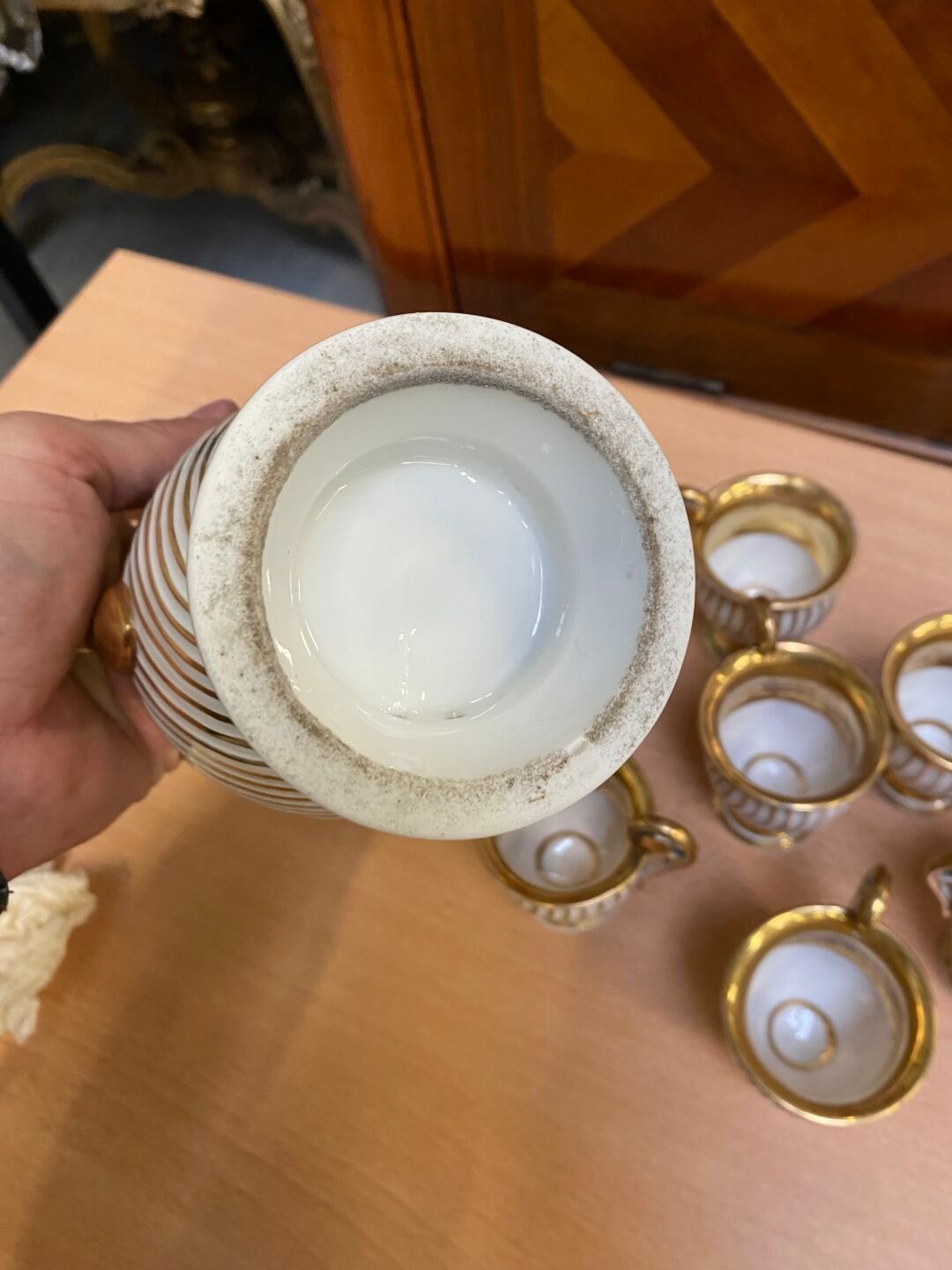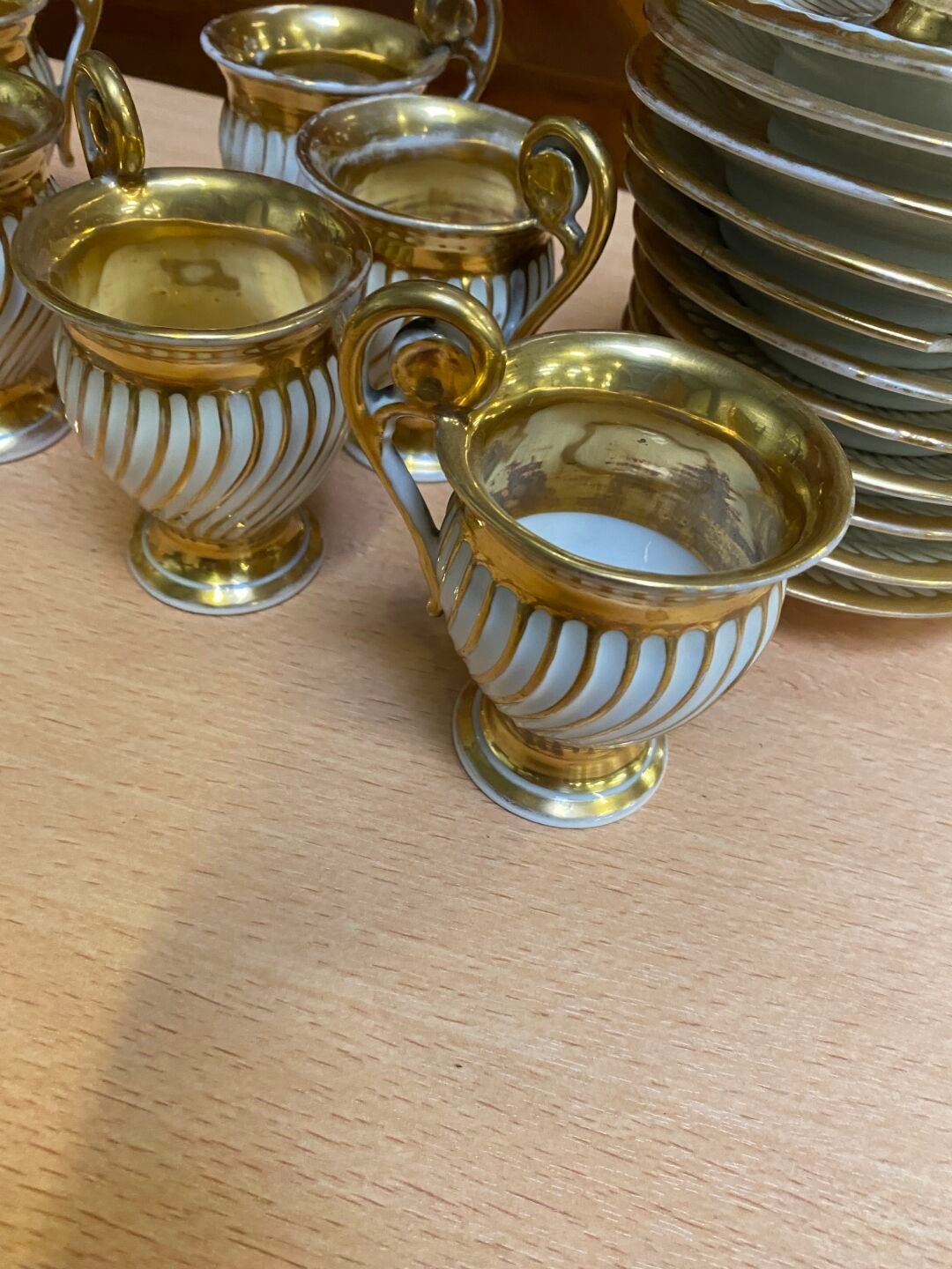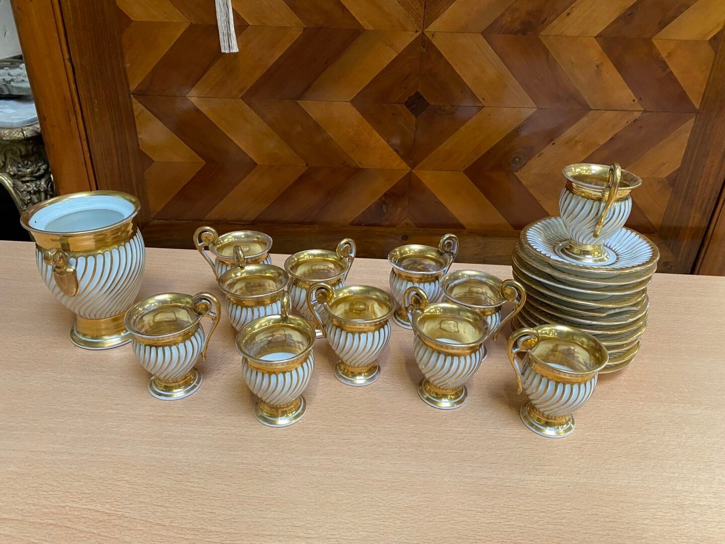 A porcelain coffee service decorated with twisted flutes, comprising eleven cups and a sugar bowl (the lid is missing). Paris, 19th century. Accidents and restorations.