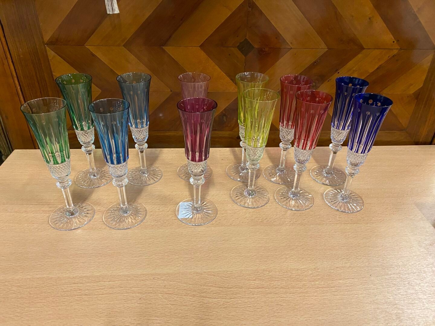 SAINT-LOUIS. Suite of twelve tommy champagne flutes in two-t…