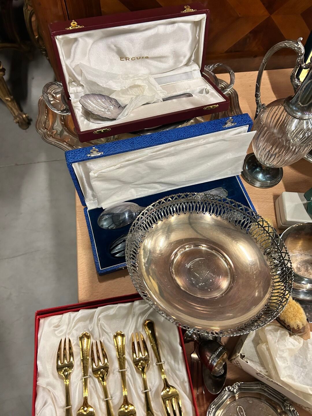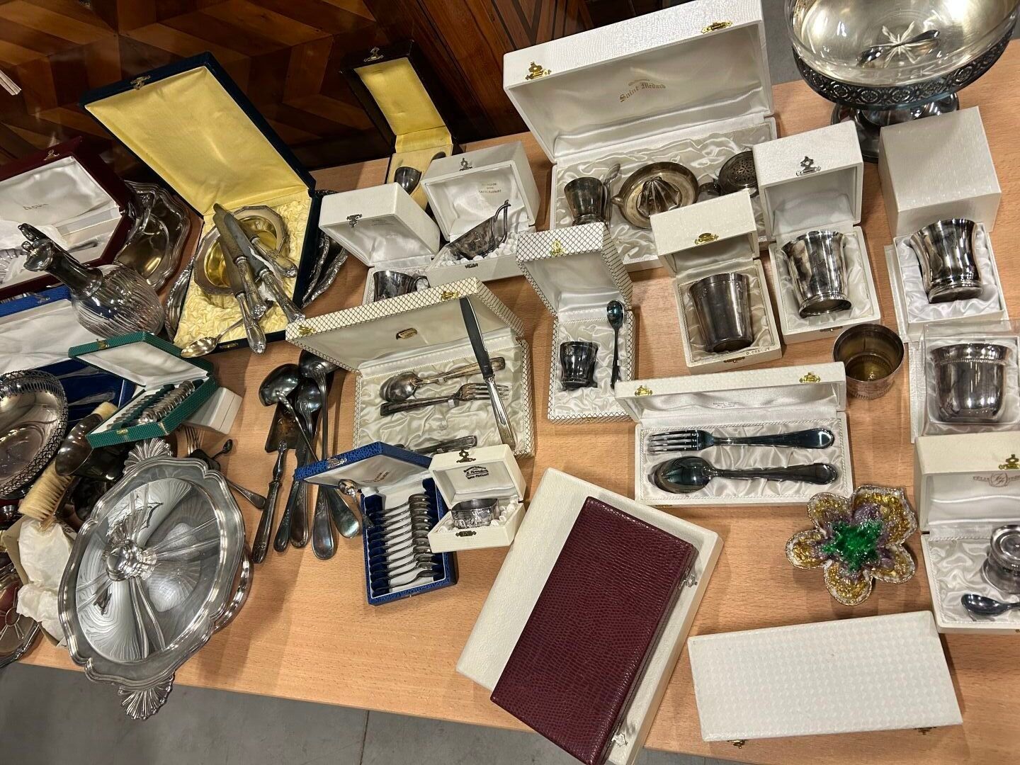 A large lot of silver-plated METAL, including kettledrums, s…