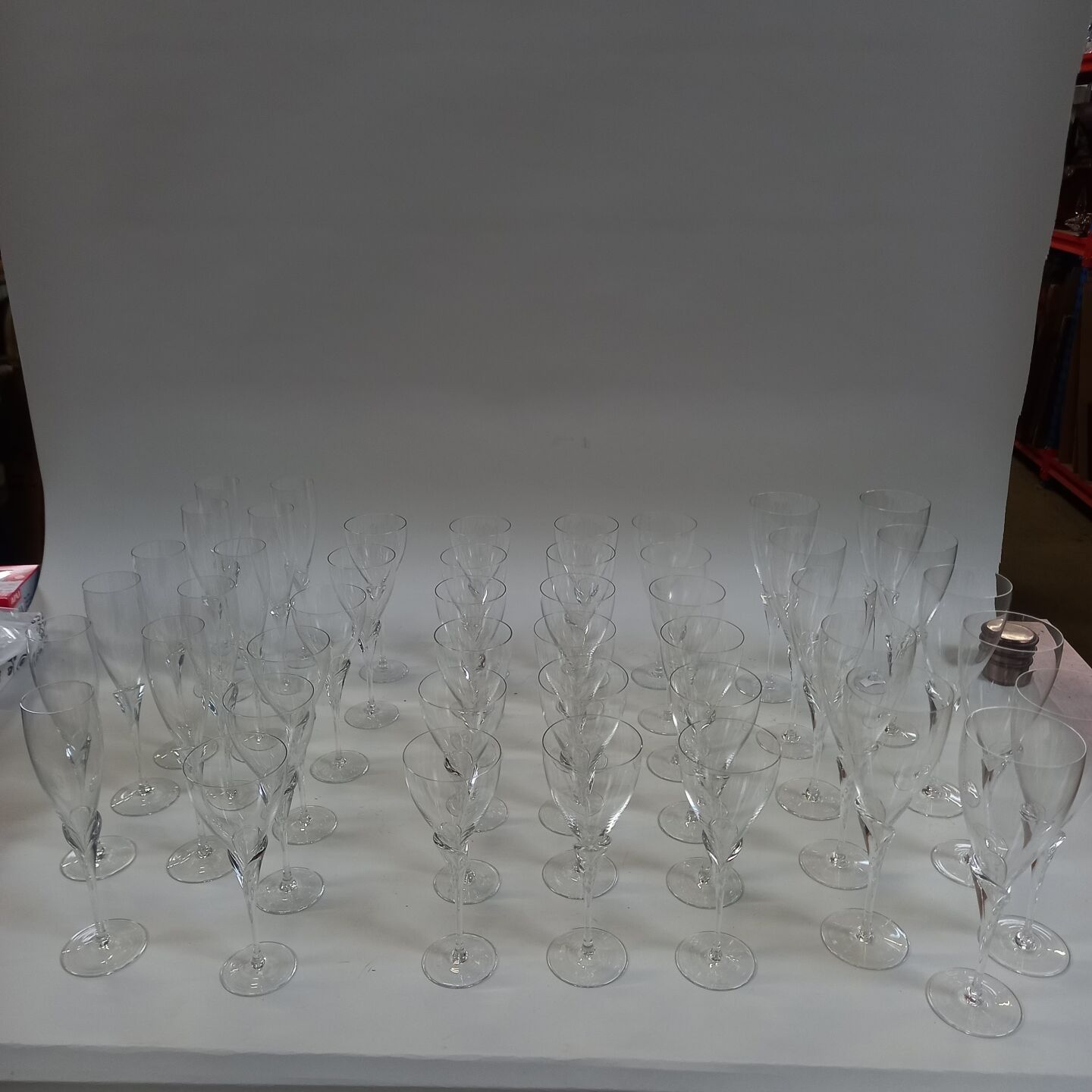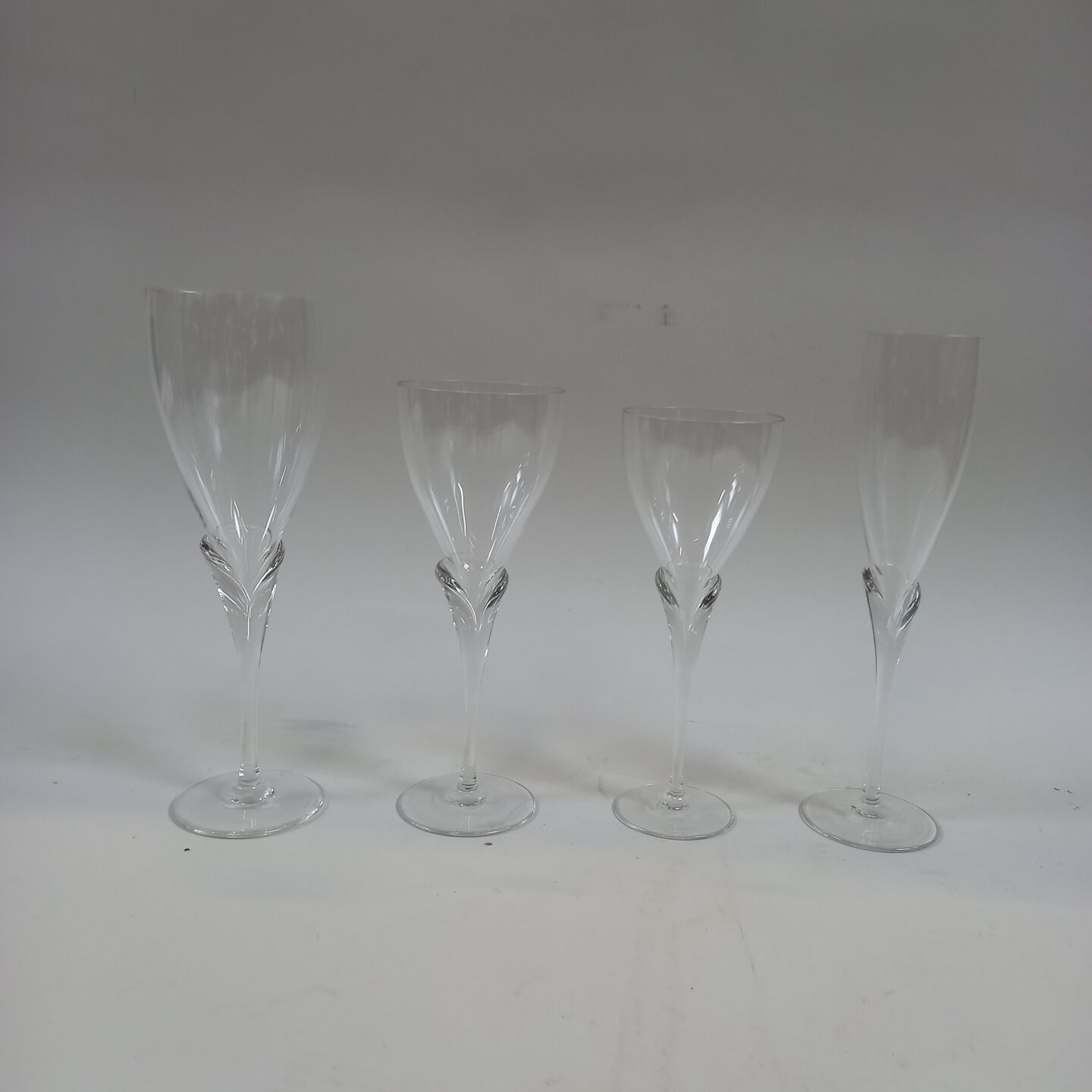 ROSENTHAL - Service of crystal GLASSES tulip model (?) including : 11 champagne flutes, 11 water glasses, 12 red wine glasses and 12 white wine glasses. AS IS (chips)
