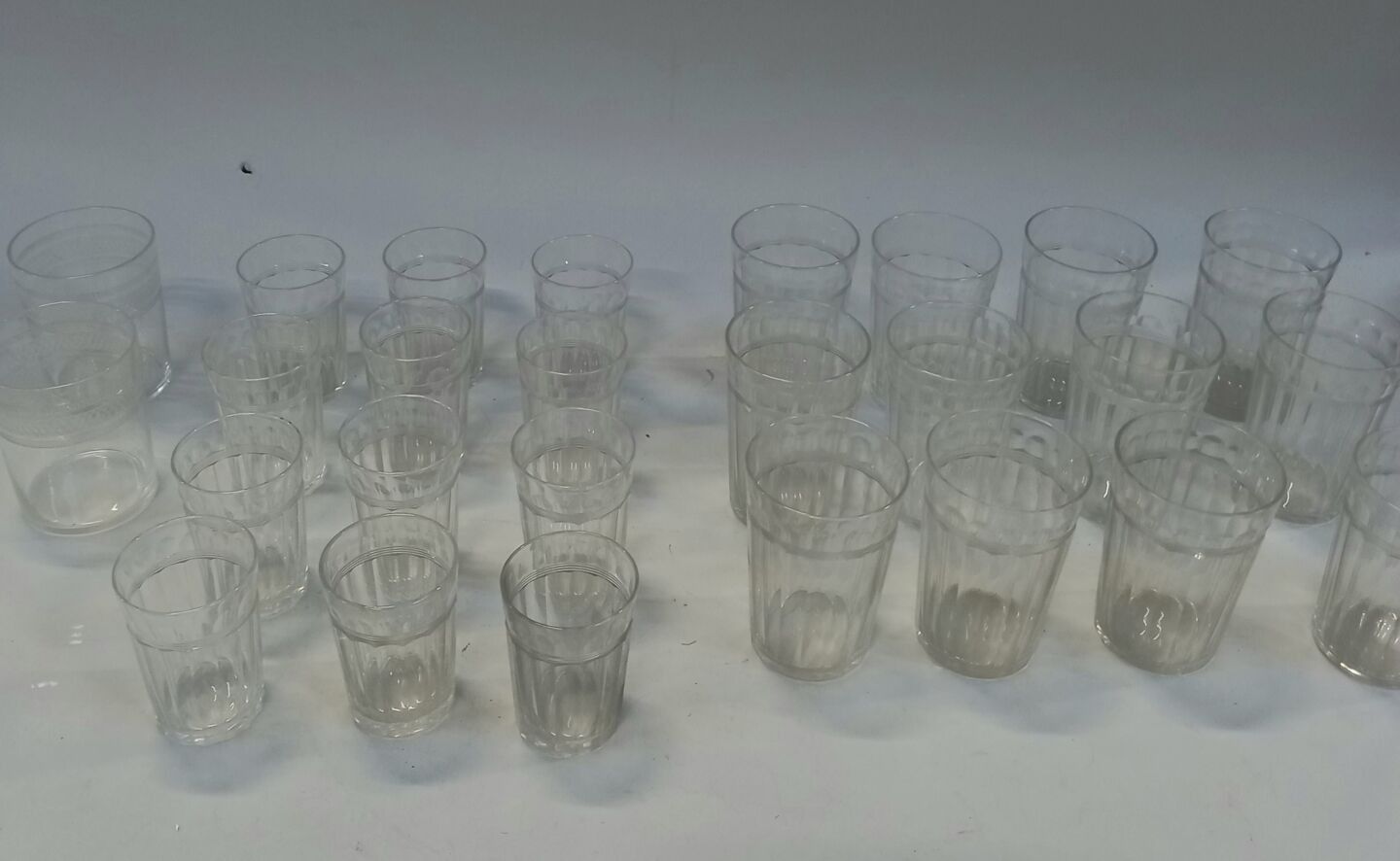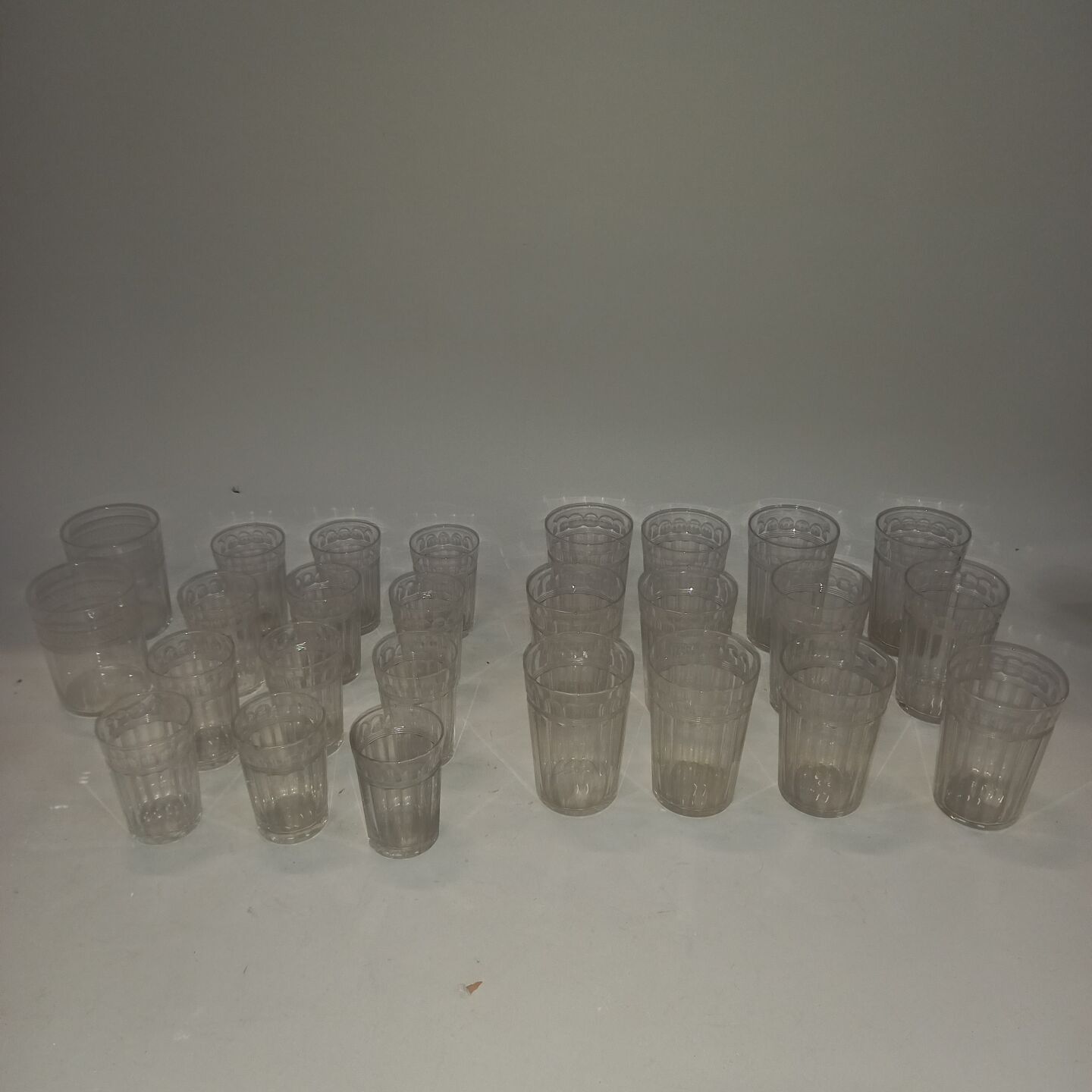 12 Large GLASSES and 12 small GLASSES in l-crystal with striated decoration and two glass GOBELETS (chips).
