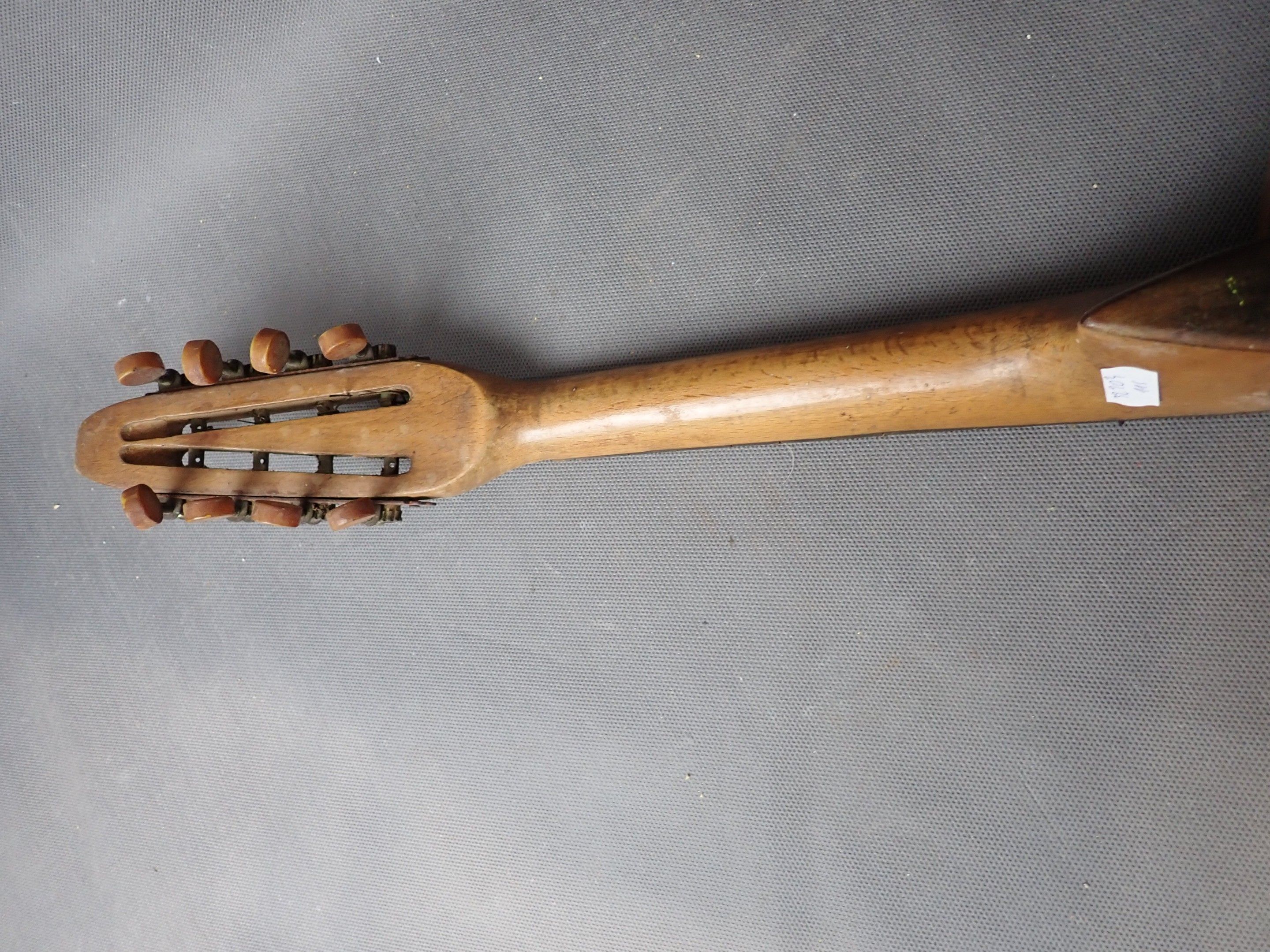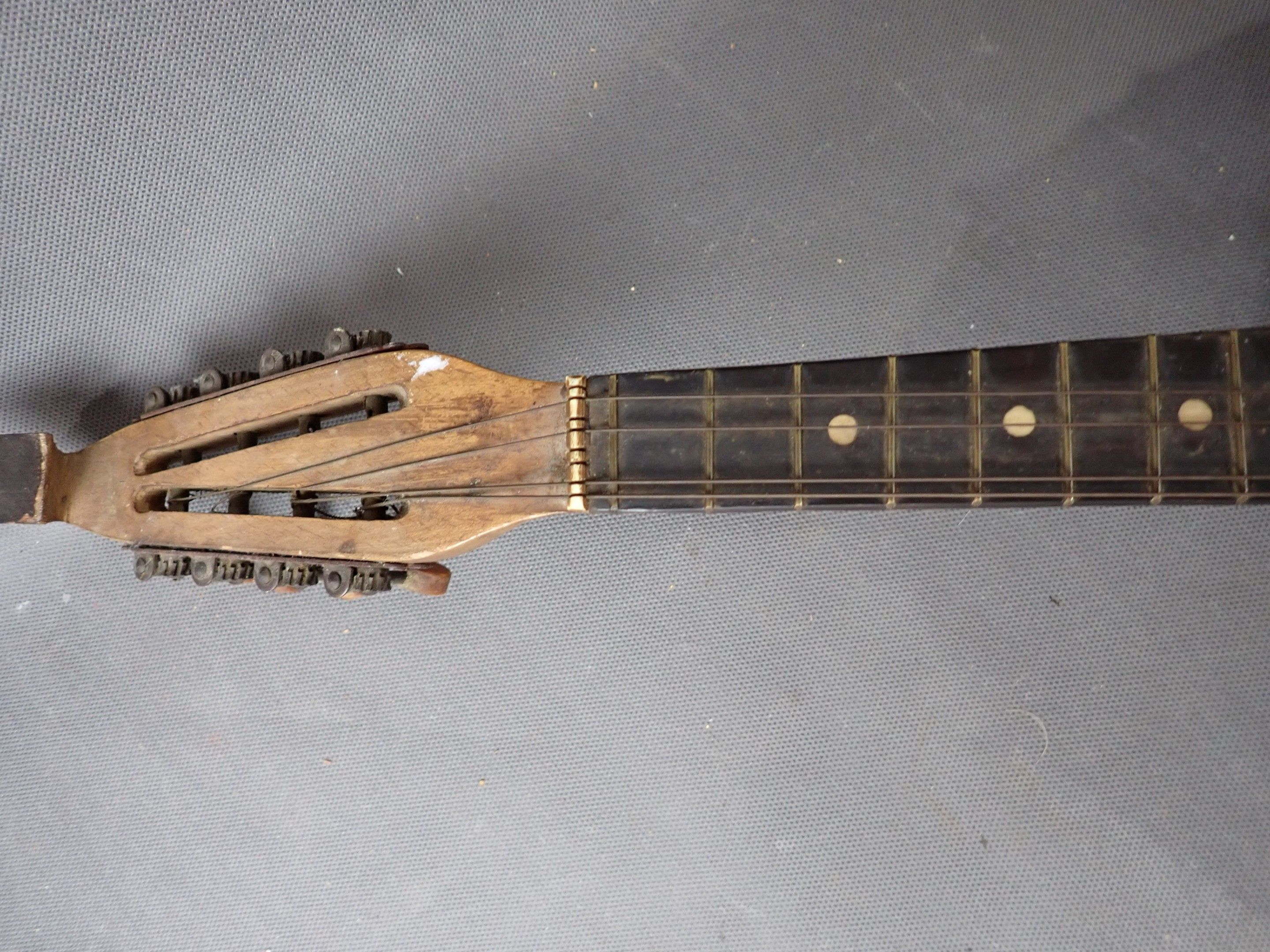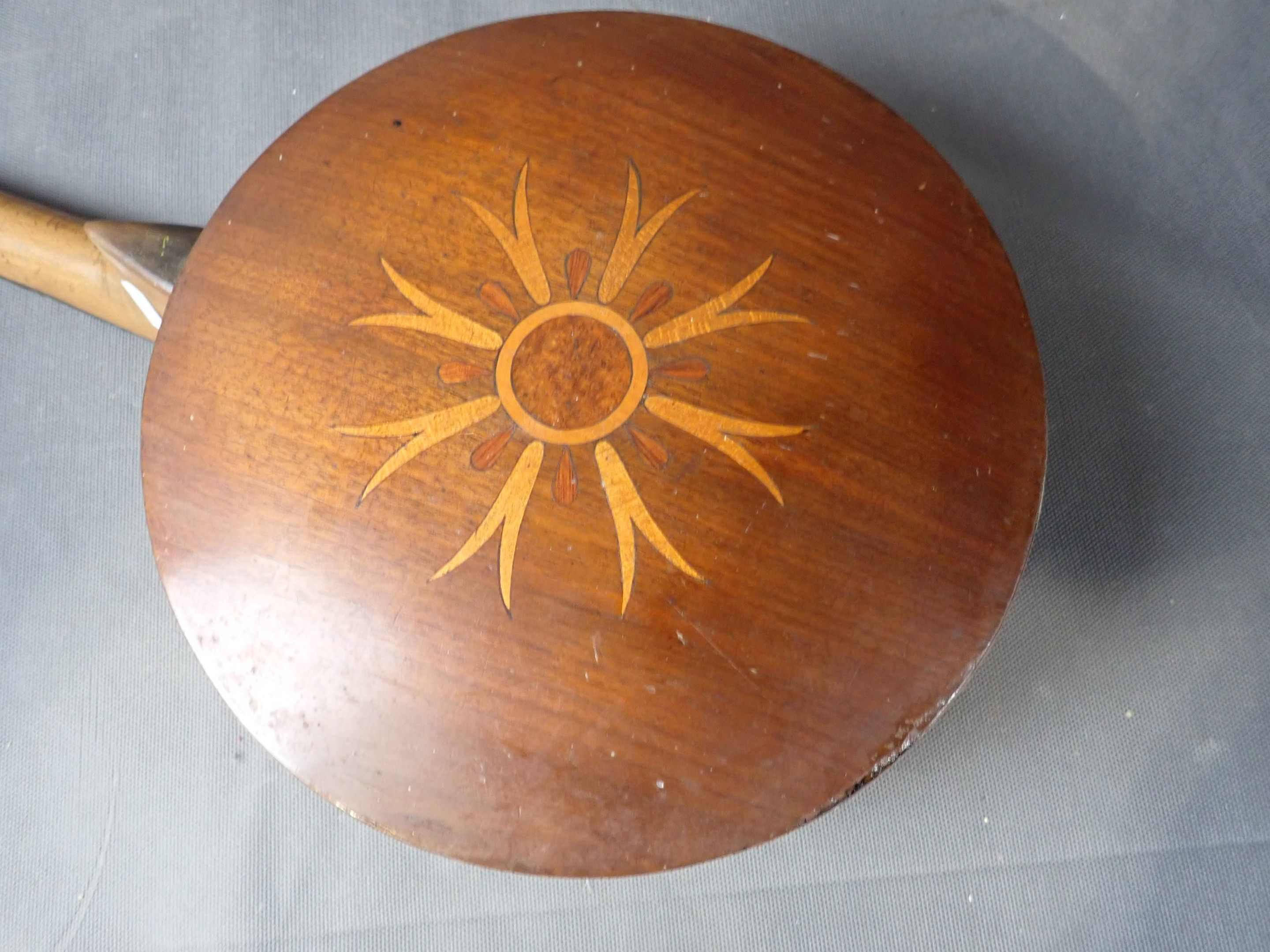 Banjo, L 63cm, inlaid body (strings missing, some oxidation and cracks)