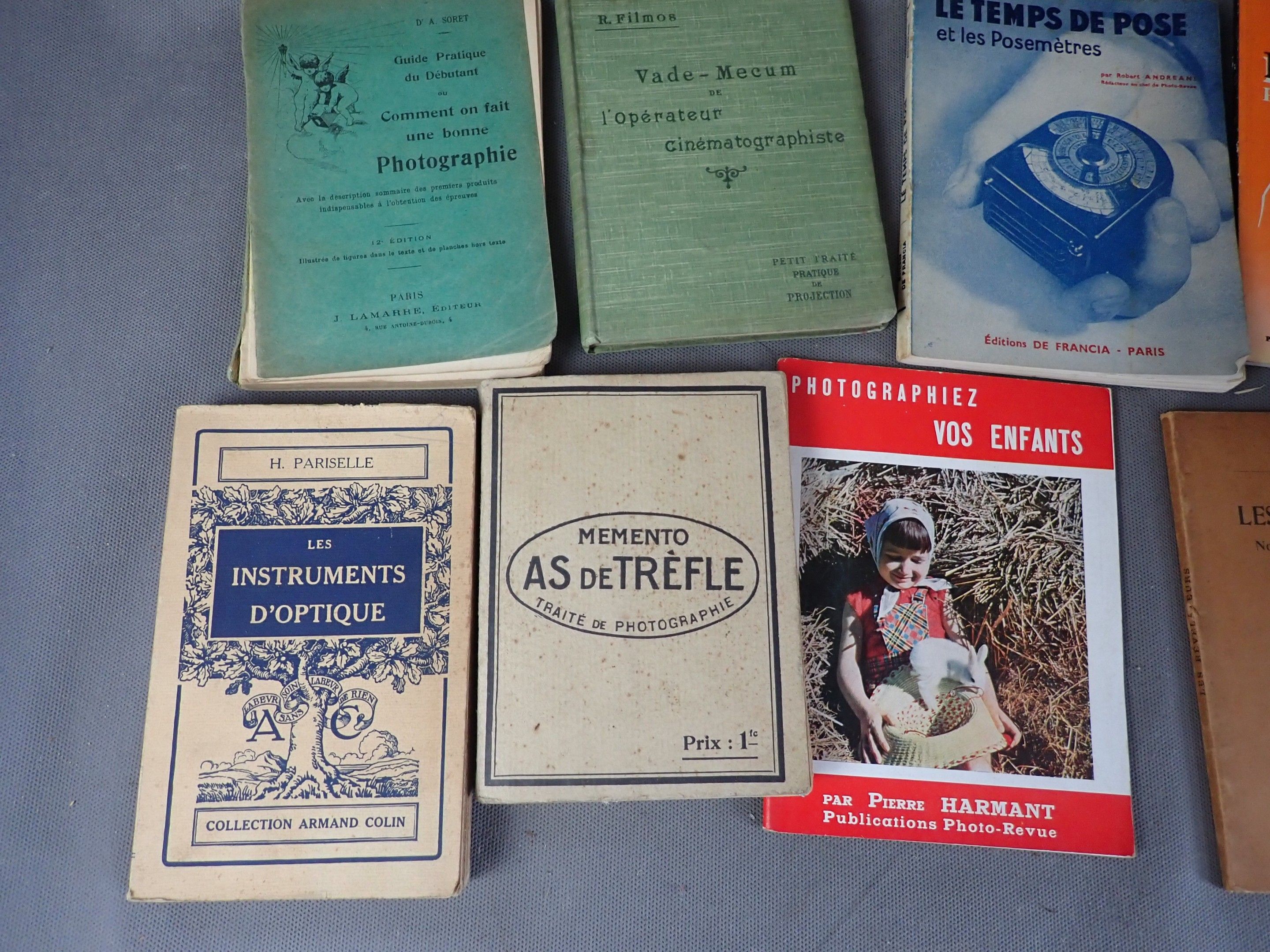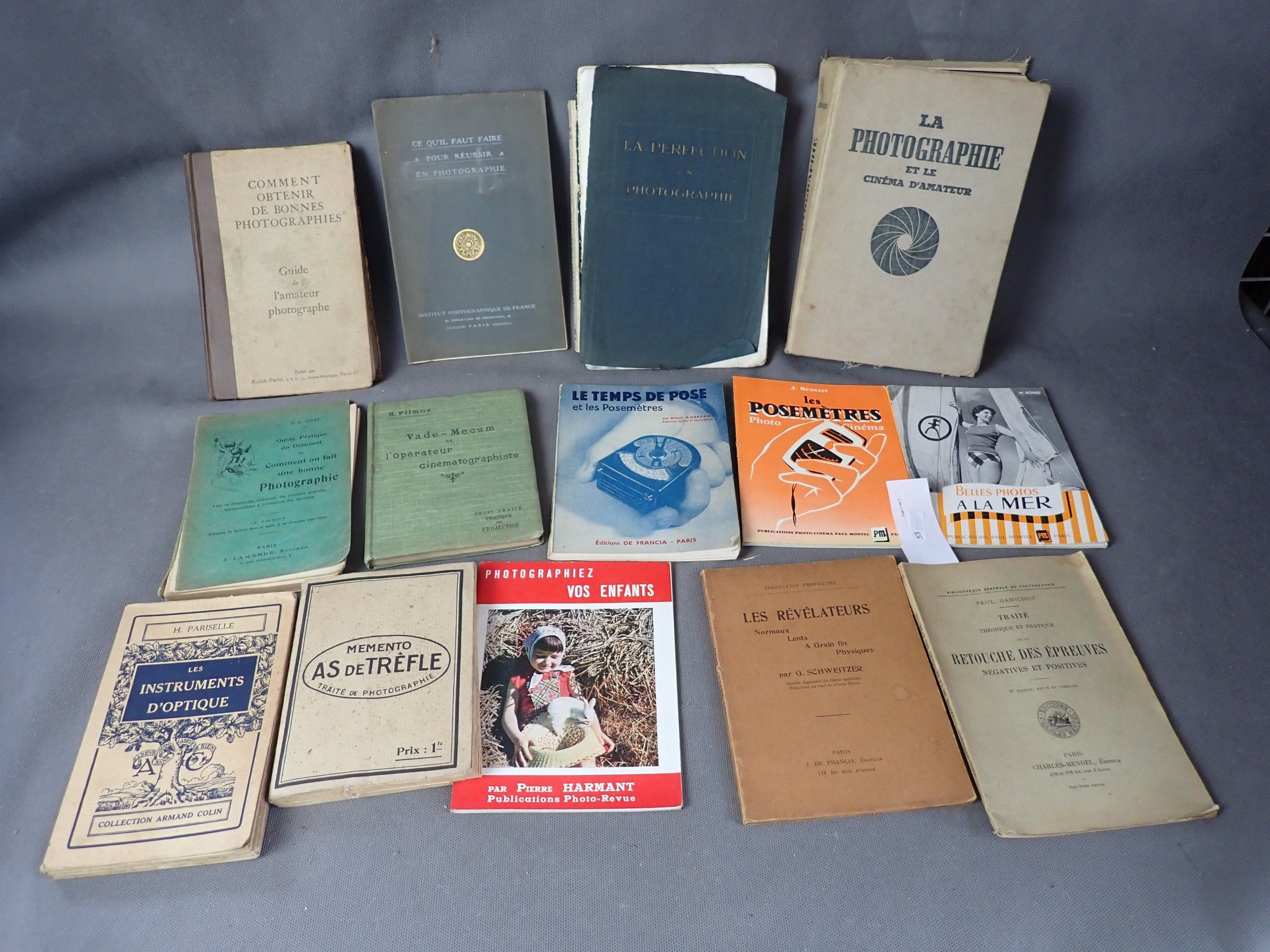 CINEMA/PHOTOGRAPHY Batch of works including Vade-Mecum de l'opérateur cinématographiste, guide pratique du débutant ou comment on fait une bonne photographie, comment obtenir de bonnes photographies guide de l'amateur photographe, traité théorique et pratique de la retouche des épreuves négatives et positives, belles photos à la mer, les posemètres photo cinéma, exposure time and light meters, optical instruments, momento as de trèfle treatise on photography, photograph your children, developers, what you need to do to succeed and in photography, photography and amateur cinema, small format practice and perfection in photography (various states, some damaged, not collated)