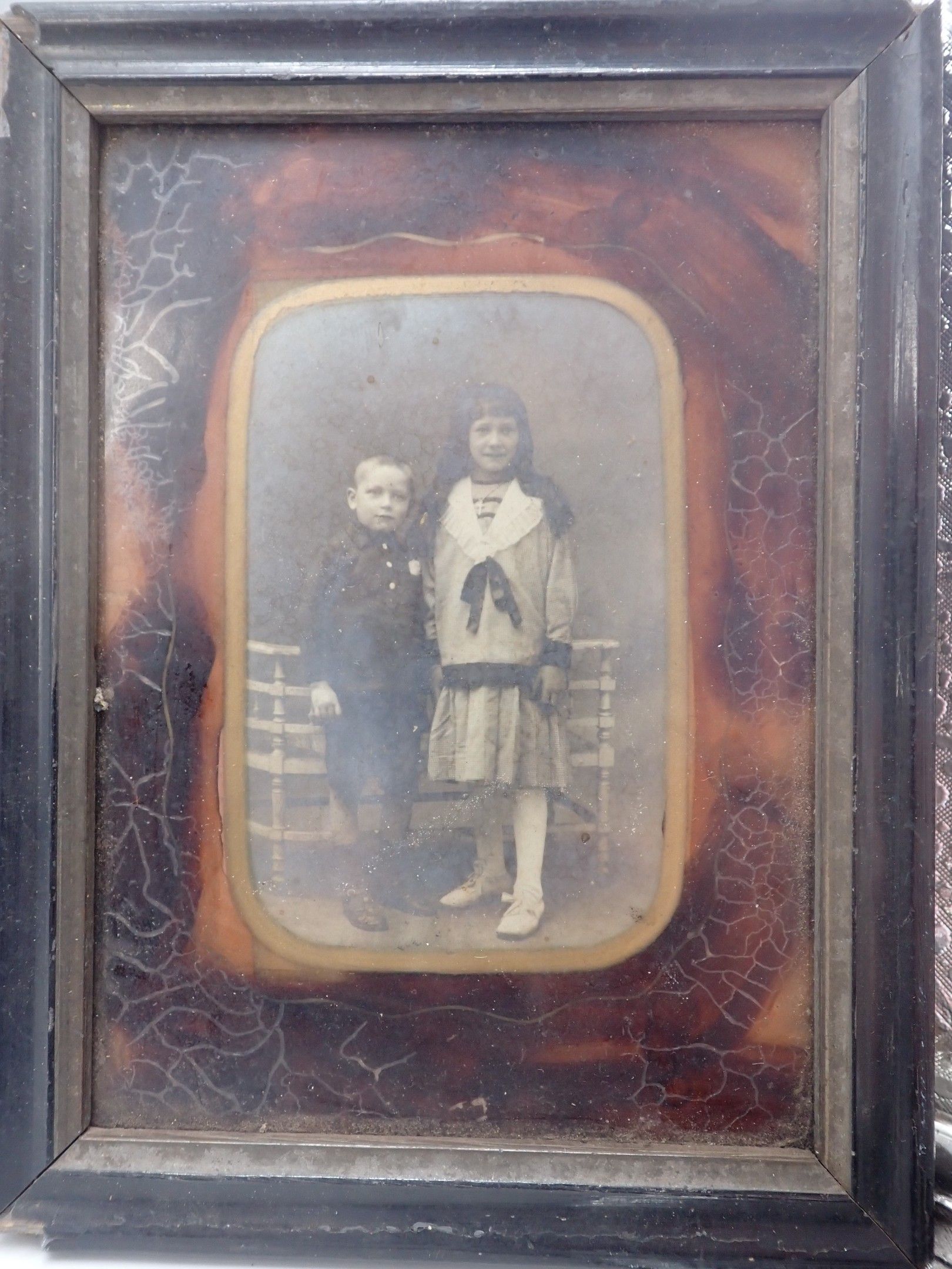 Daguerreotype, brother and sister, 8.8x5.6 cm on view (sold as is)