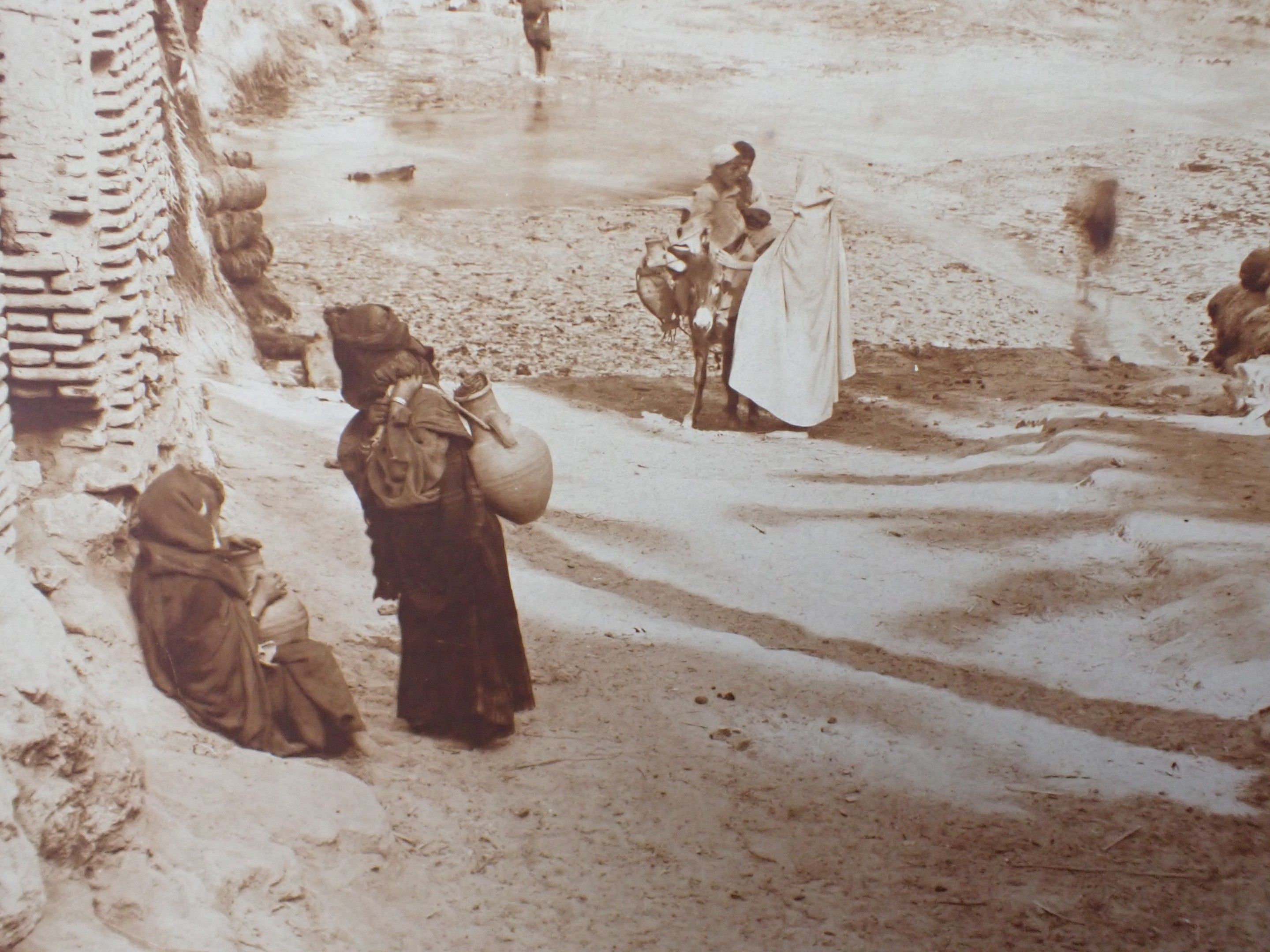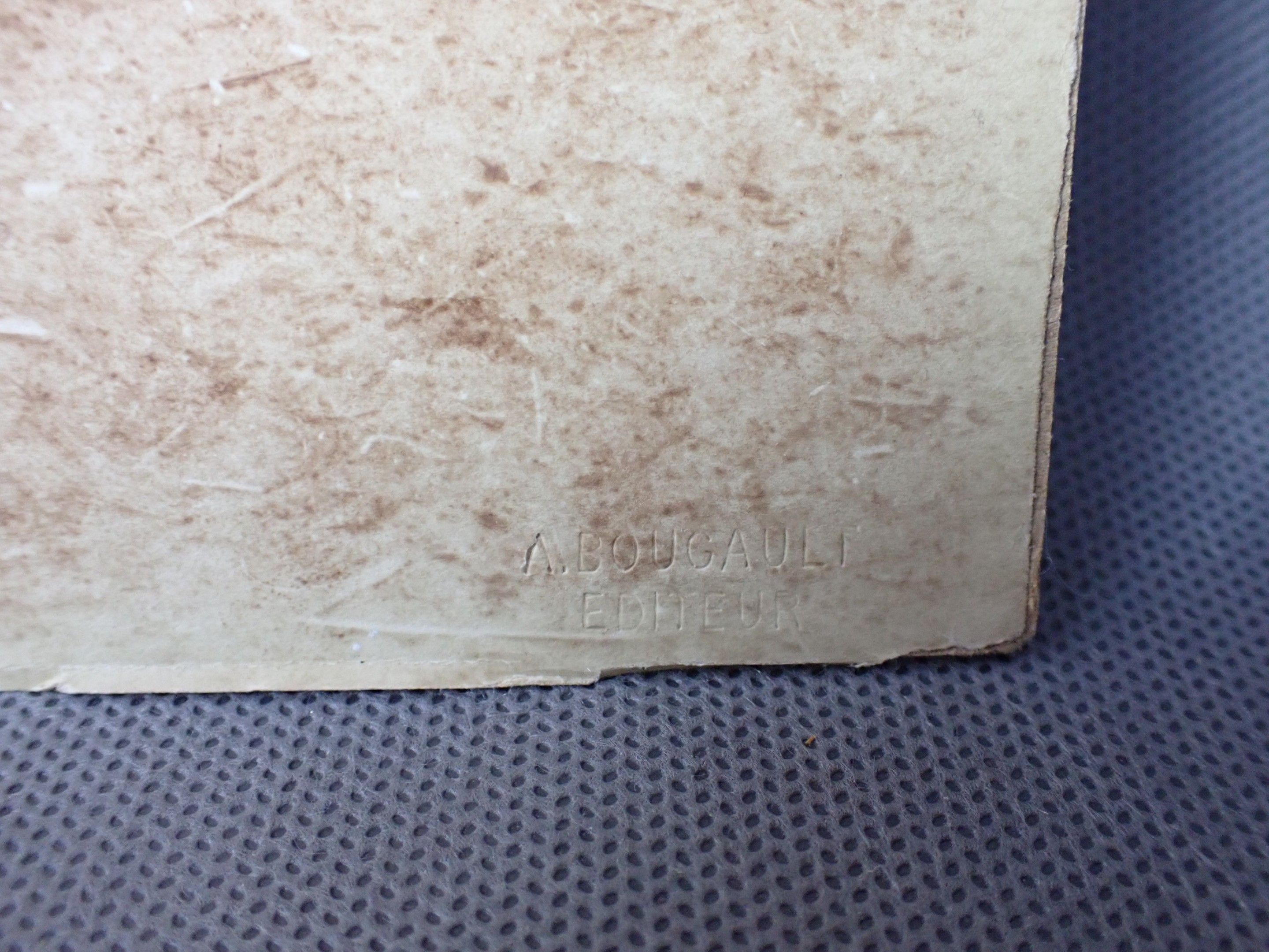 A photograph, pasted on cardboard, of an animated oriental landscape, with the stamp "A. BOUGAULT EDITEUR" 57 x 23 cm