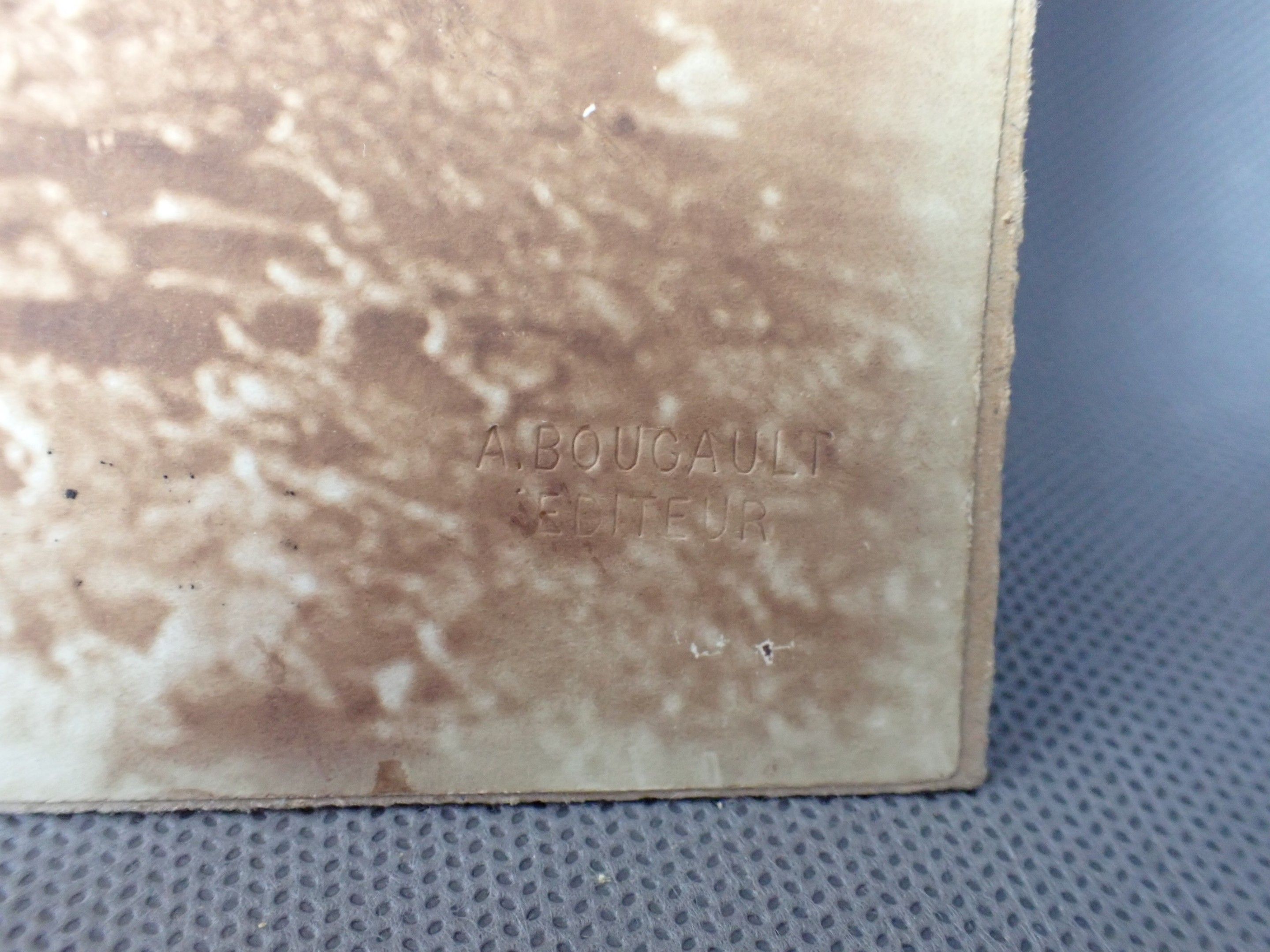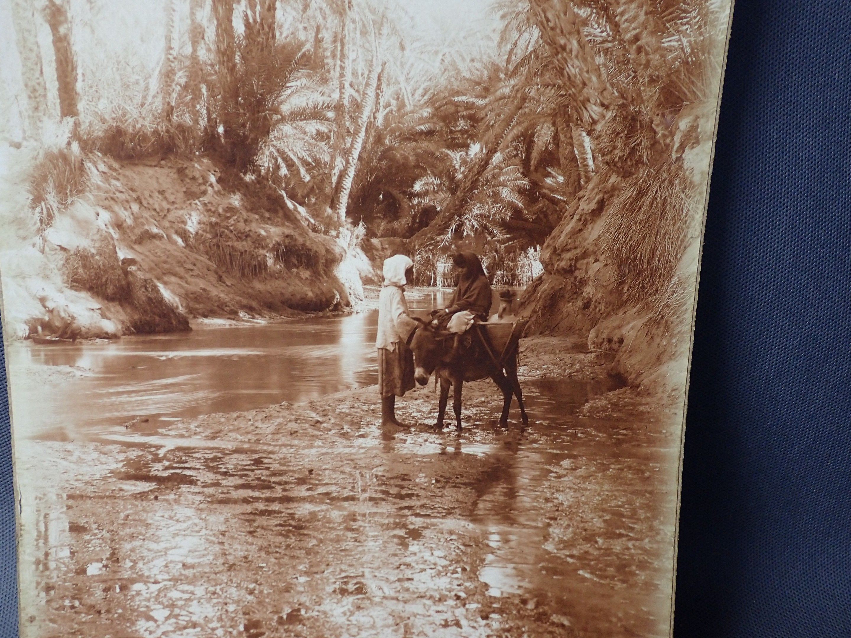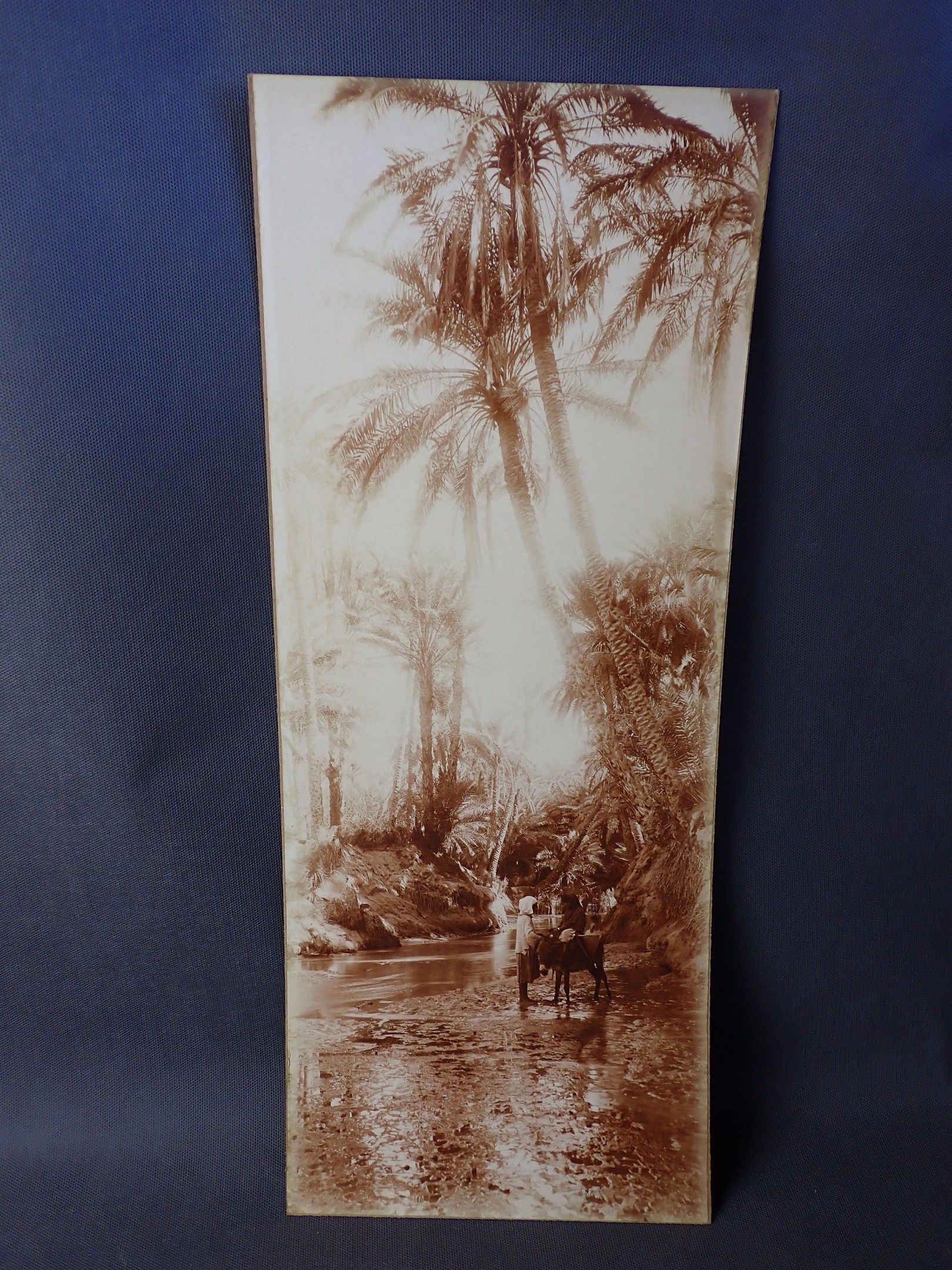 A photograph, pasted on cardboard, of an animated oriental landscape with the stamp "A. BOUGAULT EDITEUR" 57 x 23cm