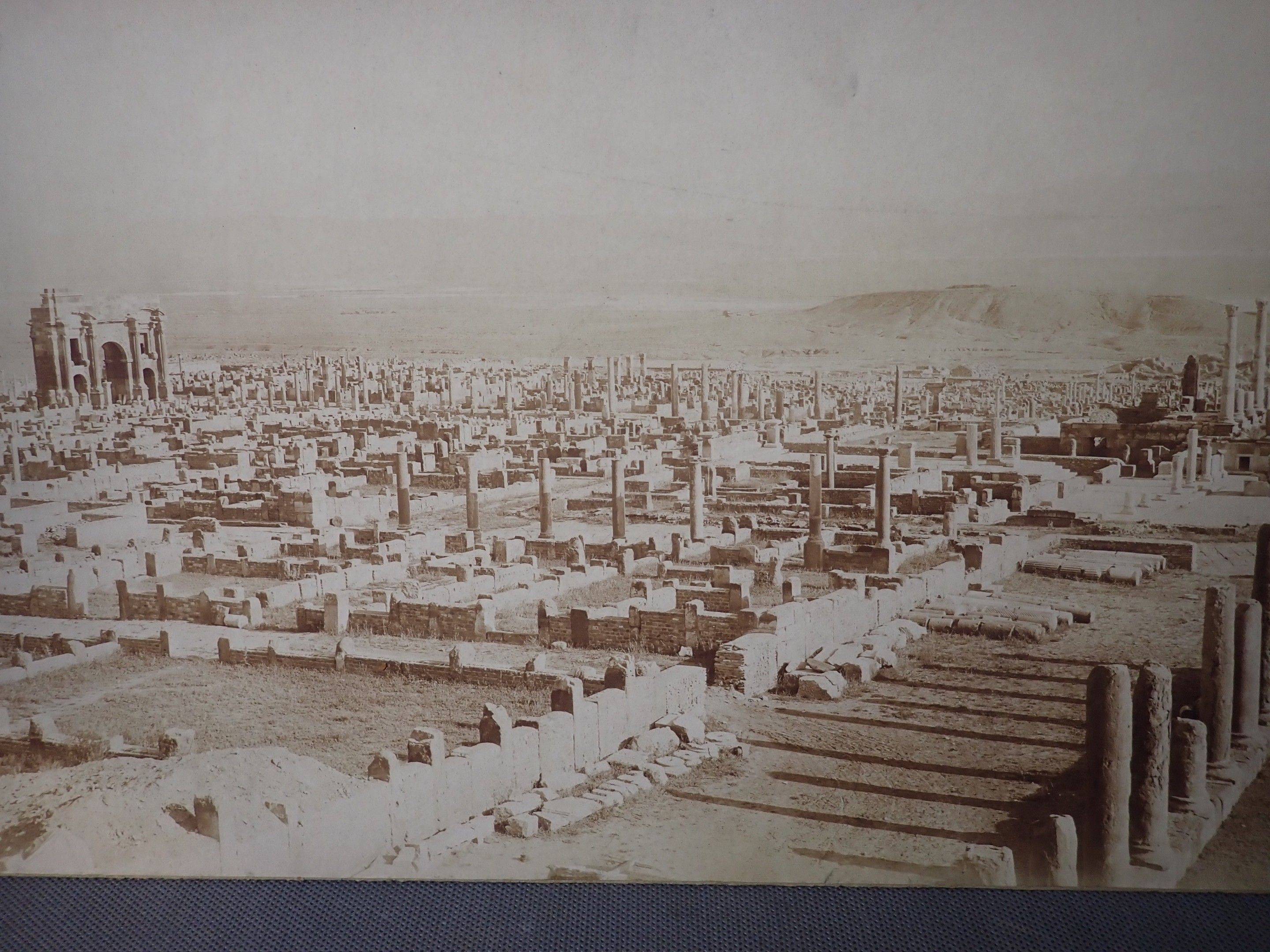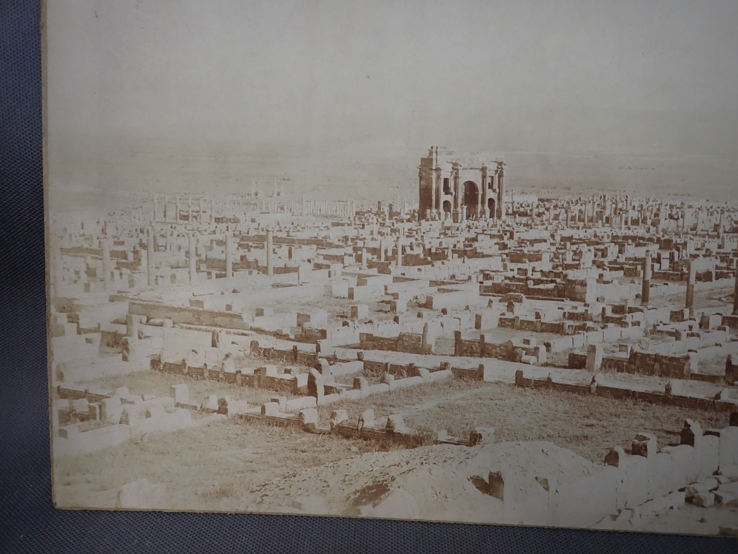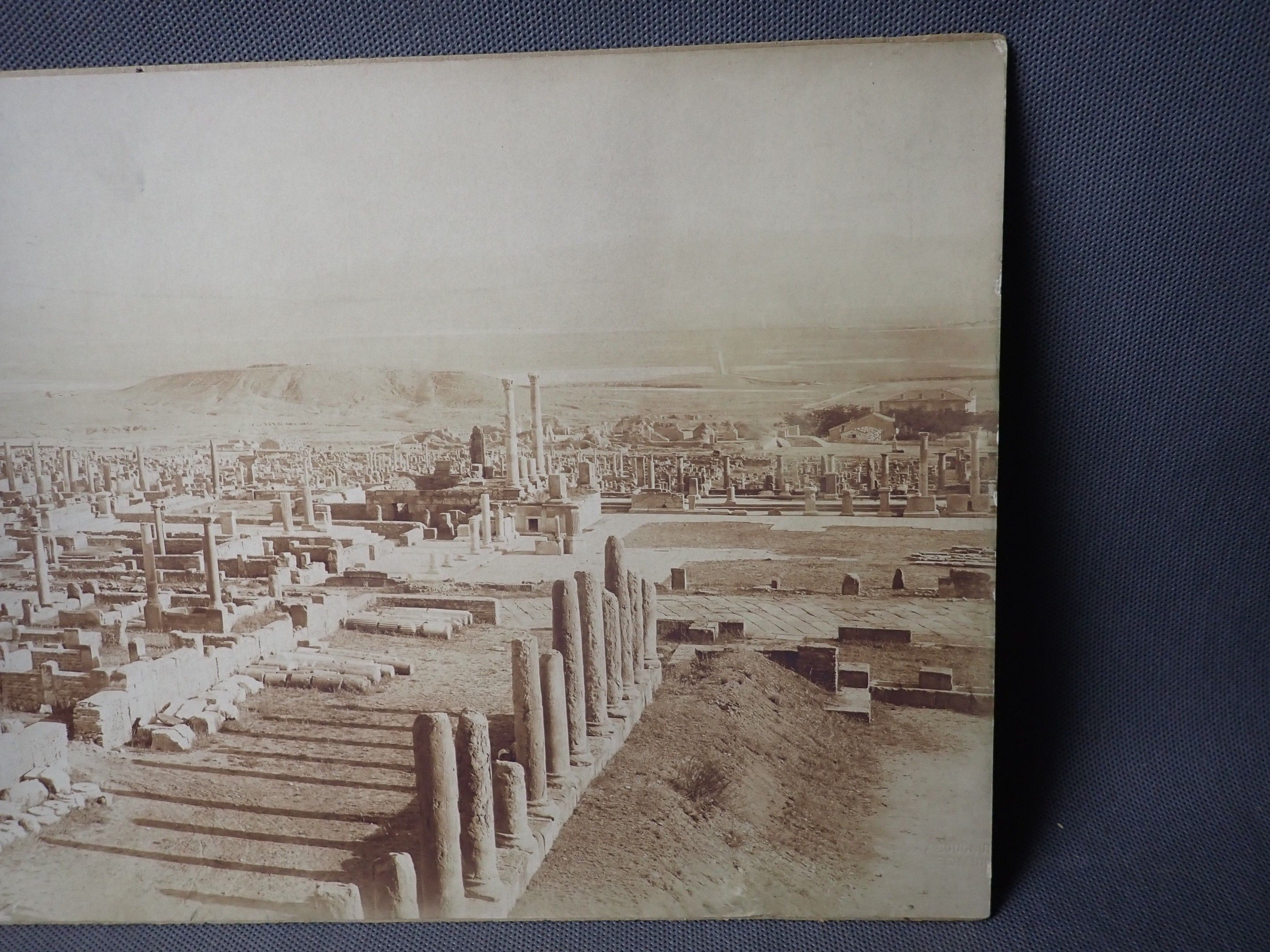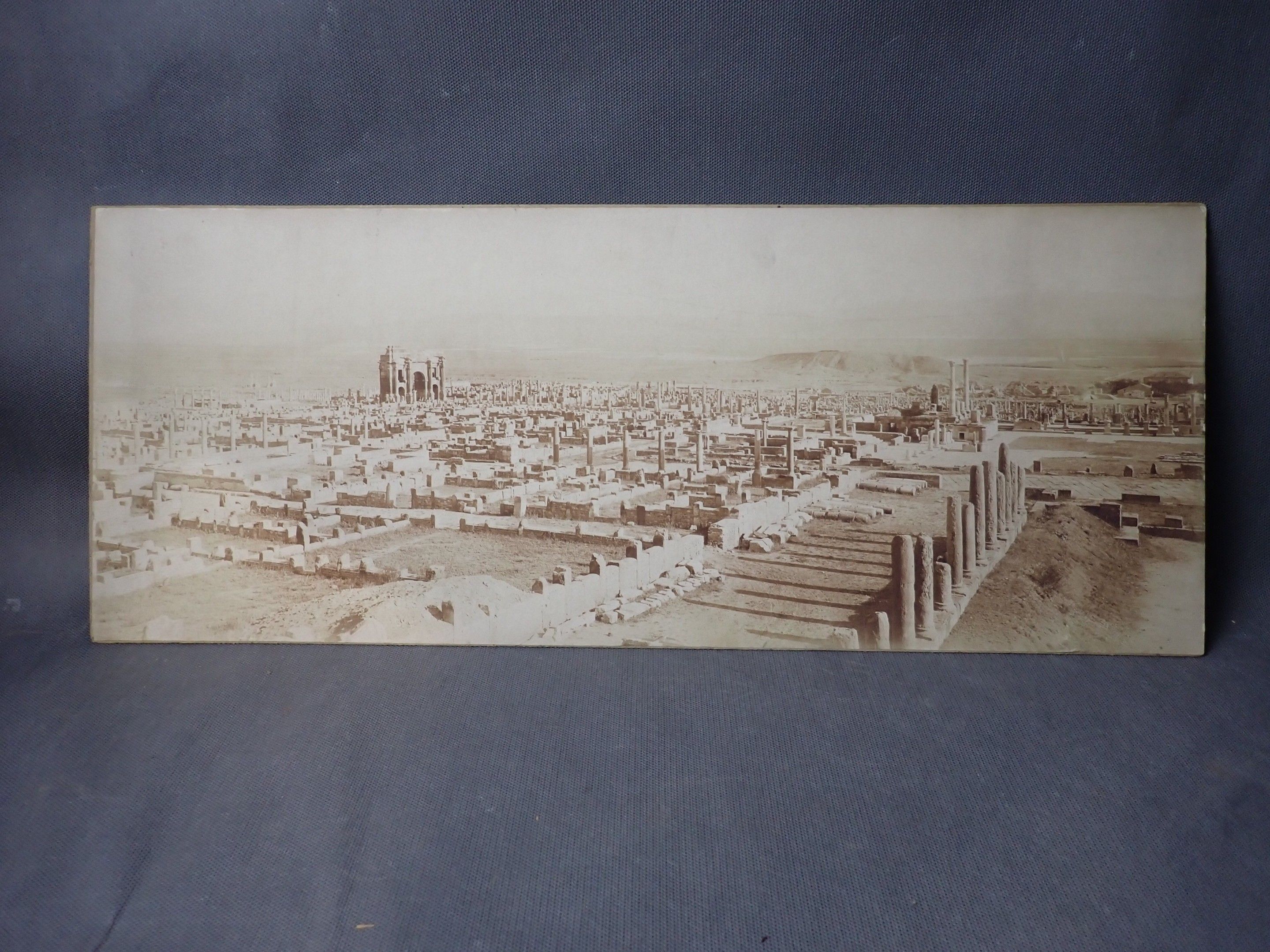 A photograph, pasted on cardboard, of oriental ruins with the stamp "A. BOUGAULT EDITEUR" ( Size : 23 x 57 cm )