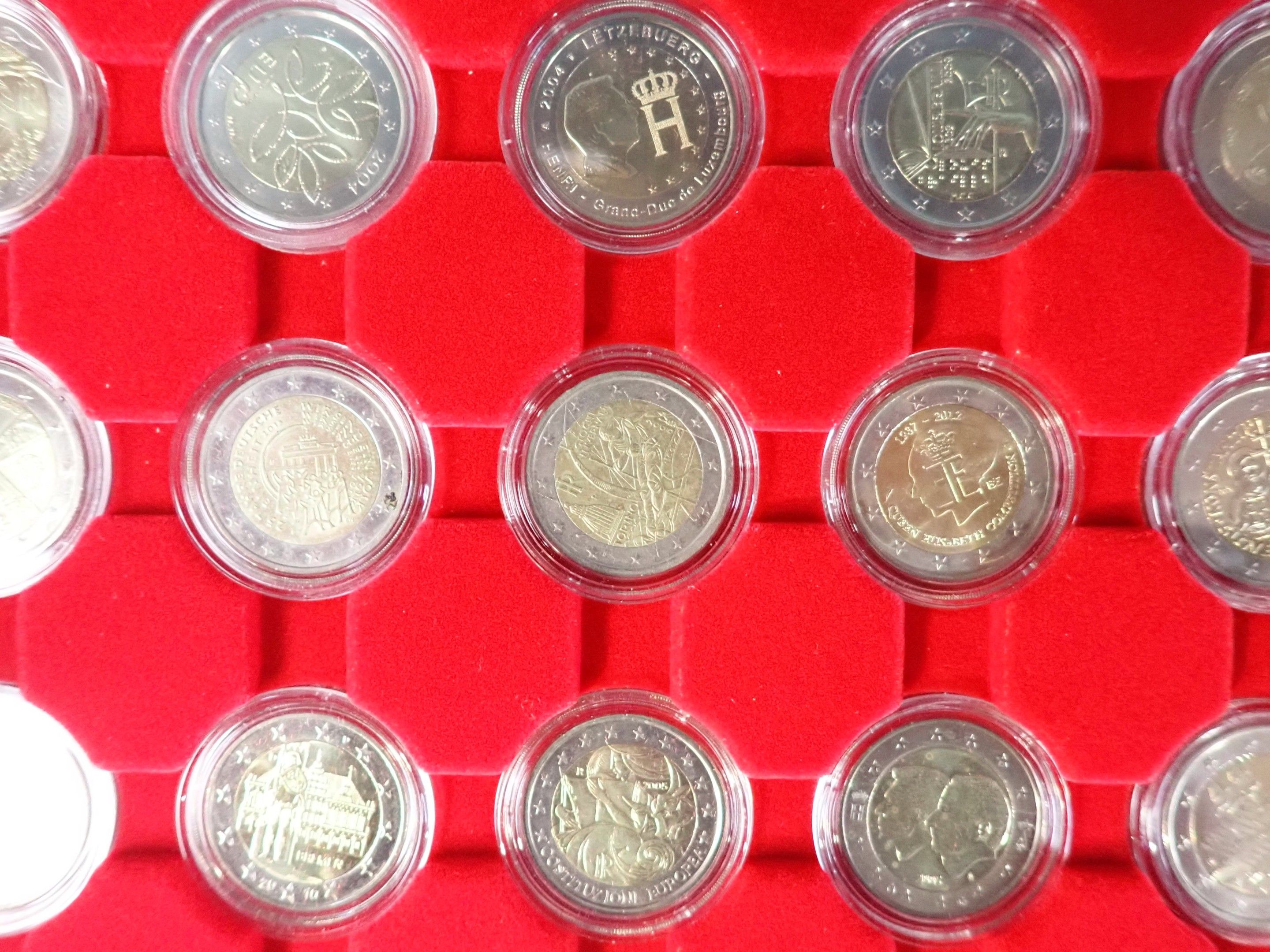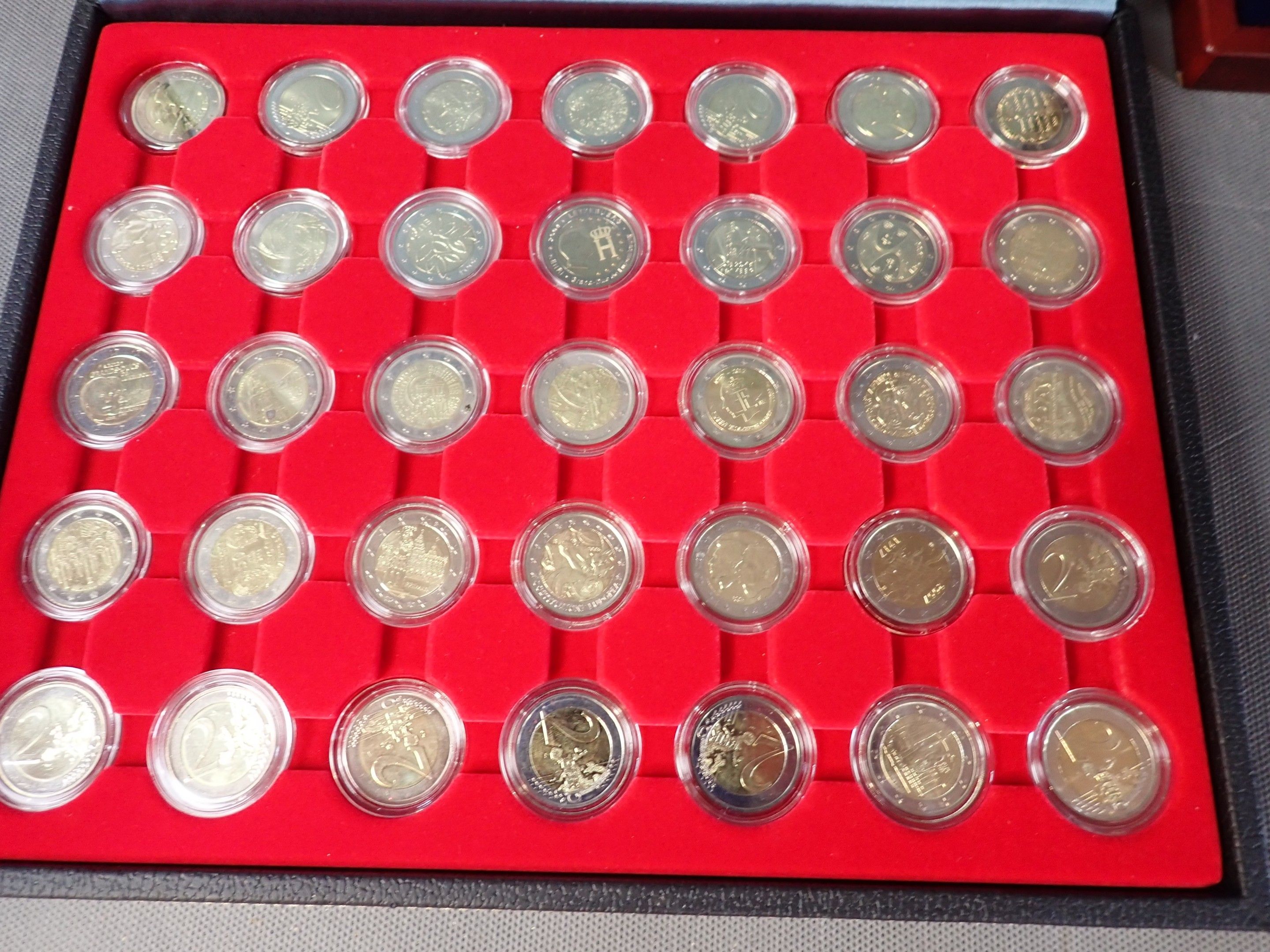 Box containing 35 2-euro coins.