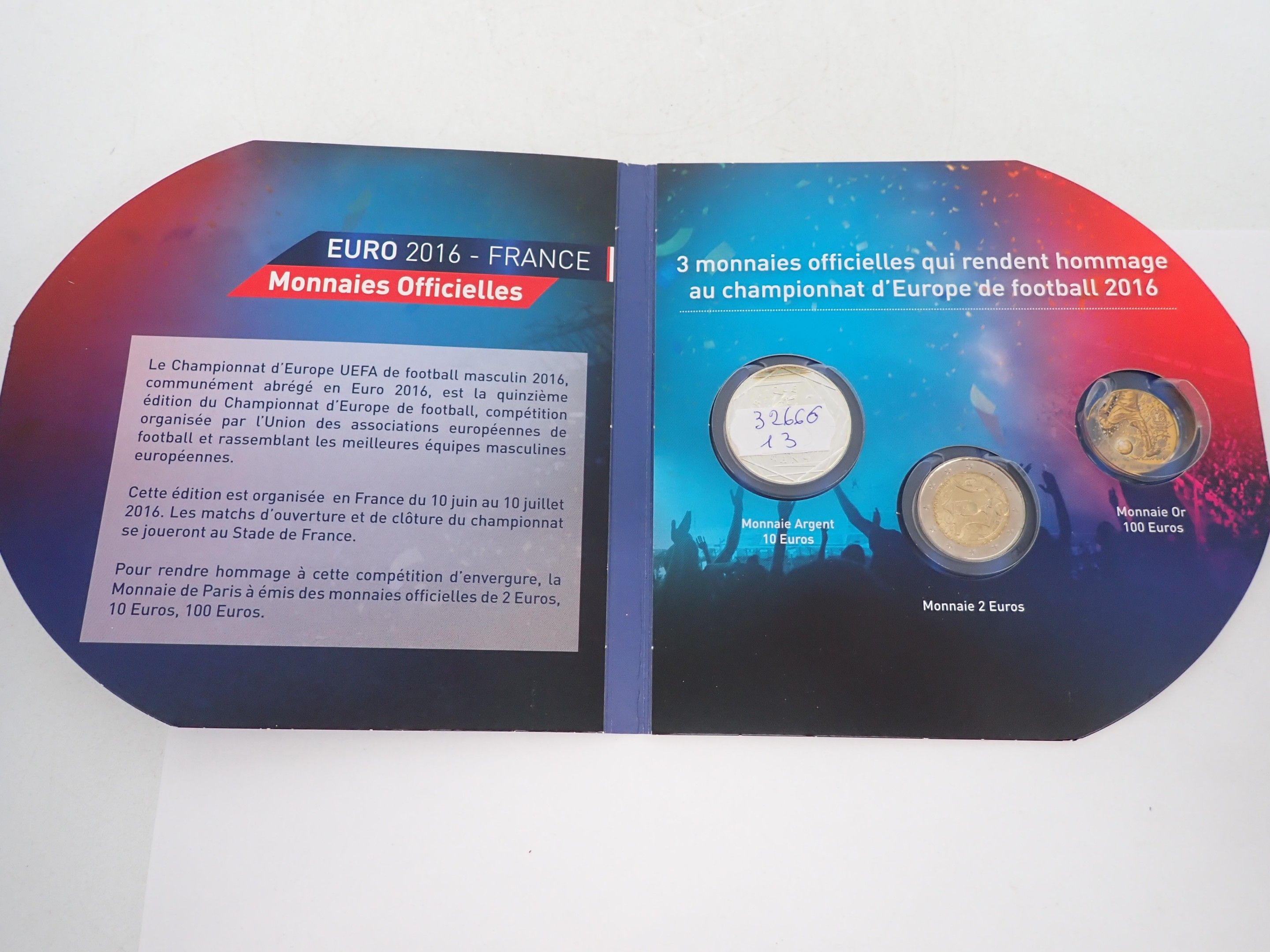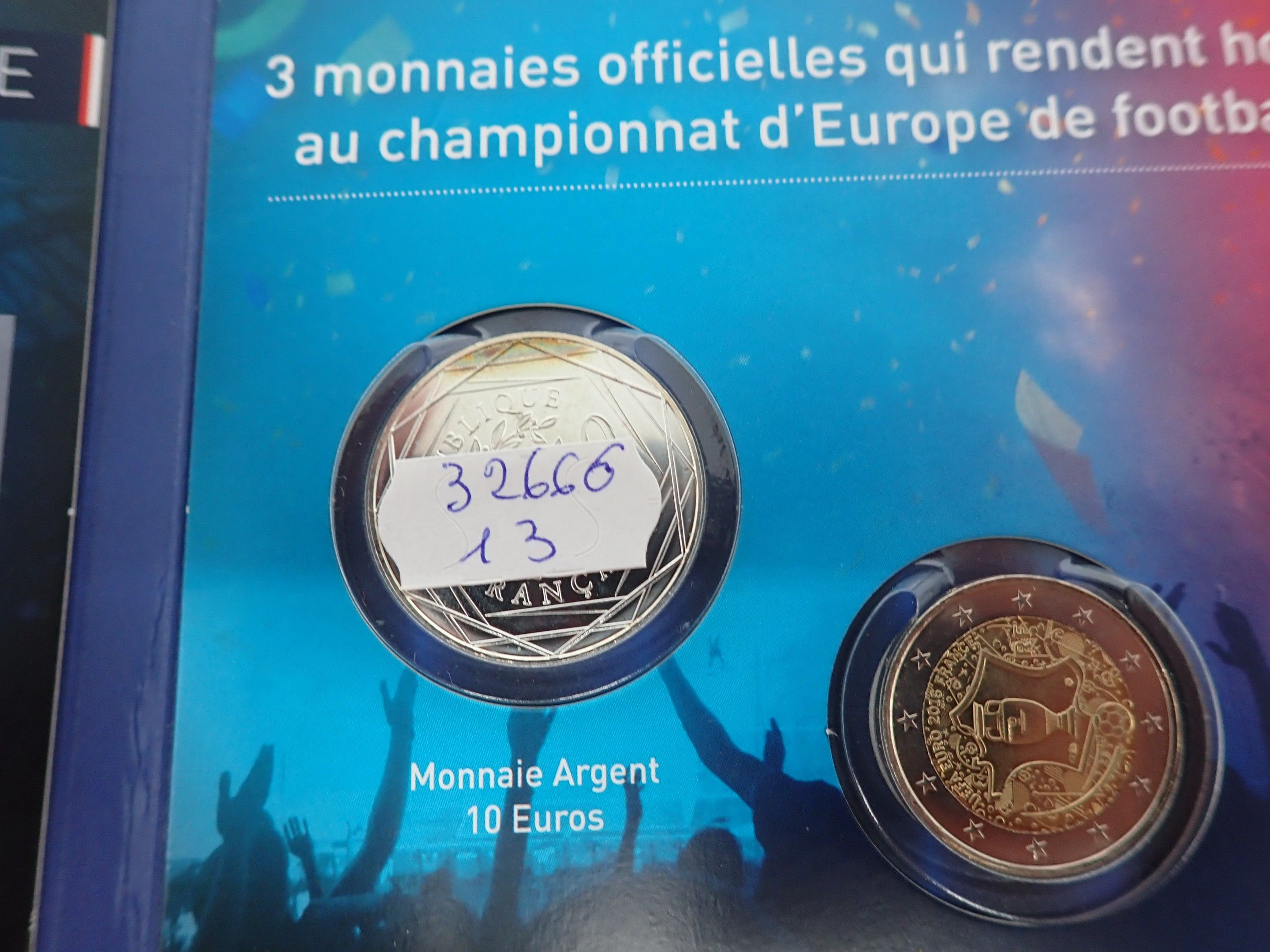 EURO 2016 boxed set, 1 €2 coin and 1 €10 silver coin
