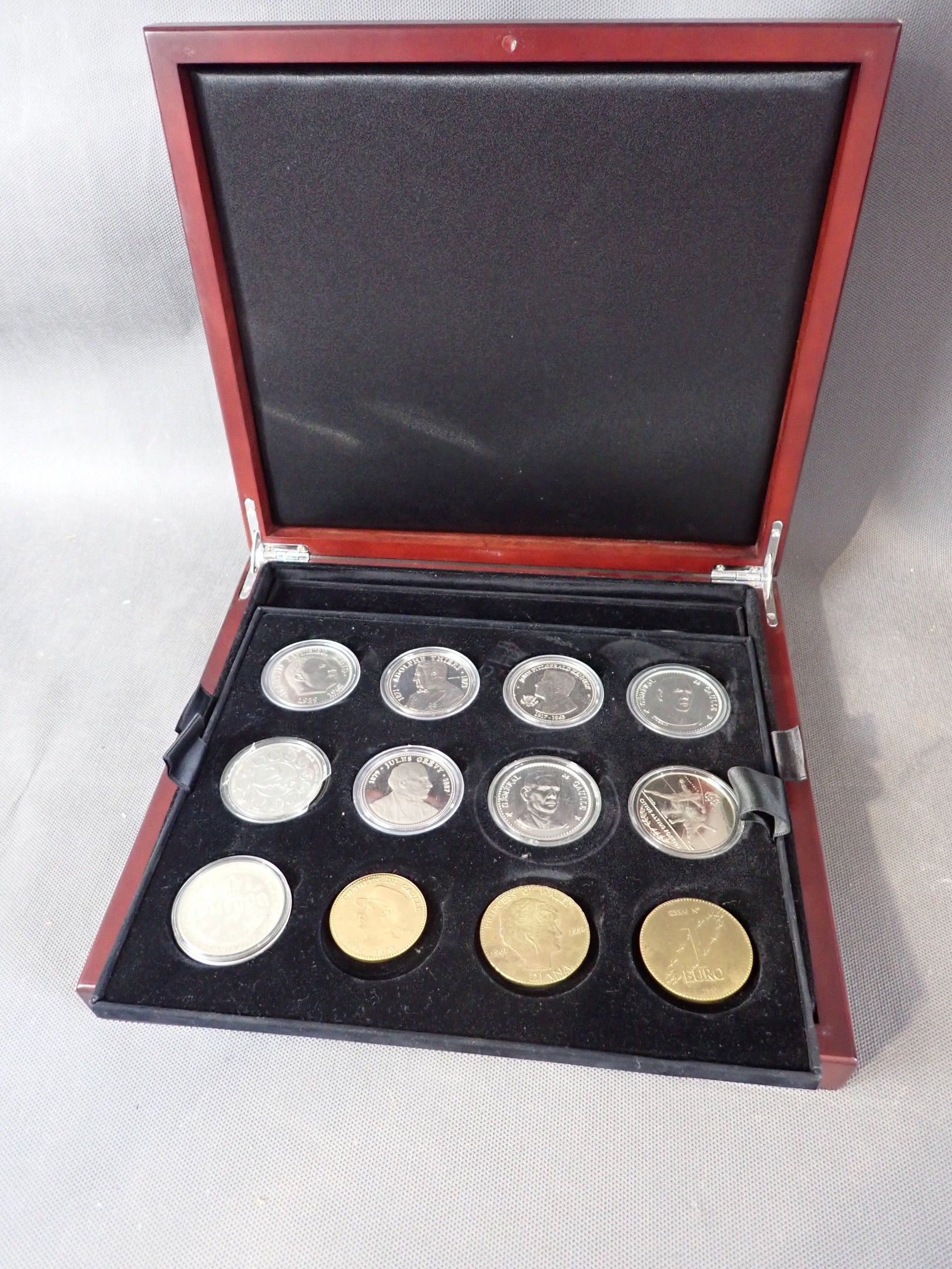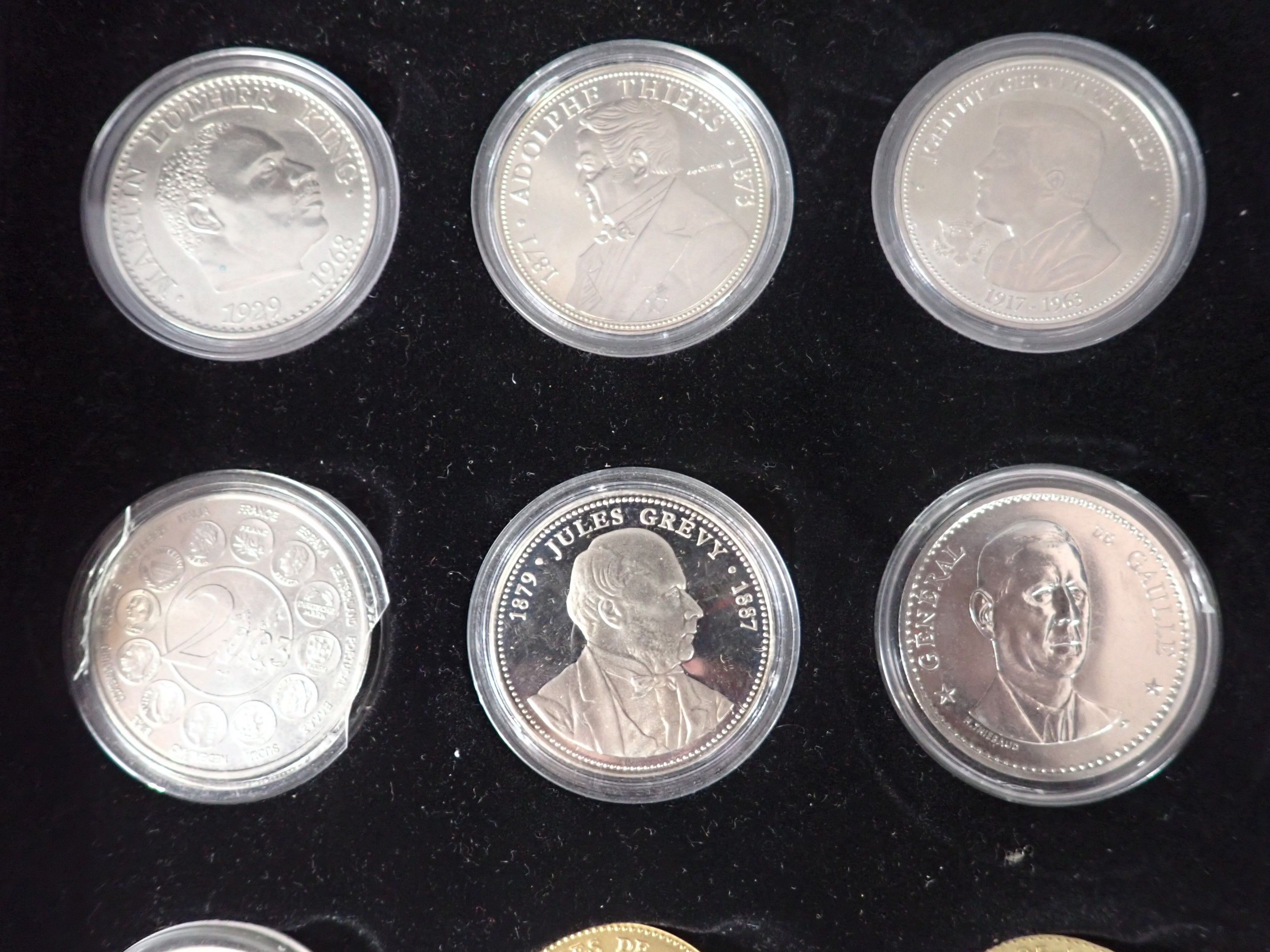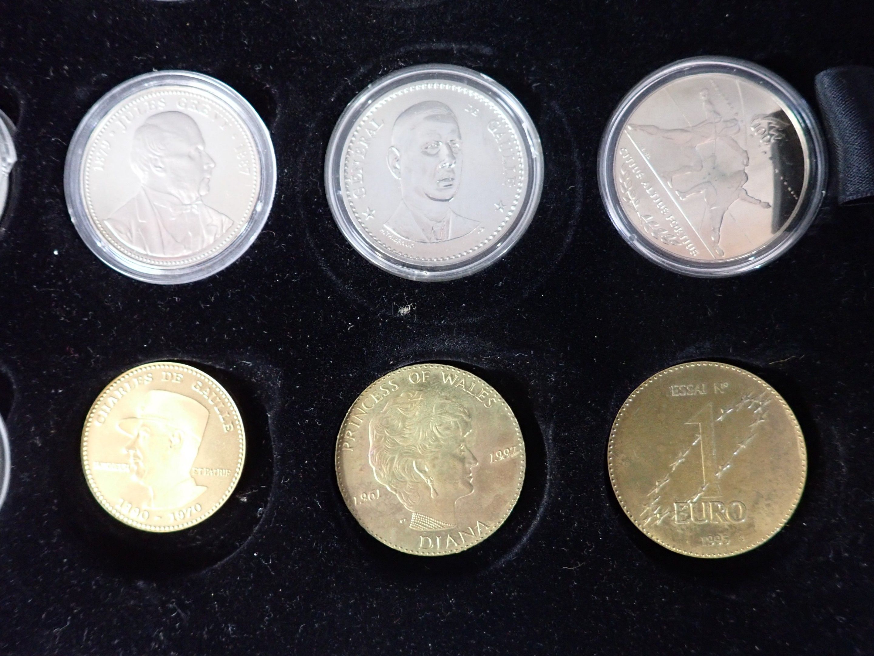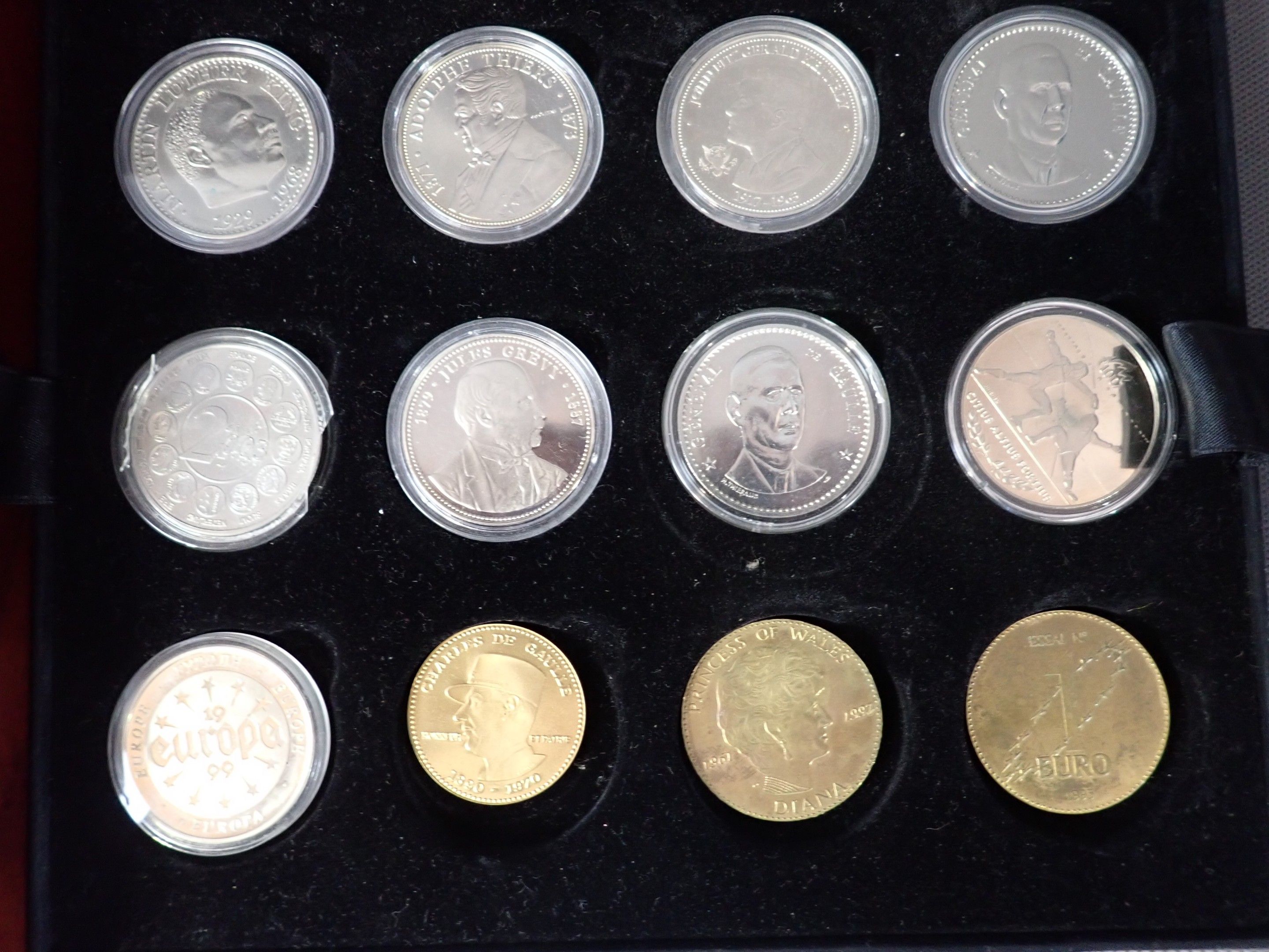 Box of 35 medals on 3 trays, base metals