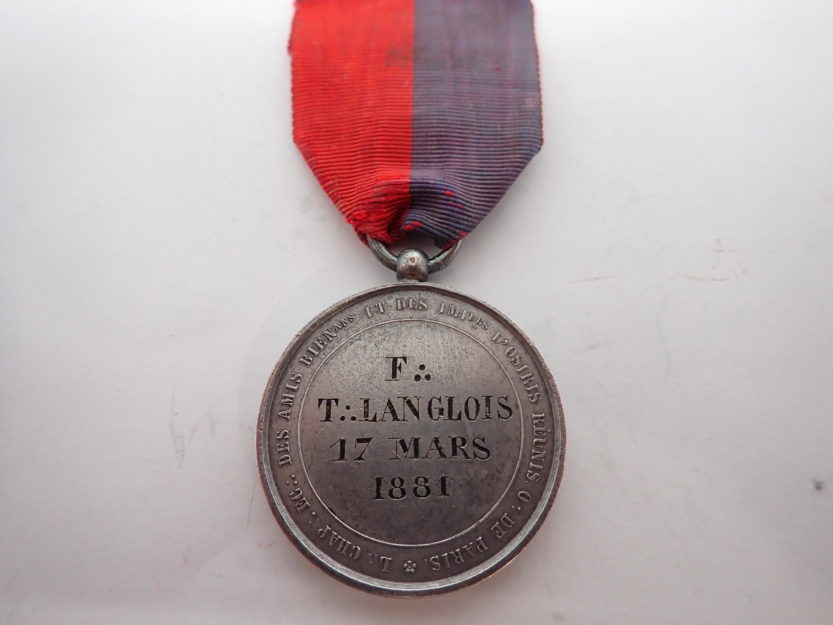 Freemasonry, silver plated copper; orient de paris, loge écossaise des amis...d'osiris 1881