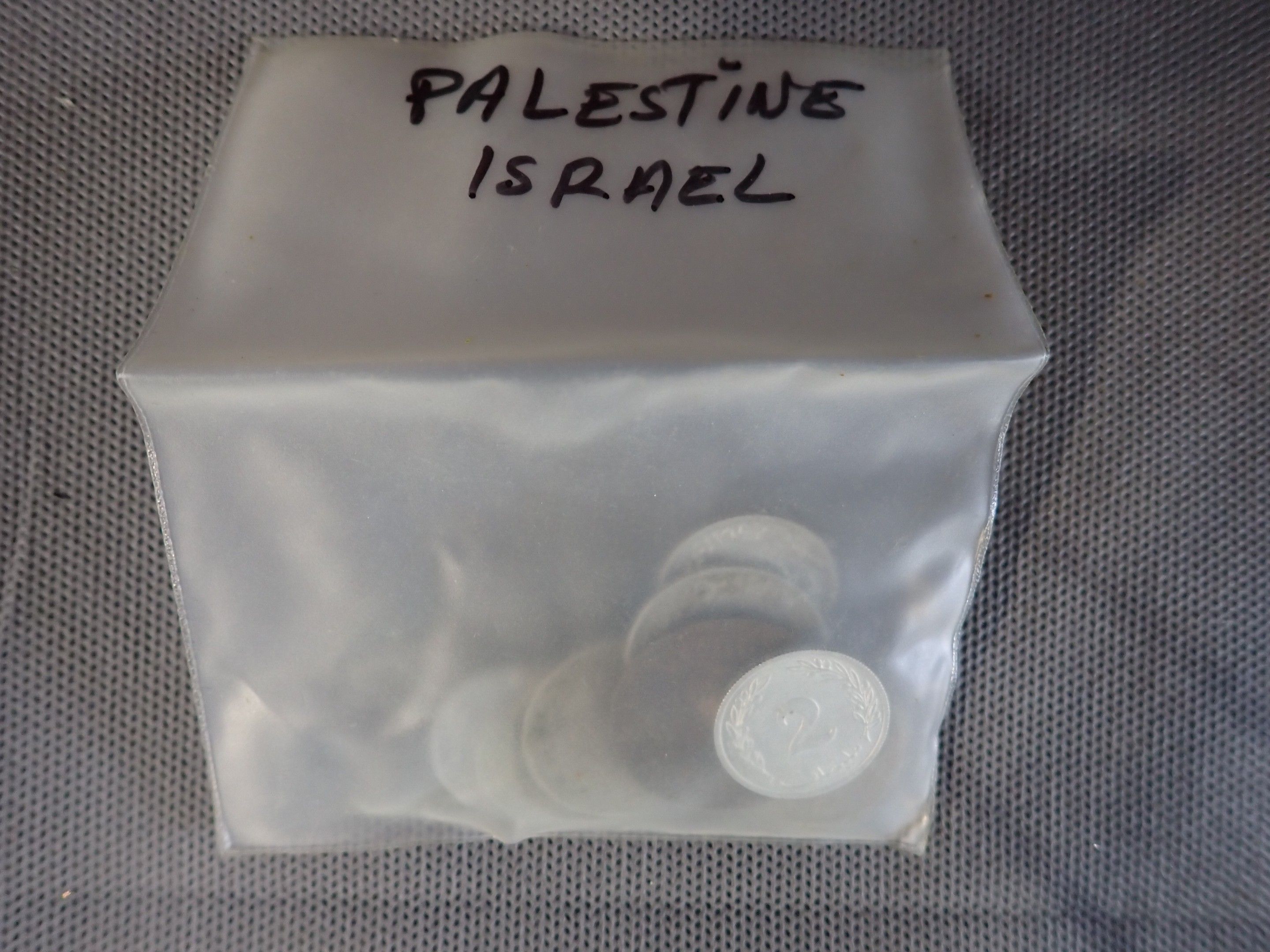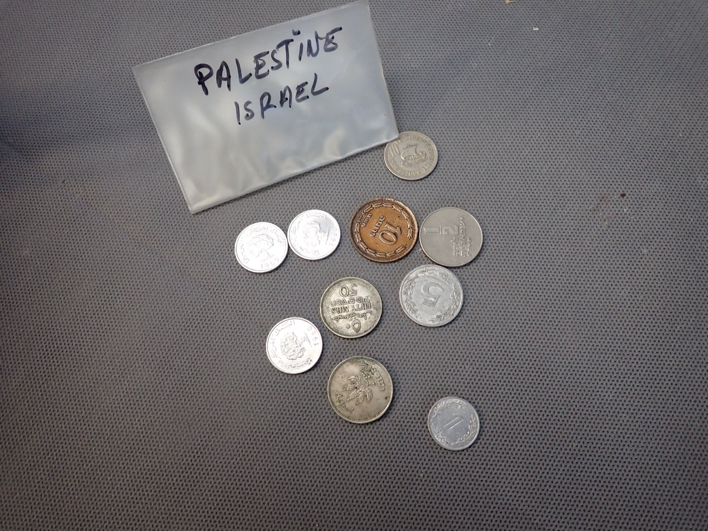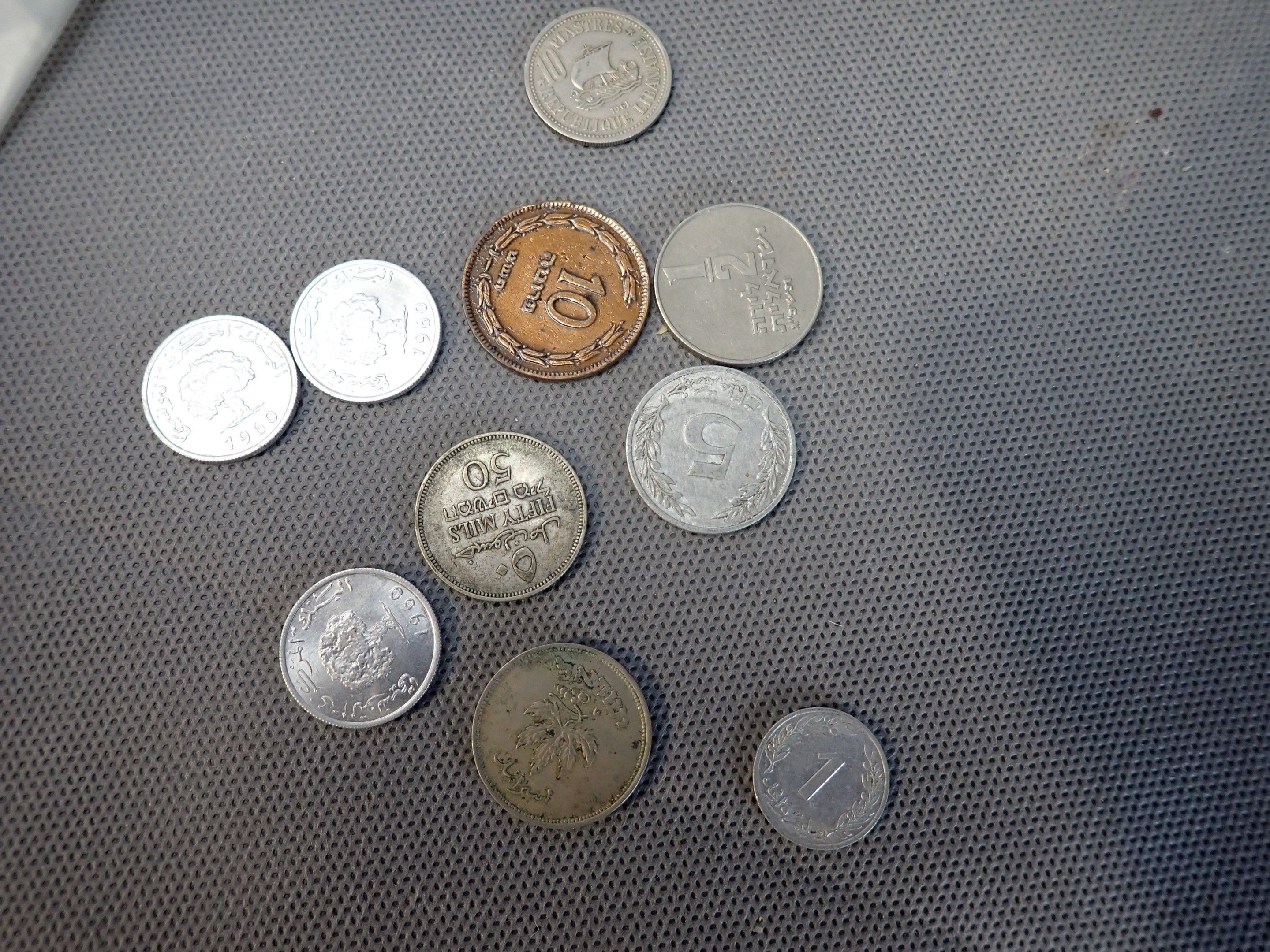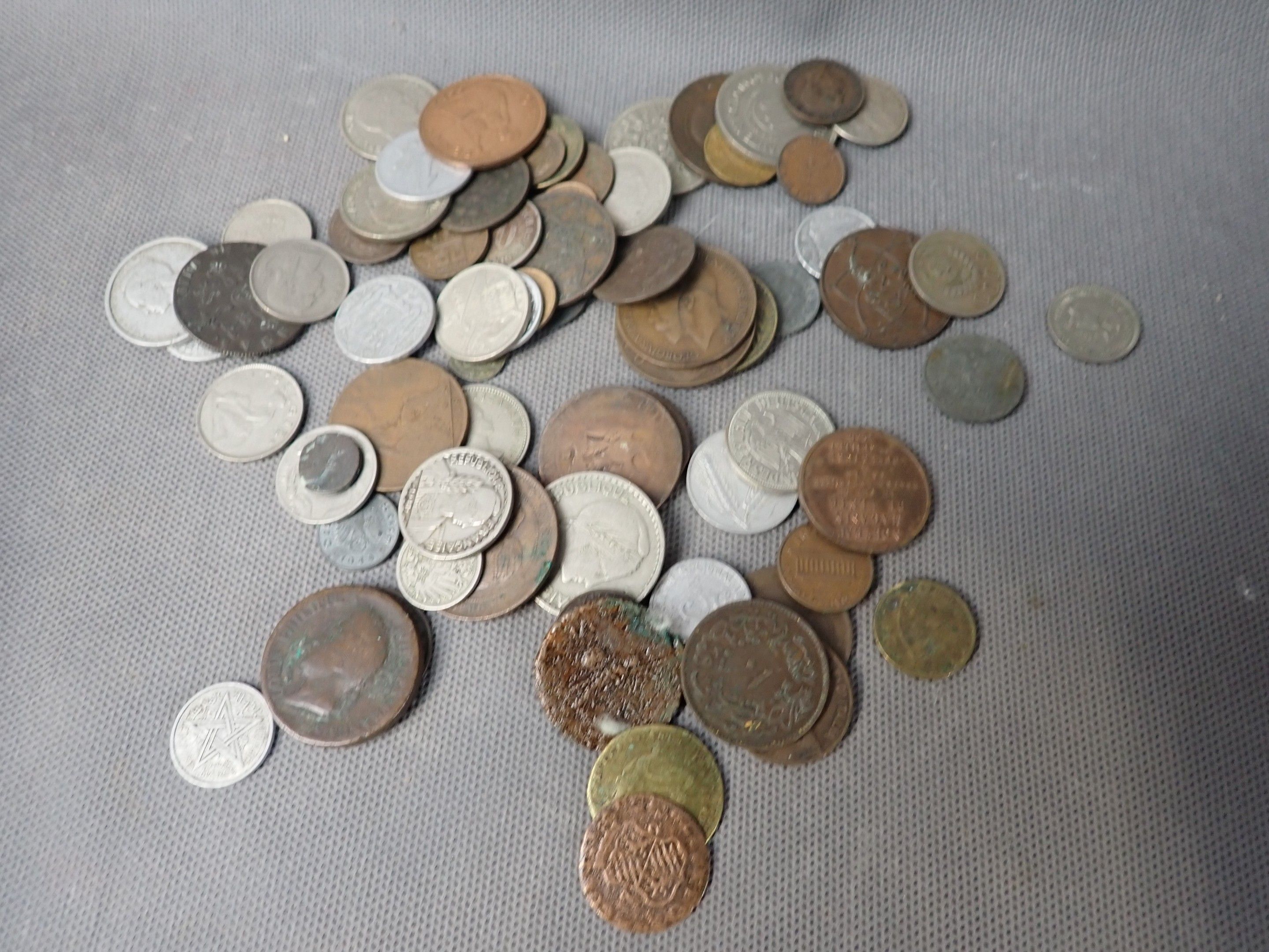 A metal case containing a bulk of foreign coins