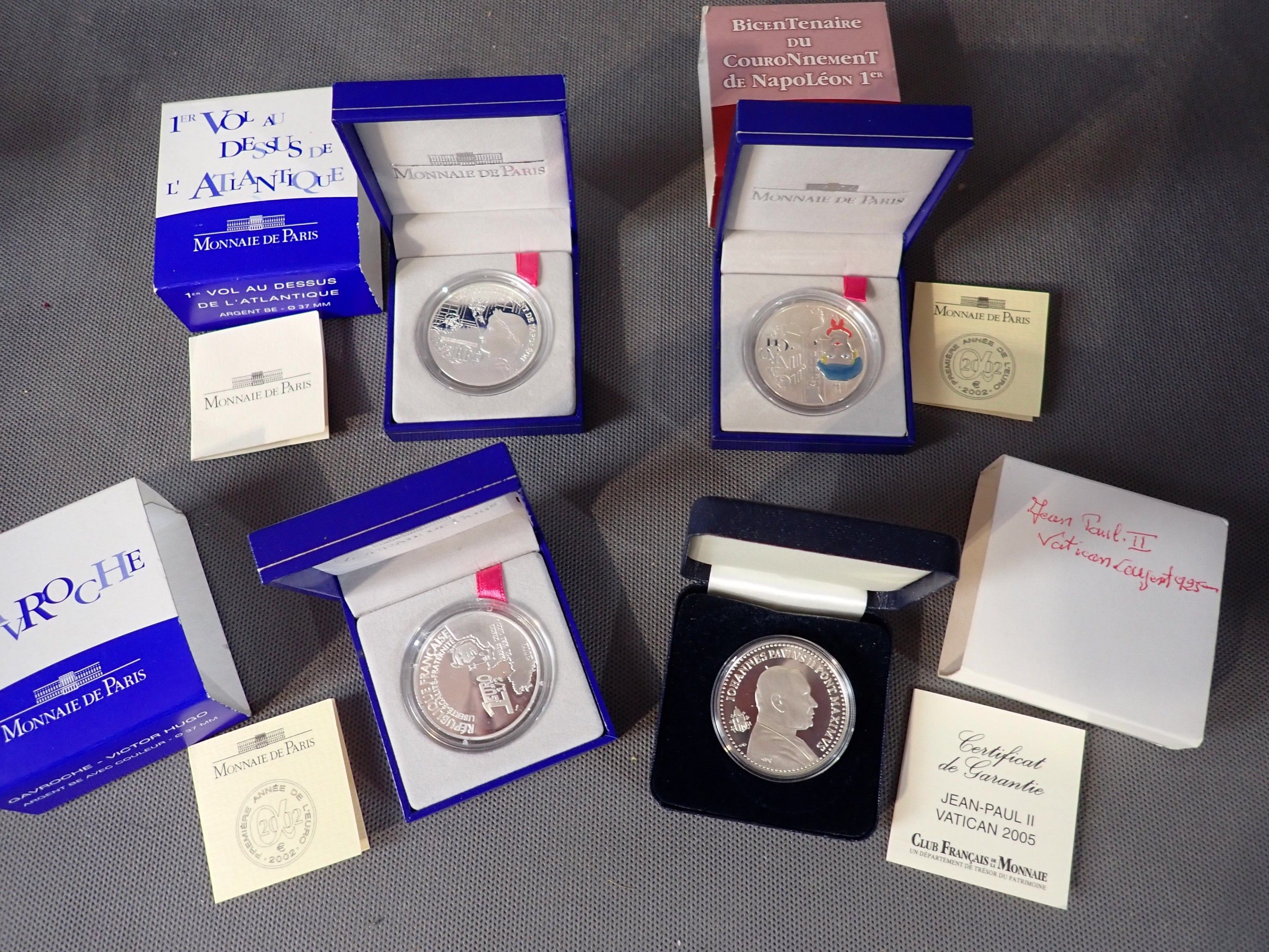 4 Silver coins, monnaie de Paris, in their cases with certificate, total weight 91.7g