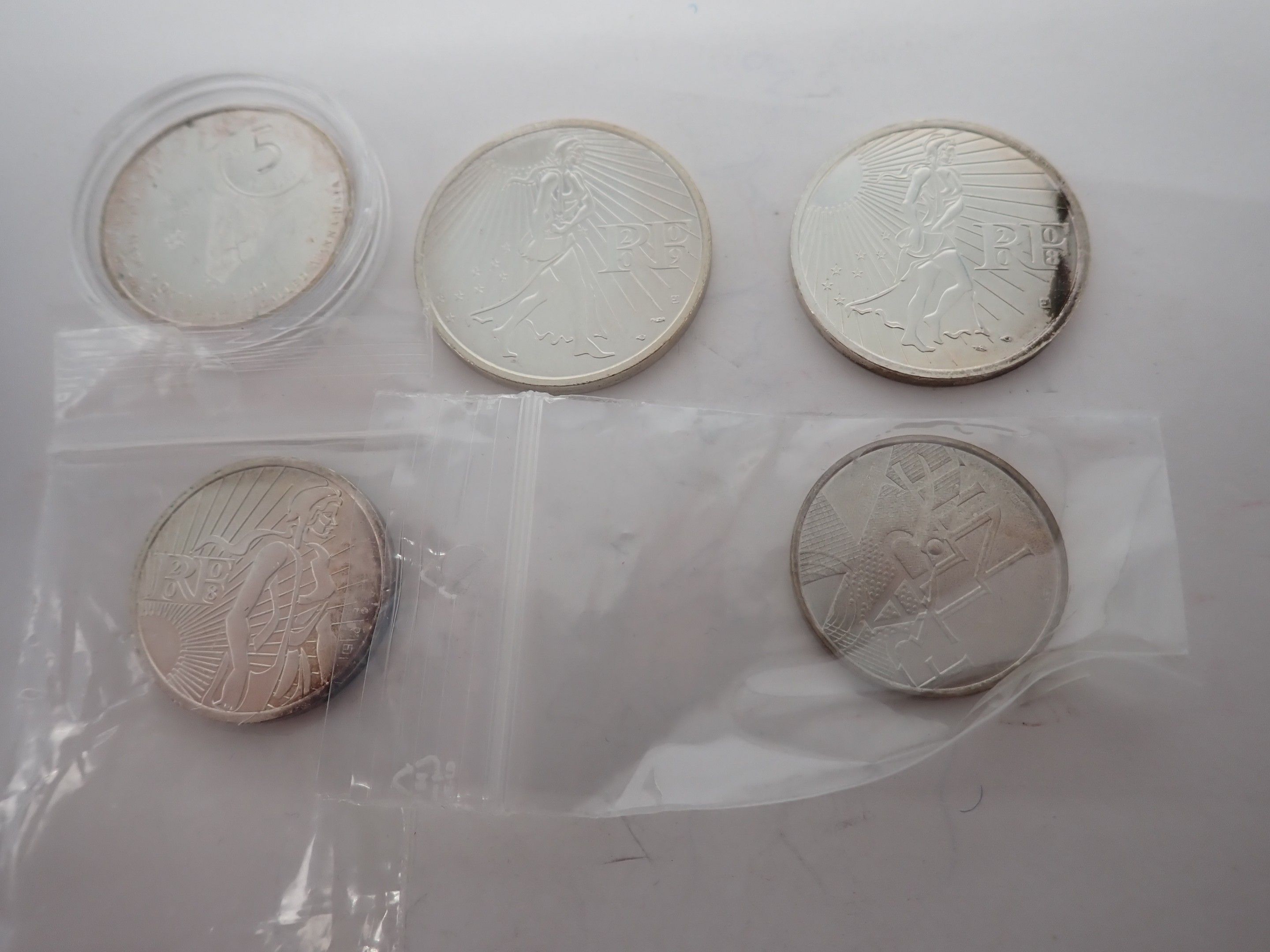 Lot comprising 3 silver 5-euro coins, 1 silver 15-euro coin …
