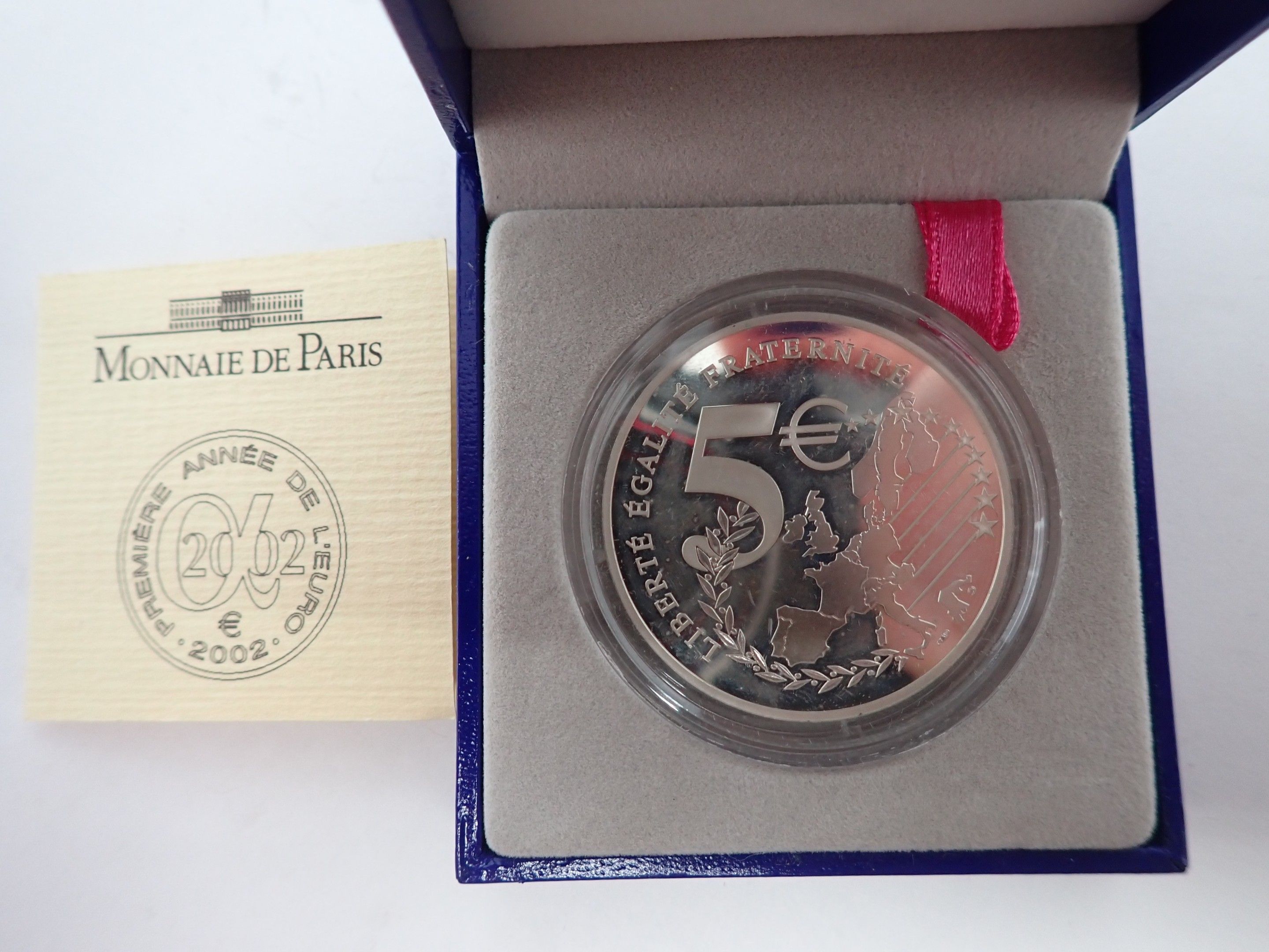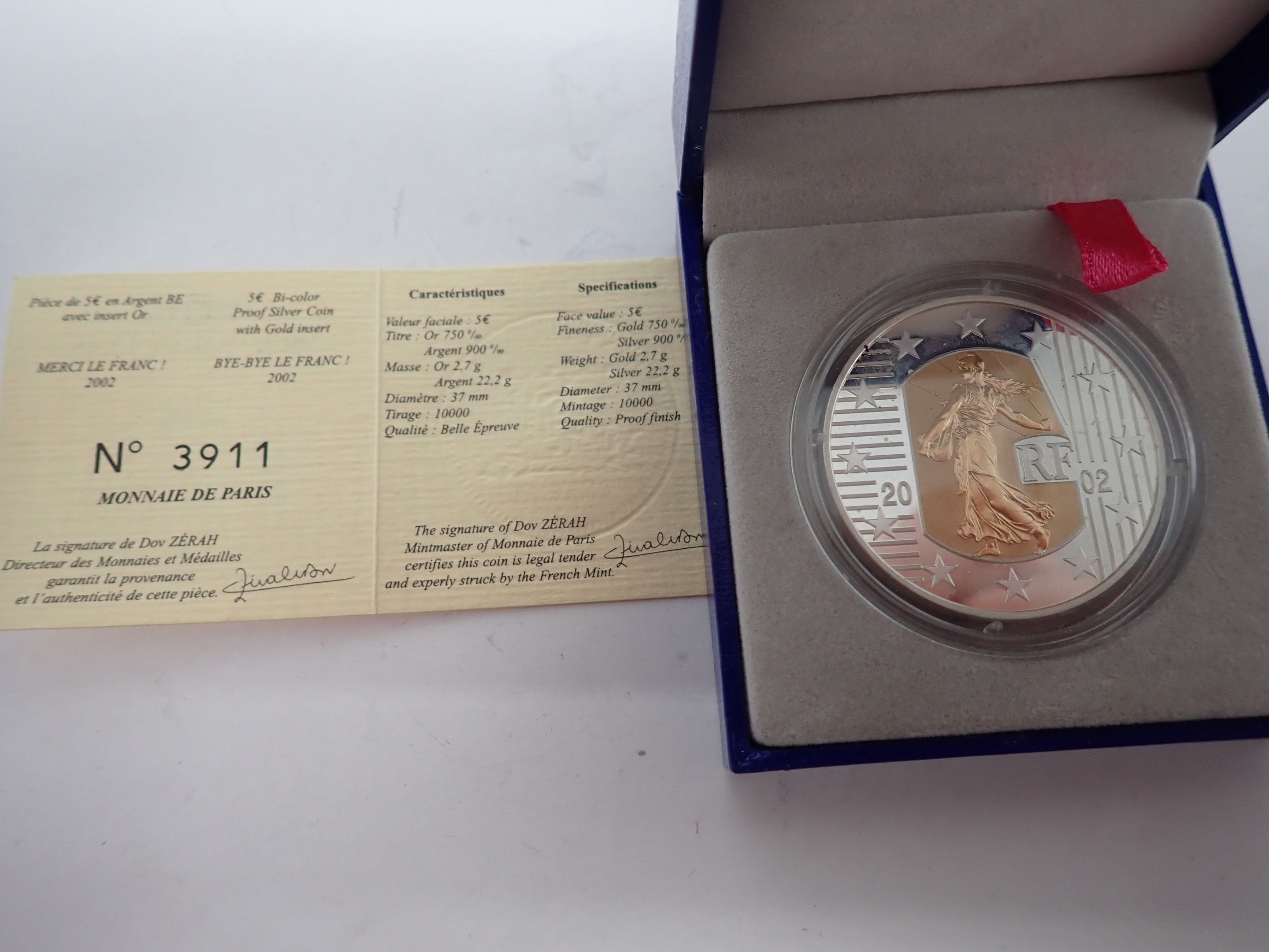 1 €5 silver and gold coin, gold weight 2.7g and silver weight 22.2g