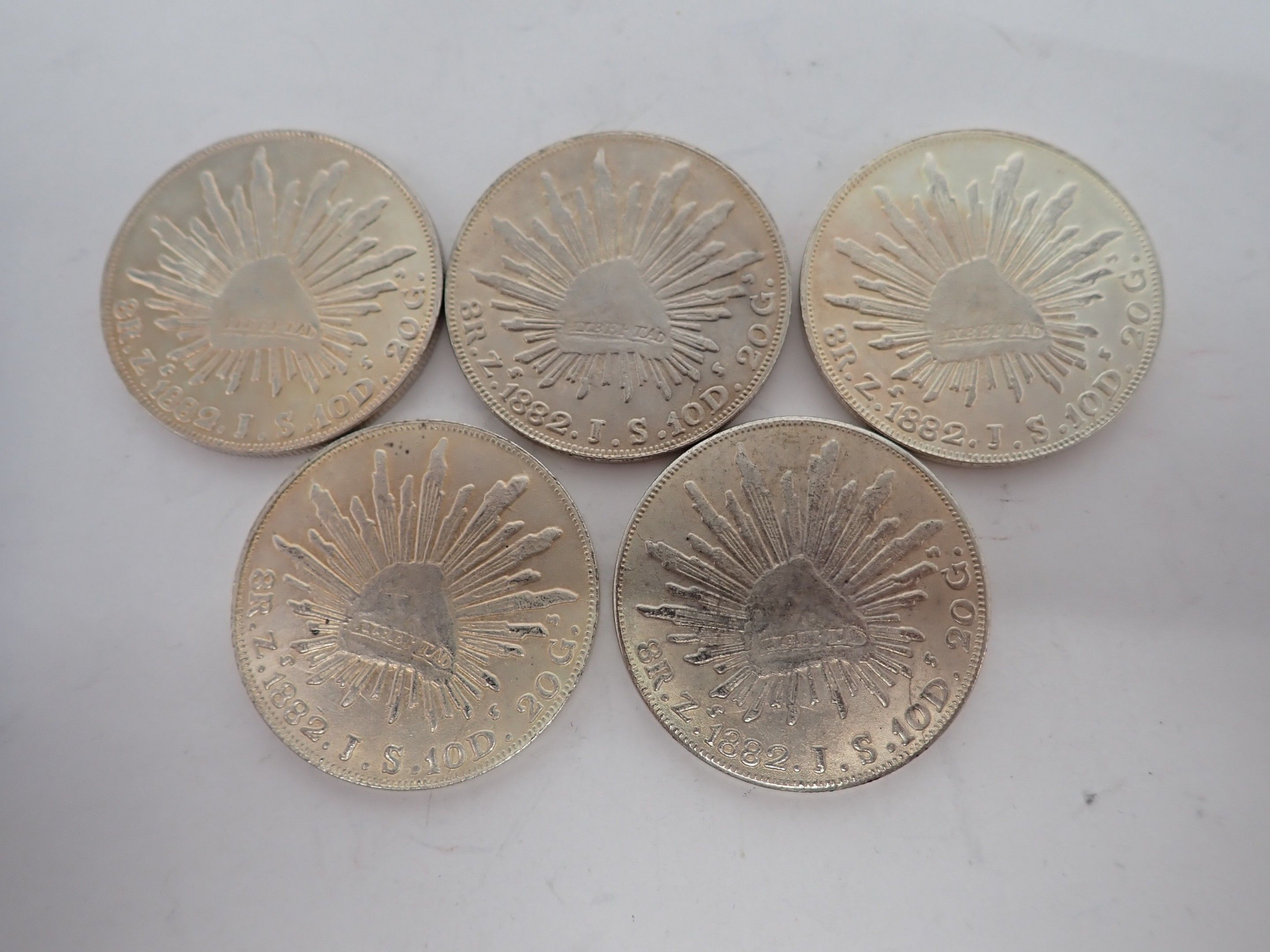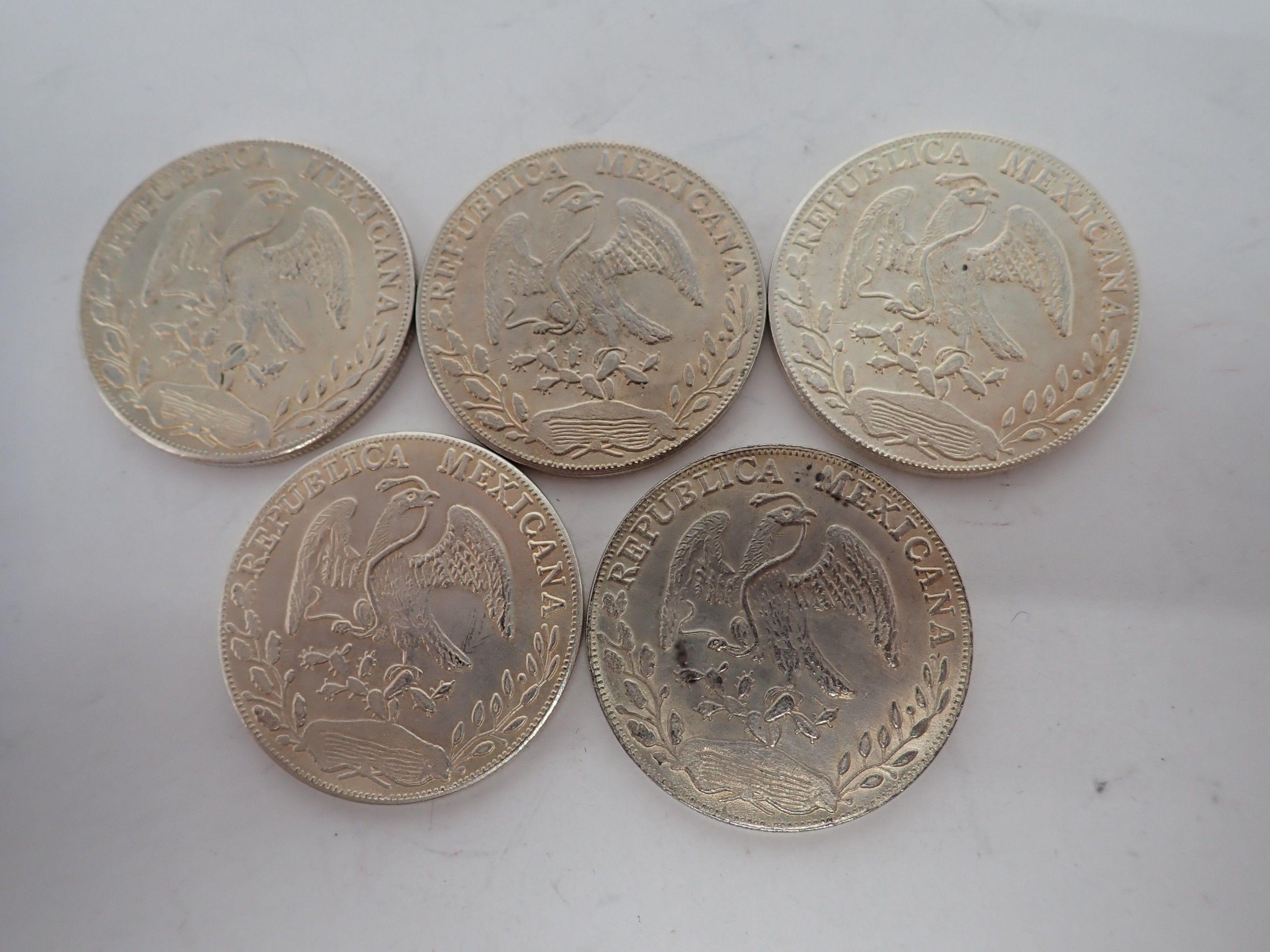 Set of 5 reproductions of Mexican coins in metal, weight 101…
