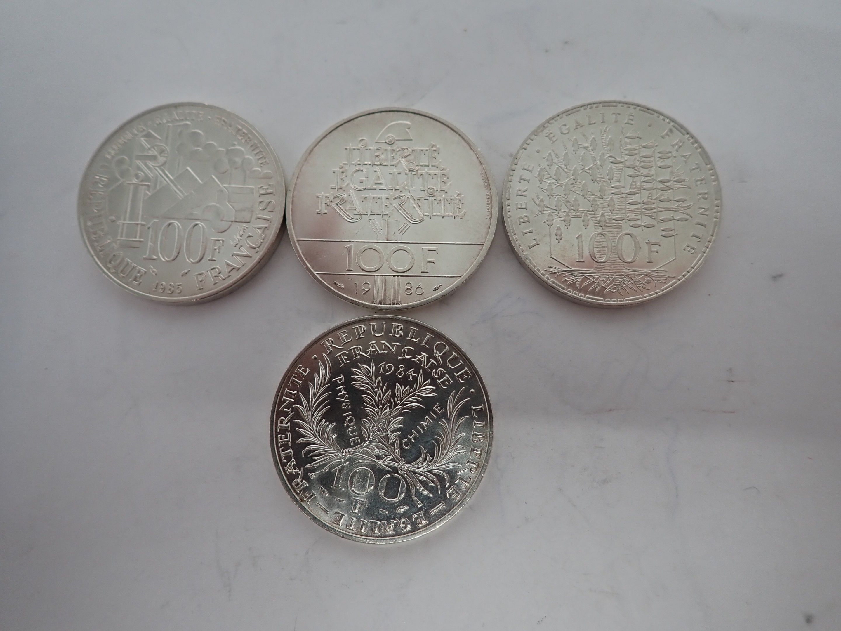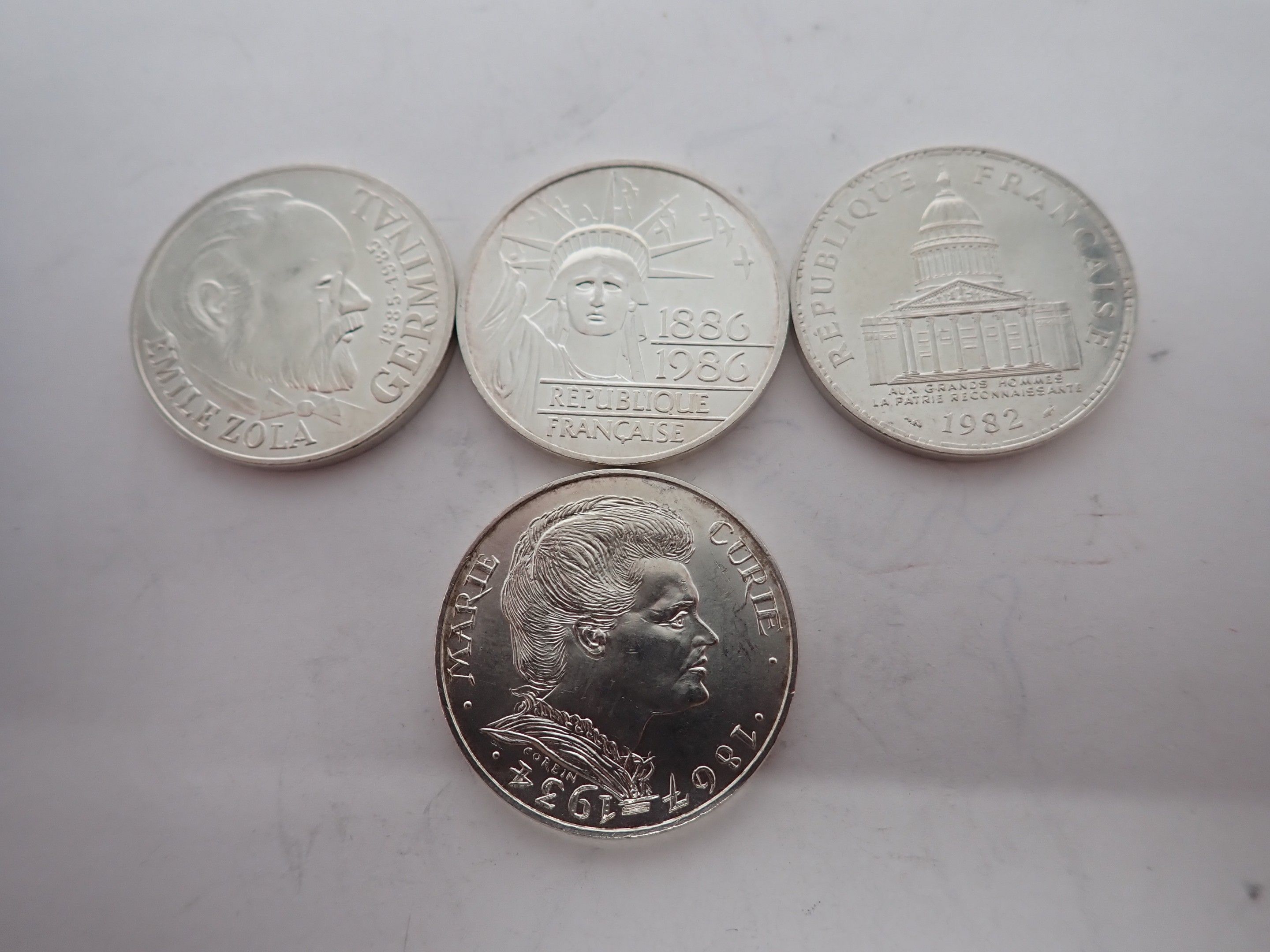 4 silver 100 franc coins including émile Zola and marie Curi…
