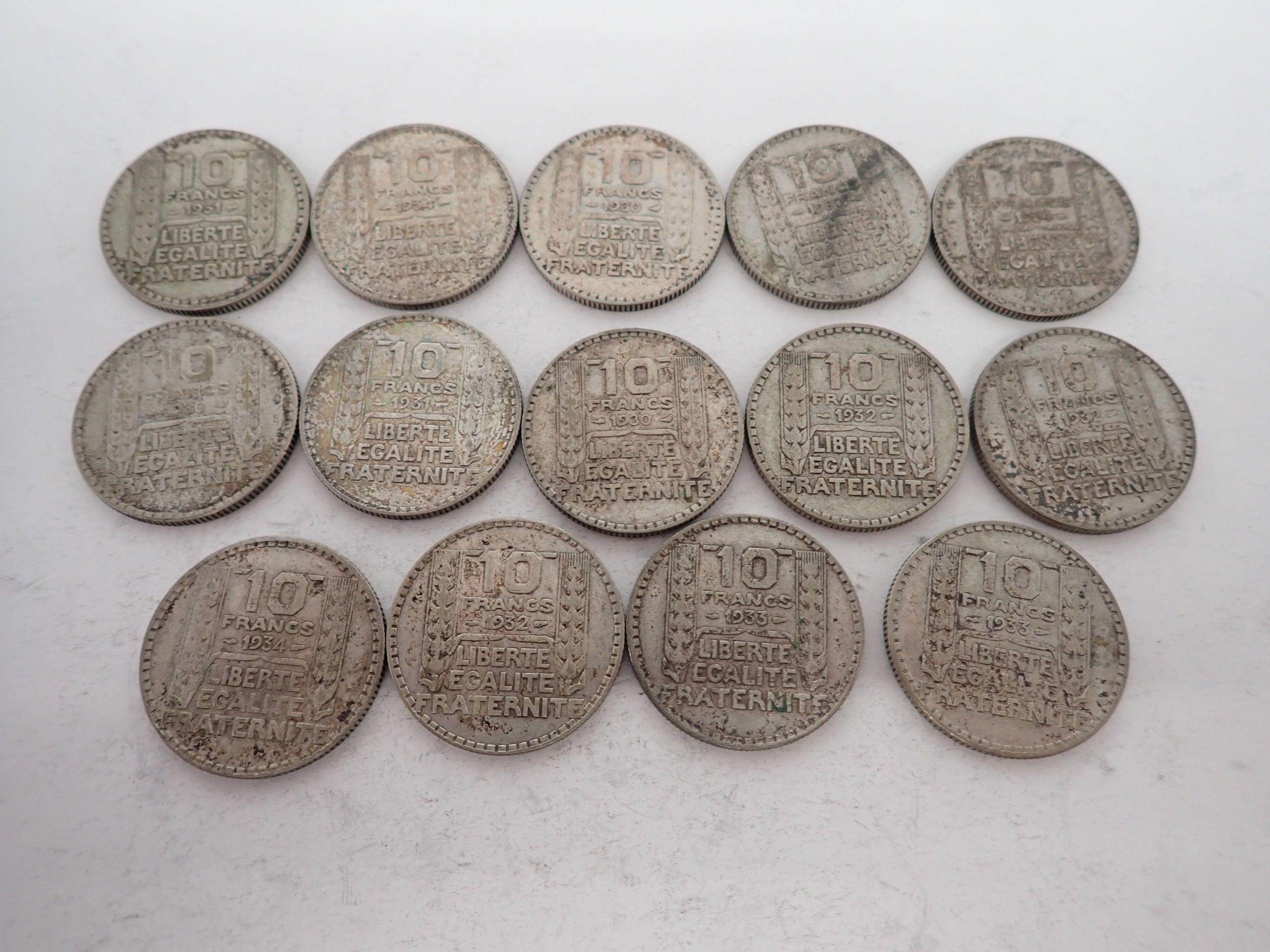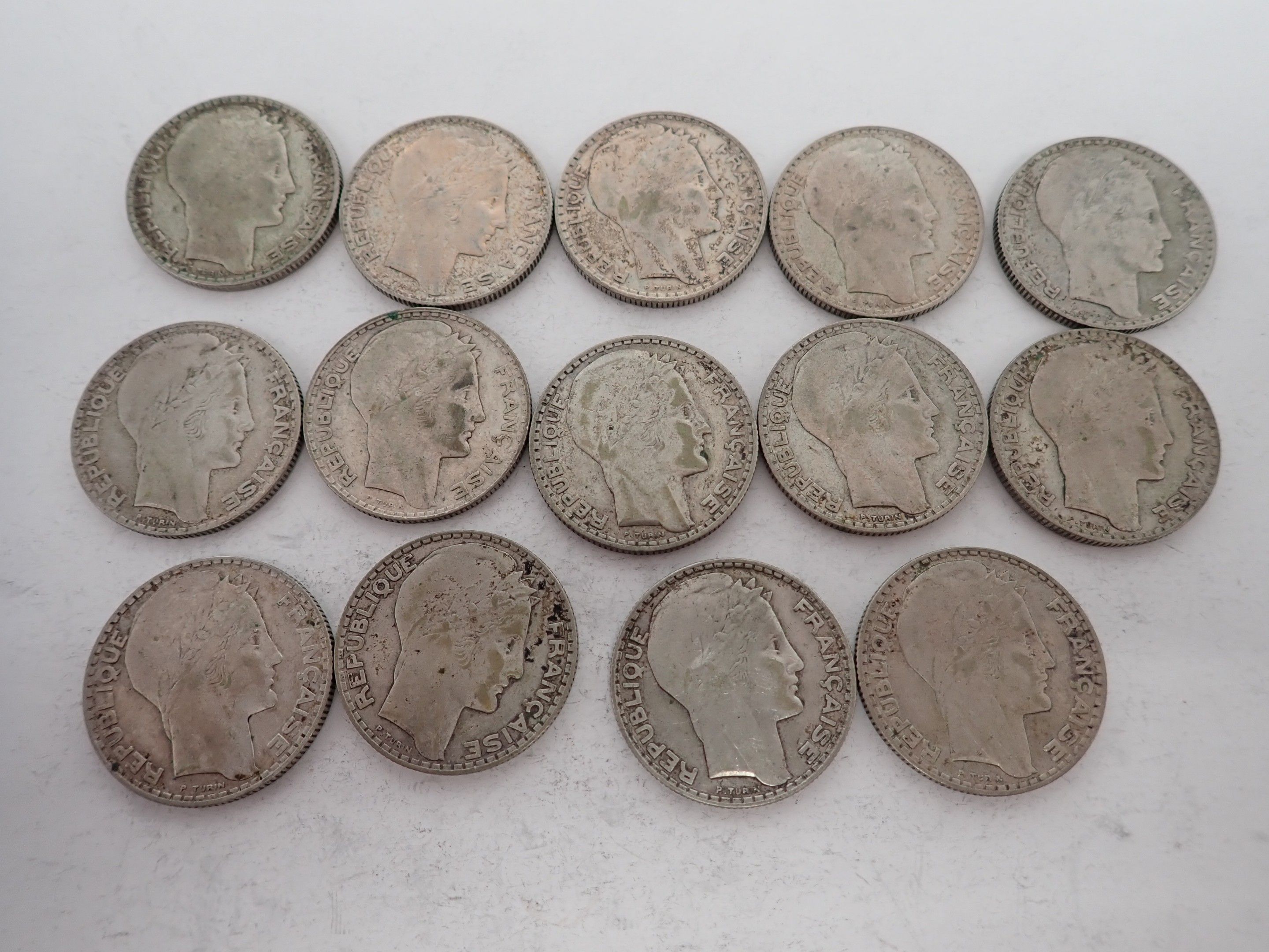 14 Coins of 10 Turin silver francs, weight 139.6g