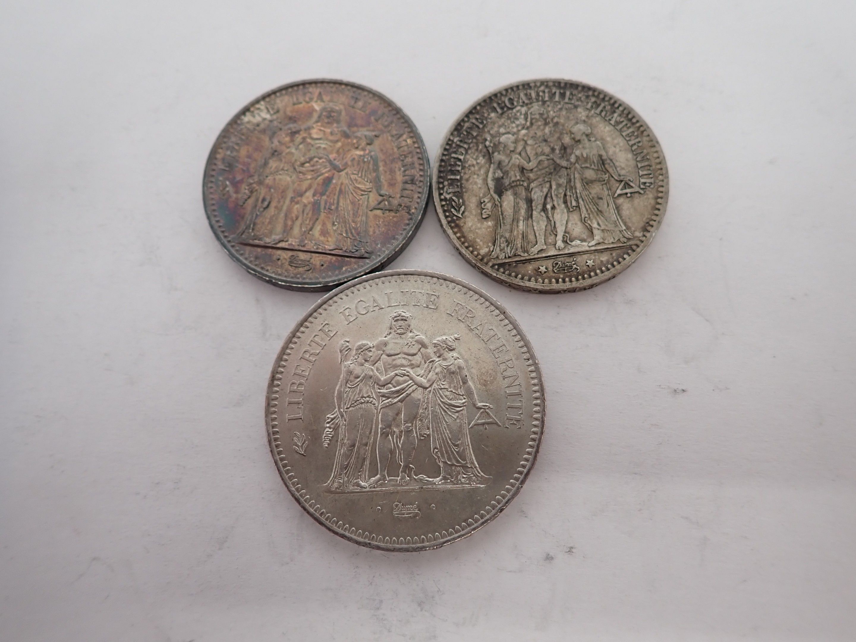 1 50-franc coin, 1 10-franc coin and 1 5-franc silver Hercules coin, weight 79.8 g